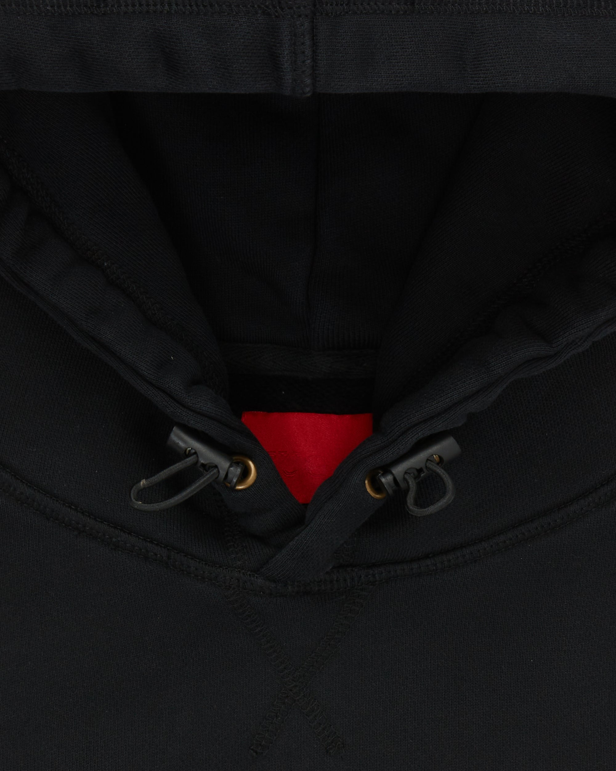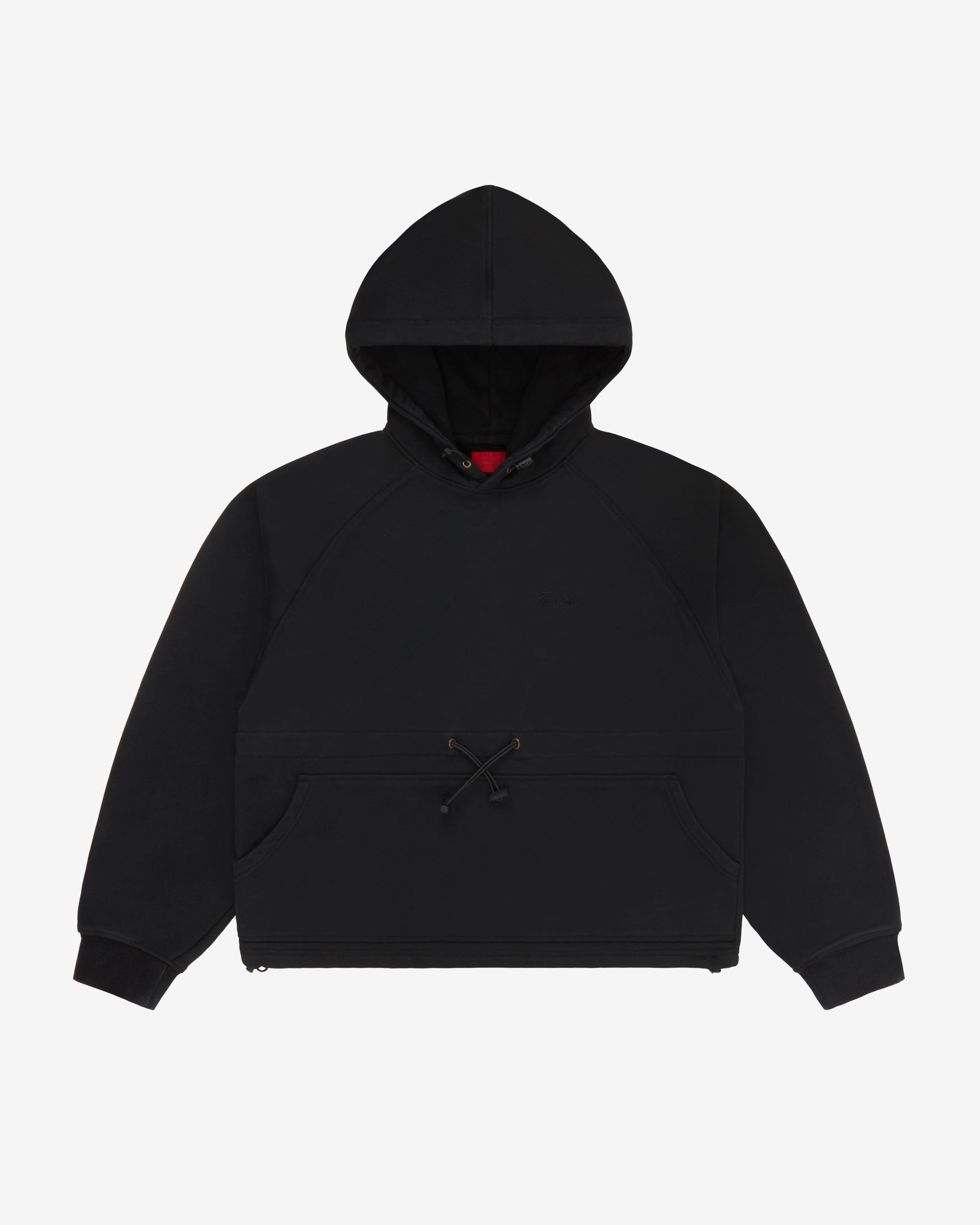 Washed 14oz cotton fleeceHoodie with cinchable waist, body, and hoodEmbroidered chest graphicDropped-shoulder constructionBoxy fit
