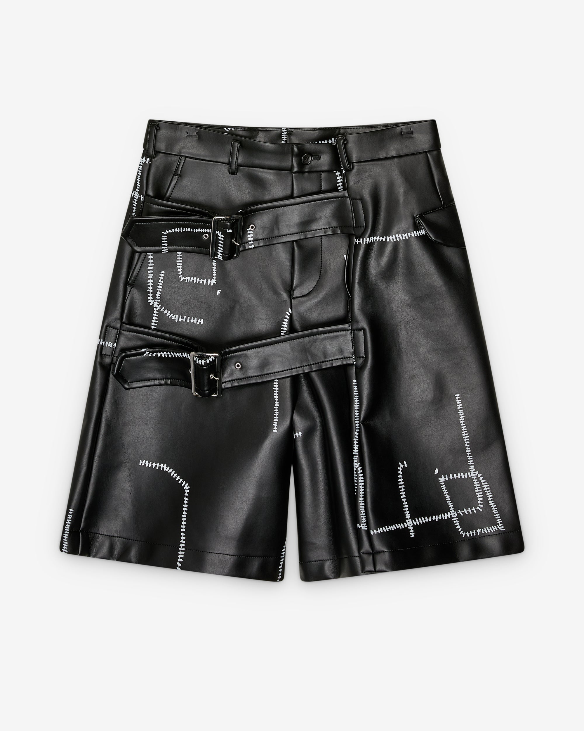 High waistButton and zip-fly closureWide legDouble buckle detailPrinted stitches throughoutBelt loops