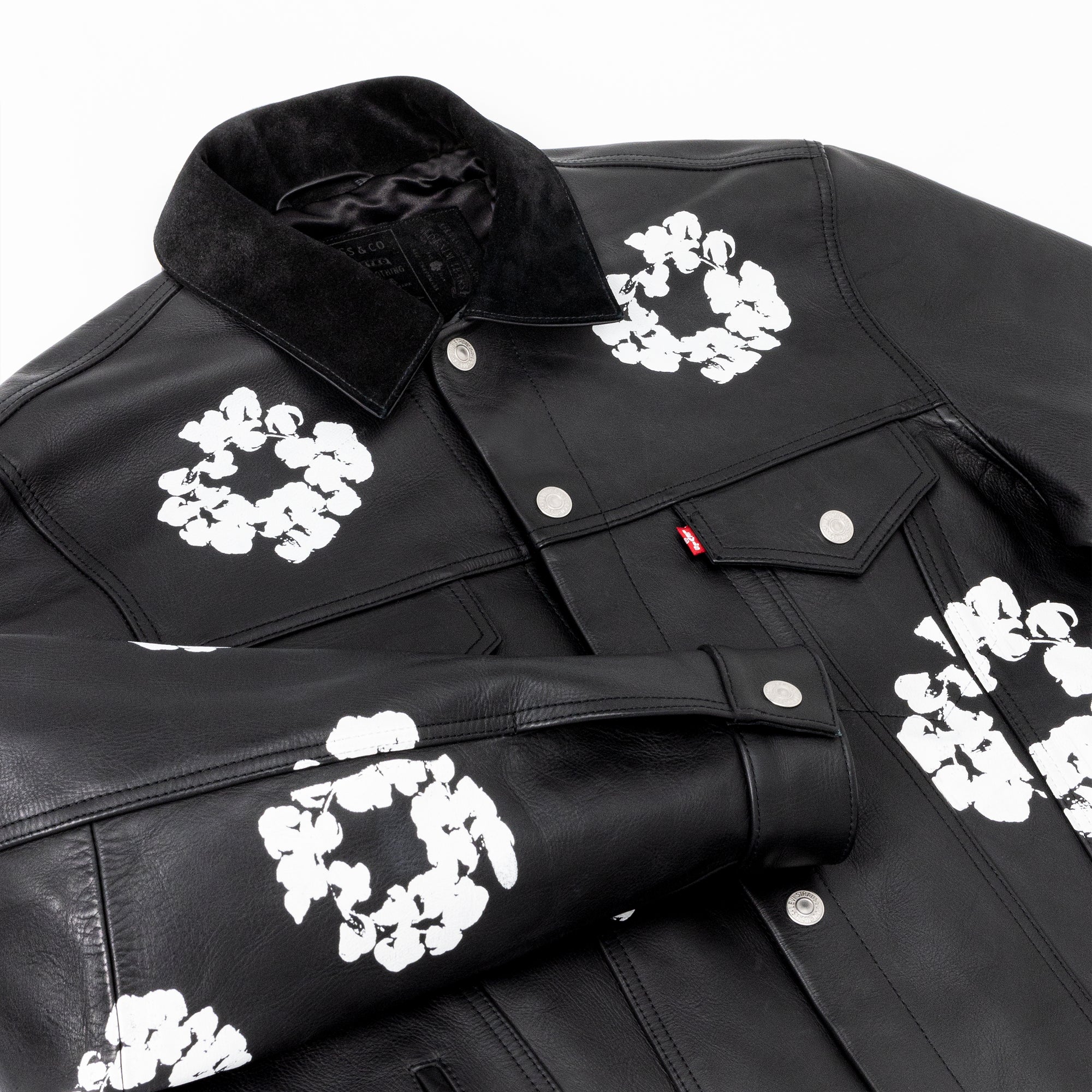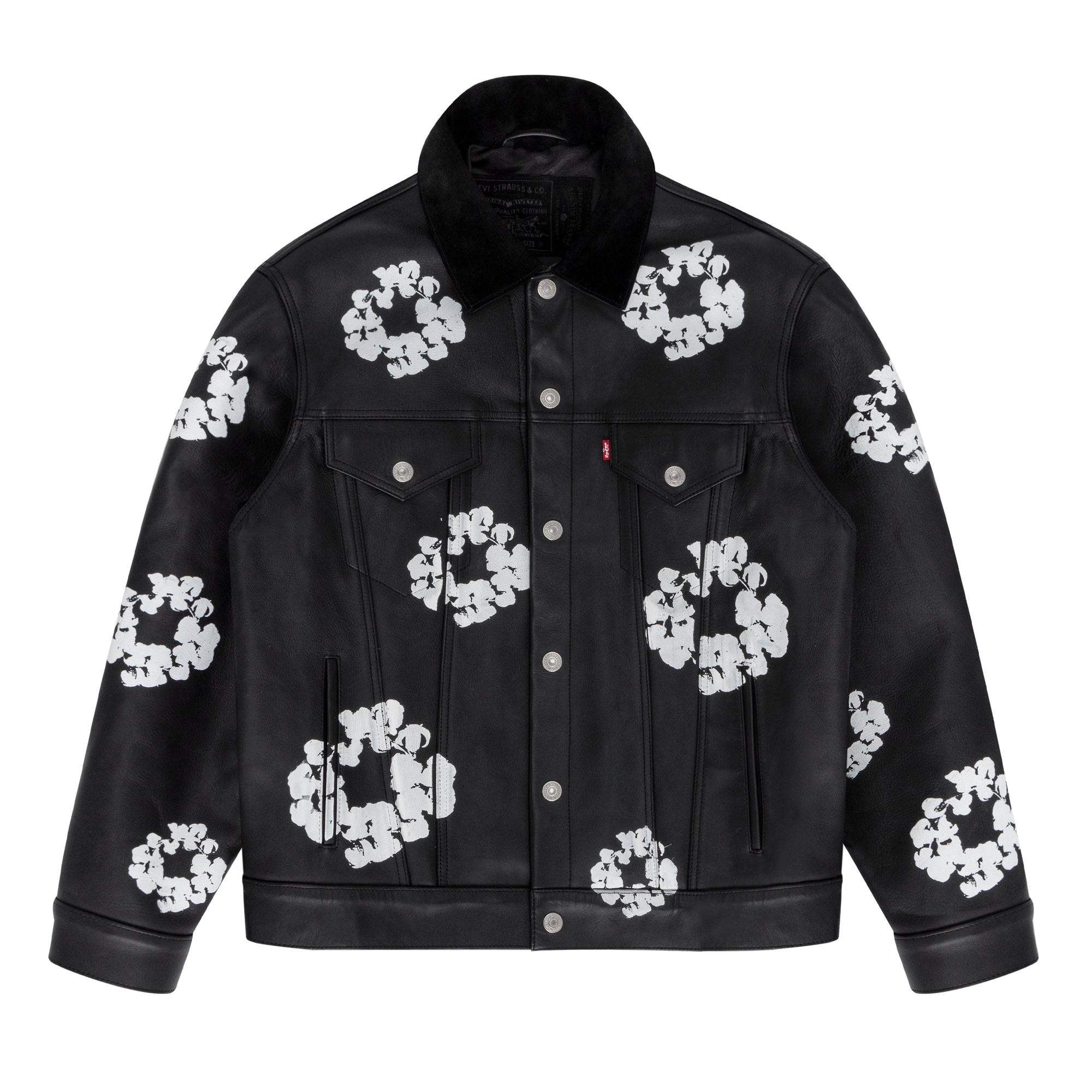 Contrast point collarFront button placketButton-flap patch pocketsWelt side pocketsAll-over cotton wreath print