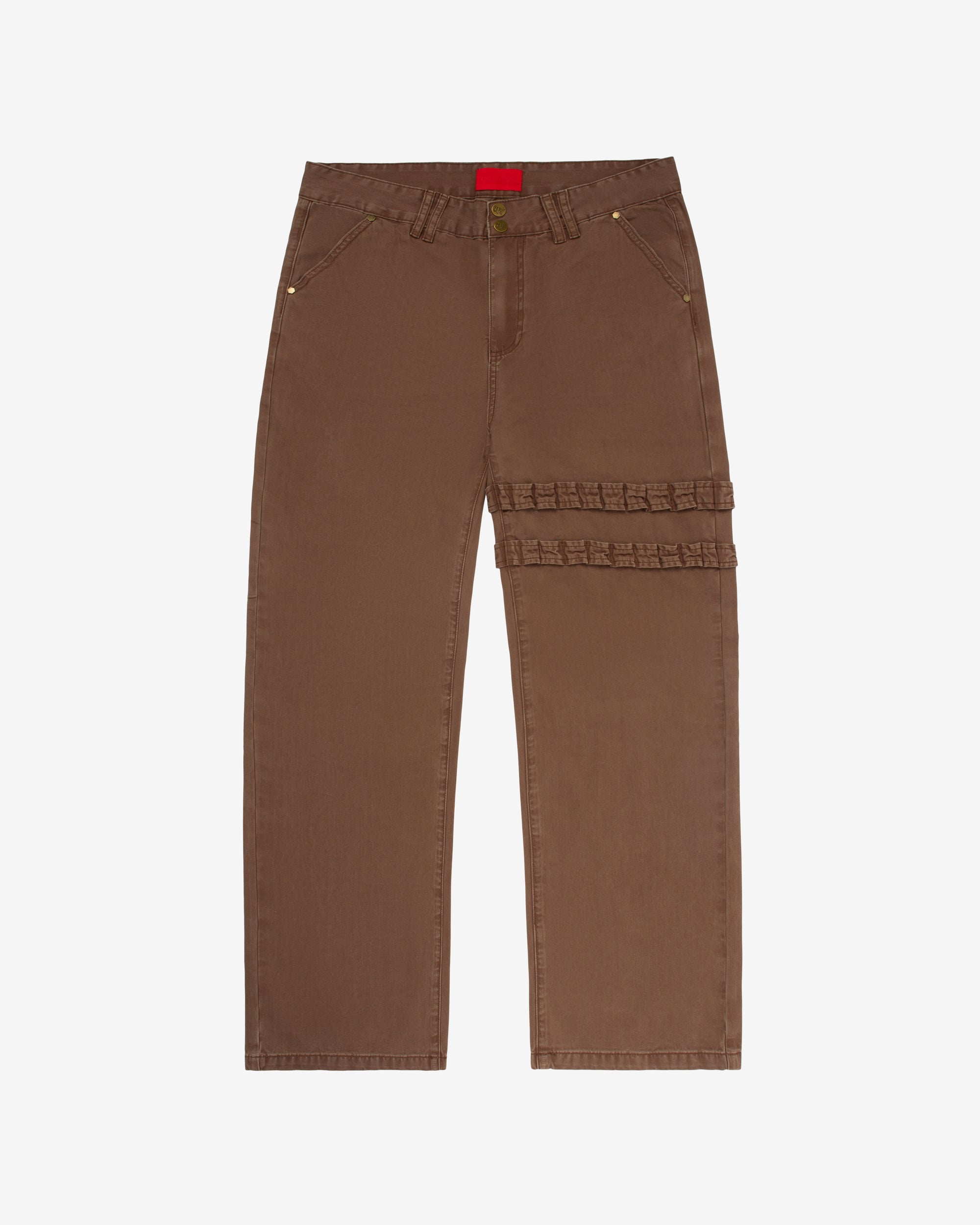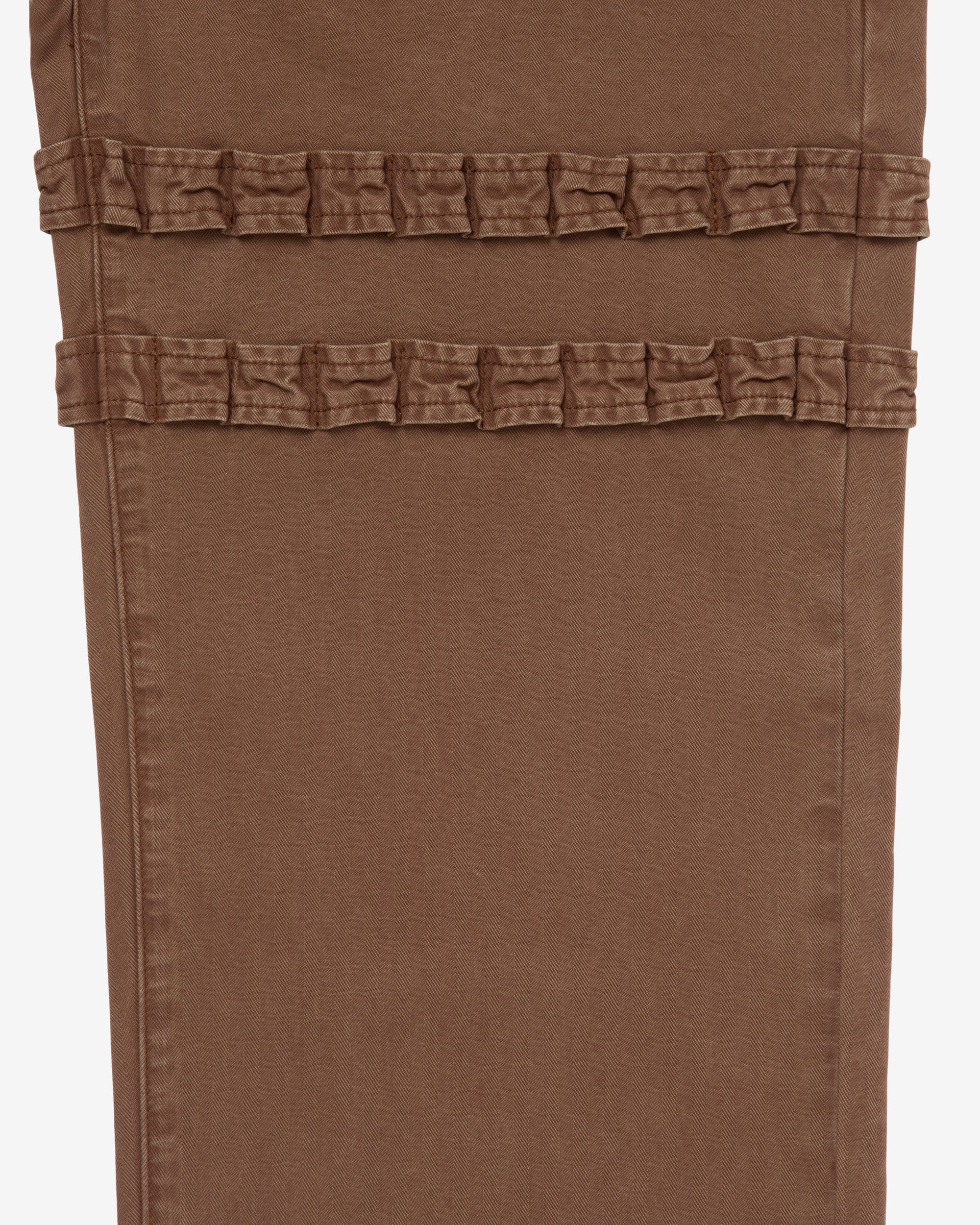 Herringbone twill pantsYKK zip flyHolster gartersQuad back pocketsDouble beltloops/snapsLoose fit