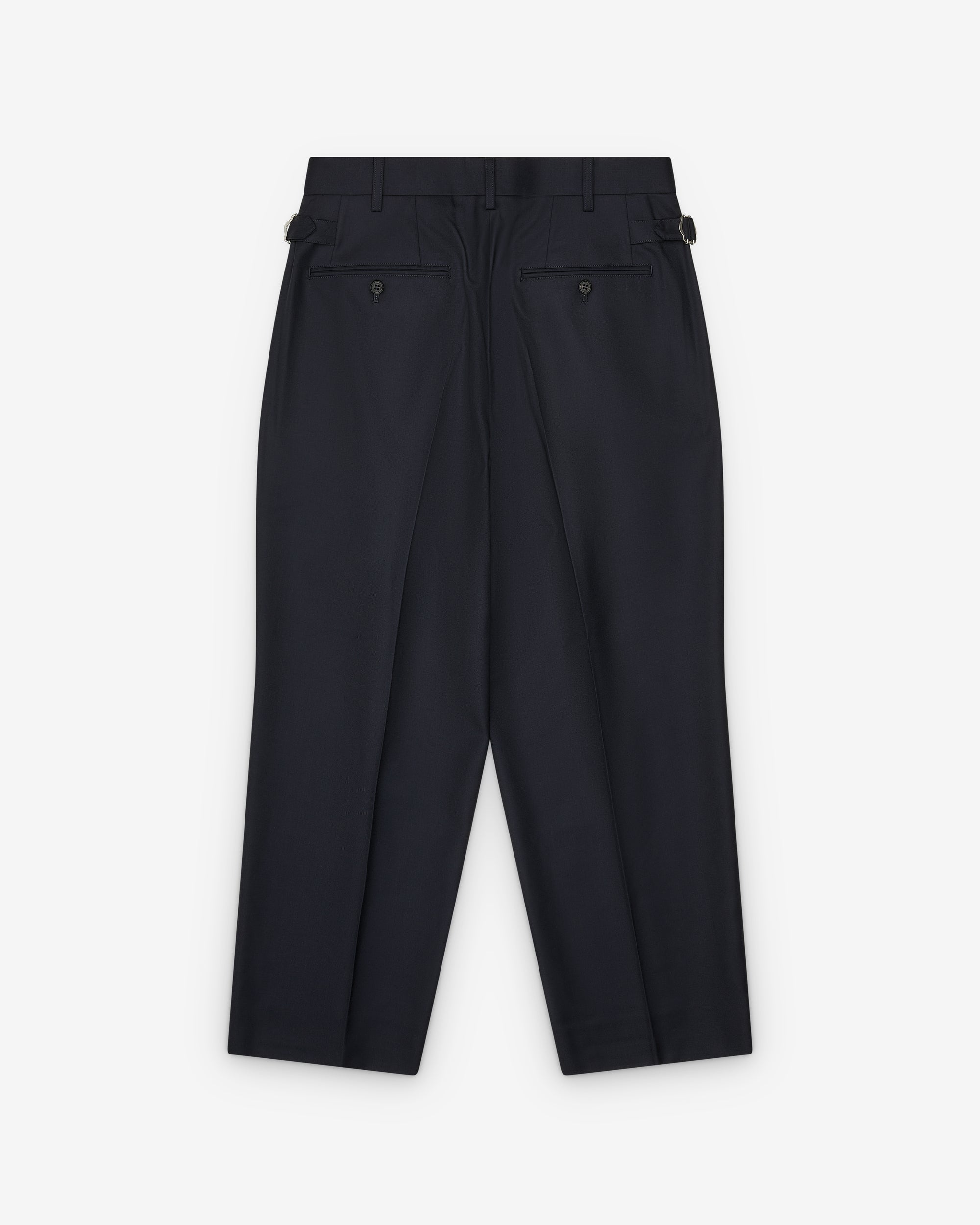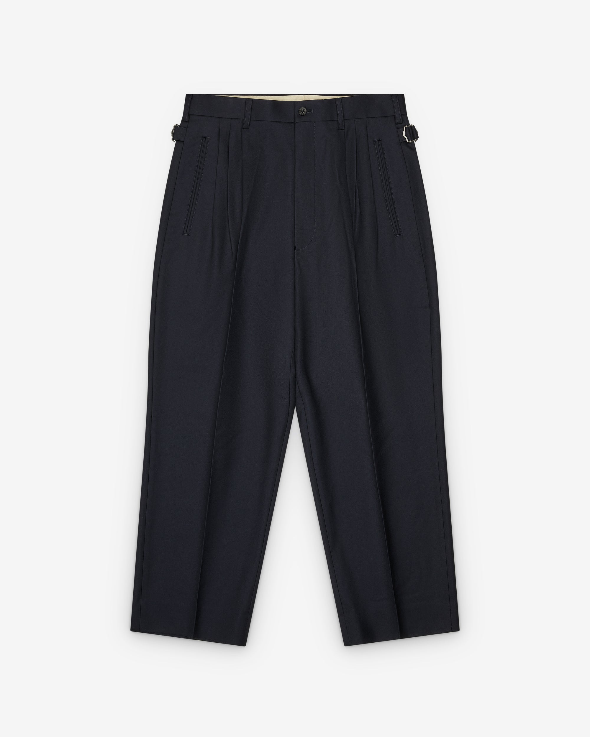 Buckle-details at sidesPleatedBack button pockets100% WoolMade in Japan