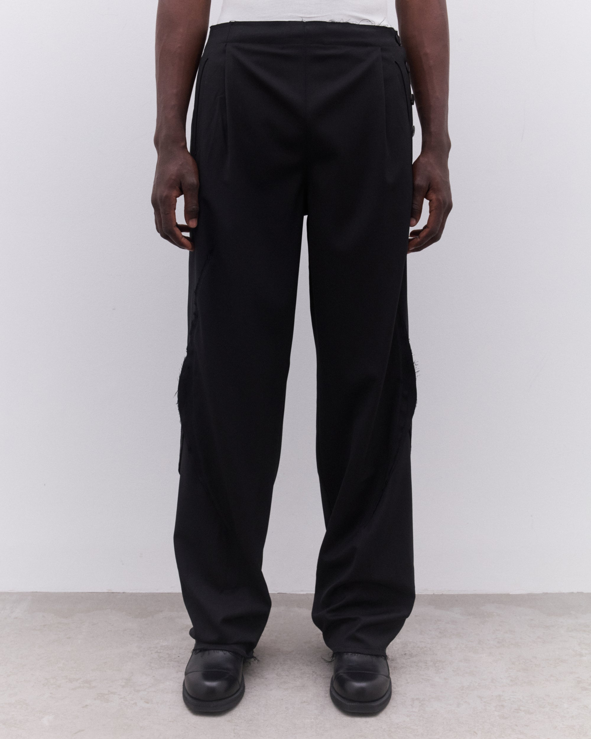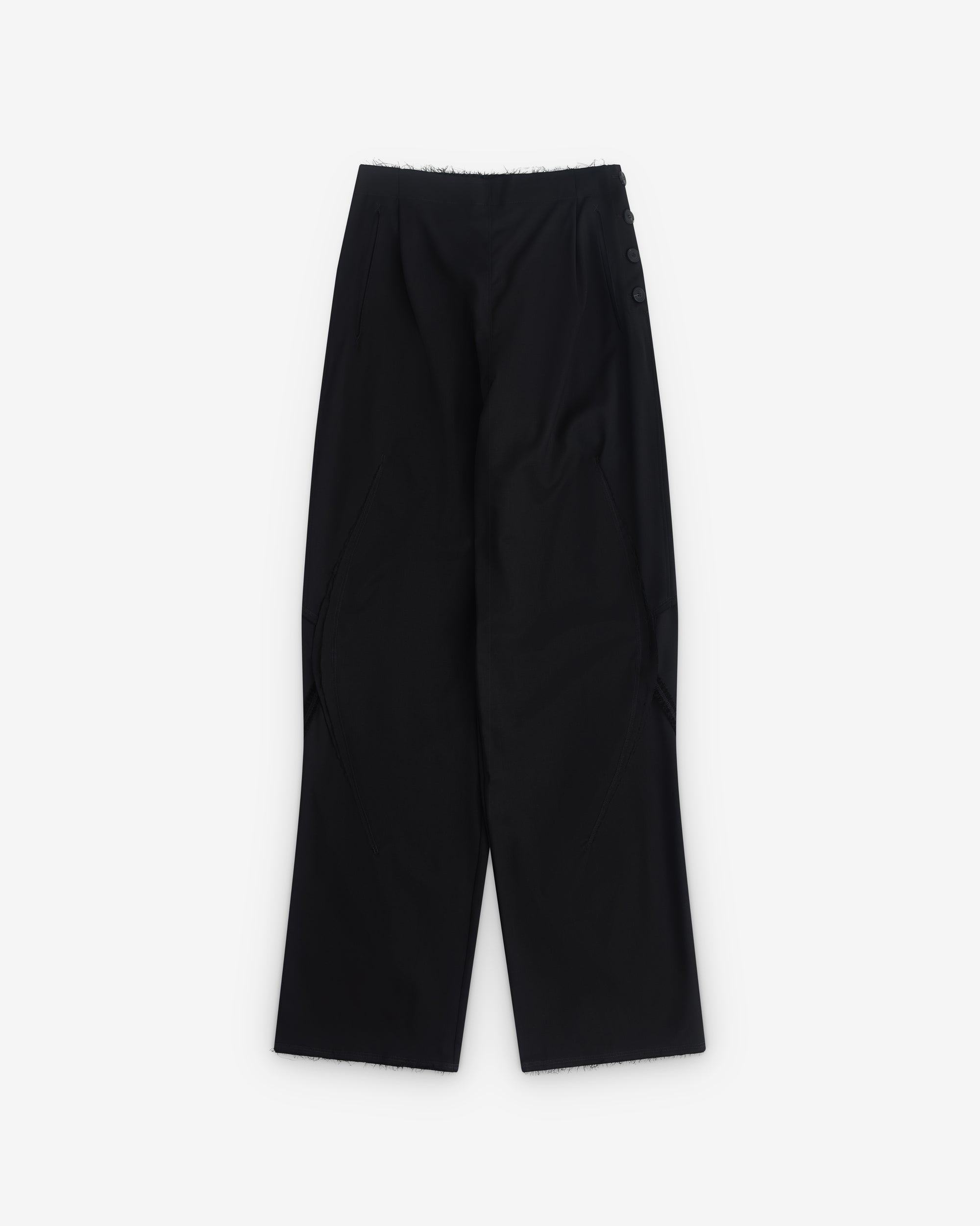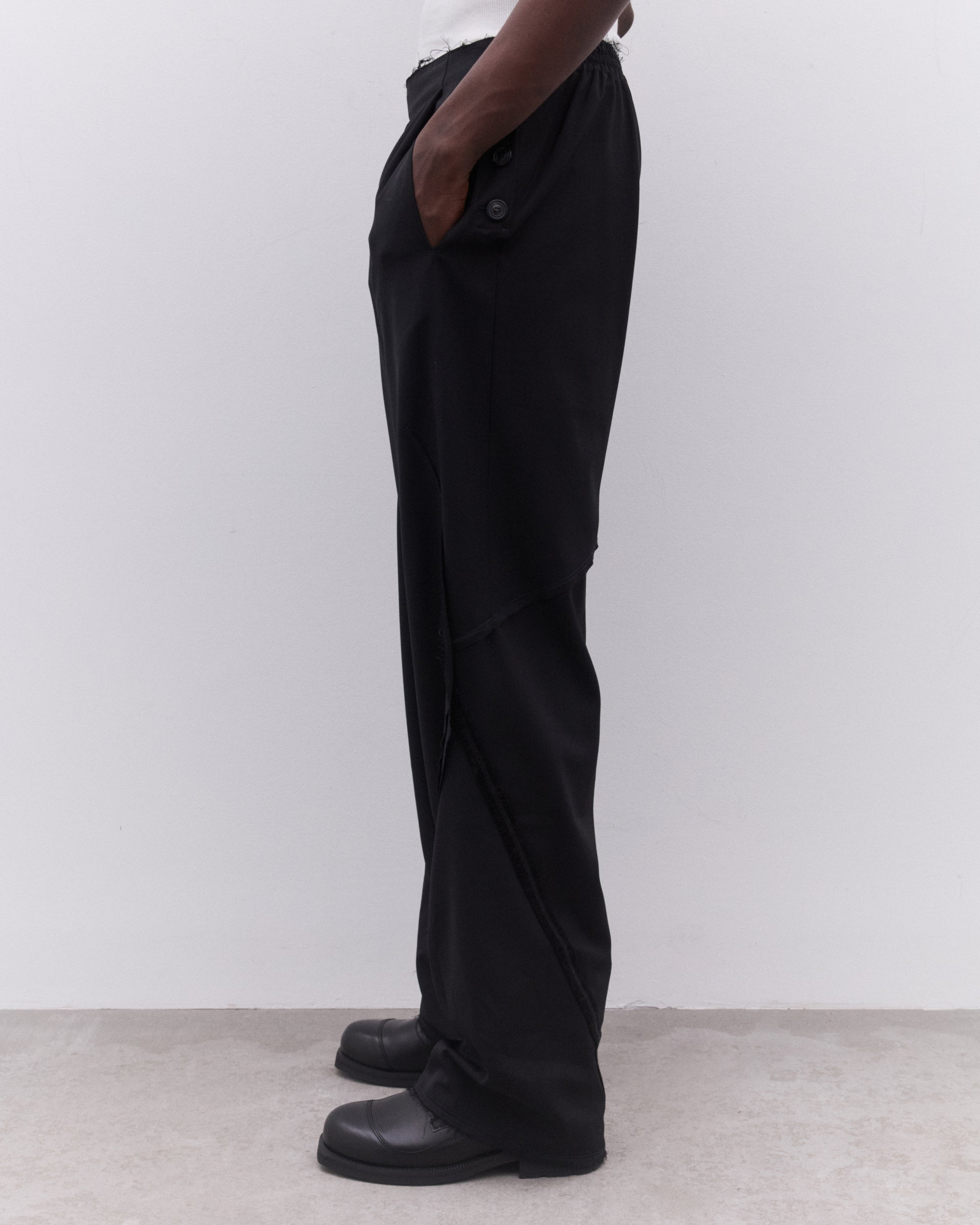 Elasticated waist bandSide button detailsSide and back pocketsLoose fitFraying at waist band