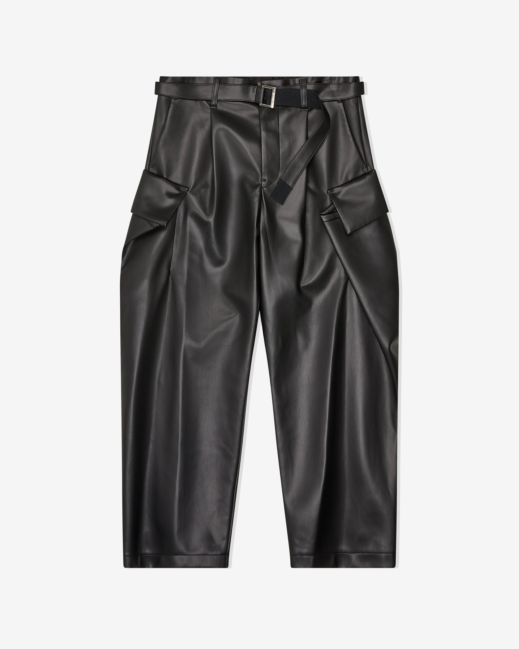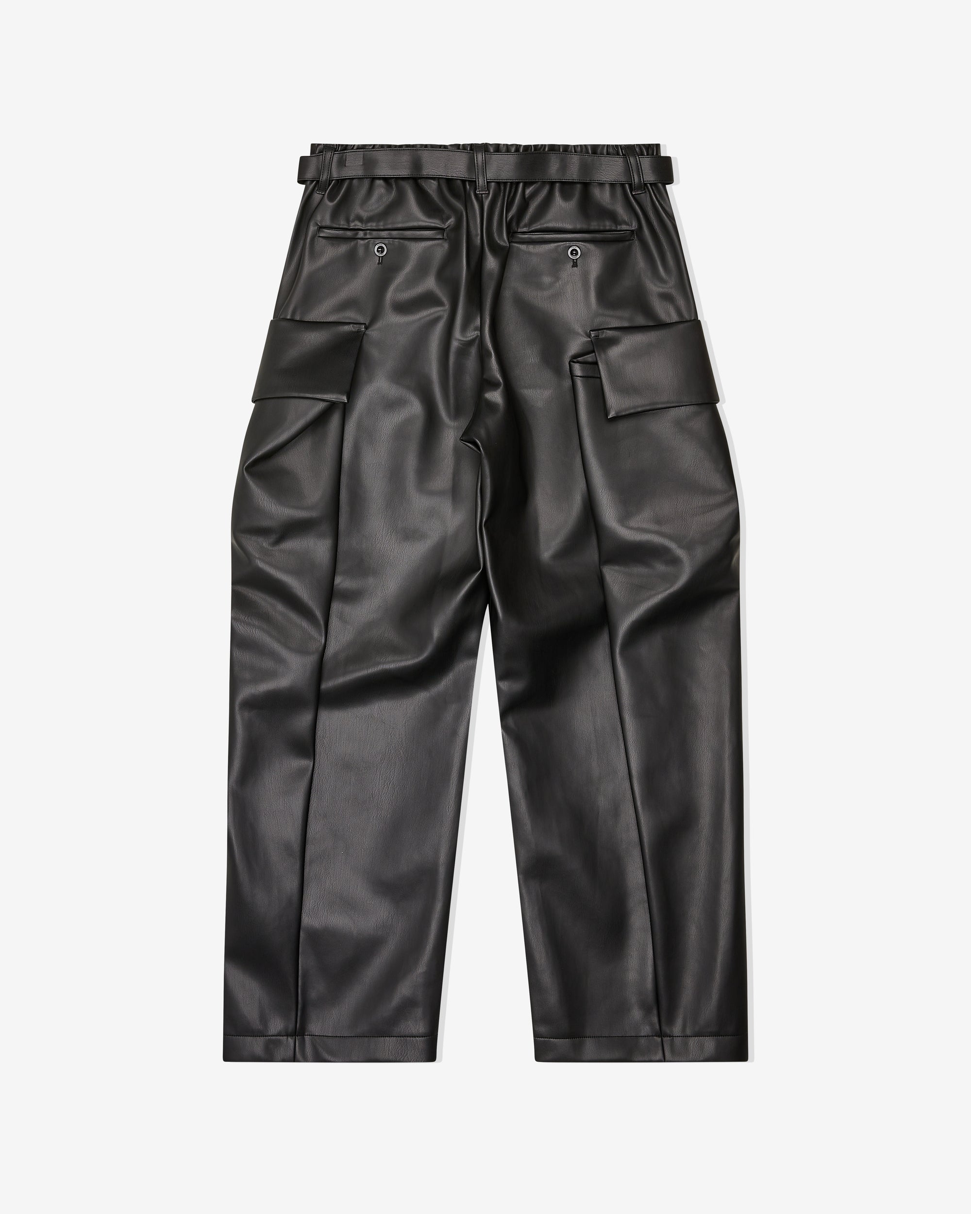 Slight bow leg silhouetteBelted waistCargo pocketsImitation LeatherMade in Japan