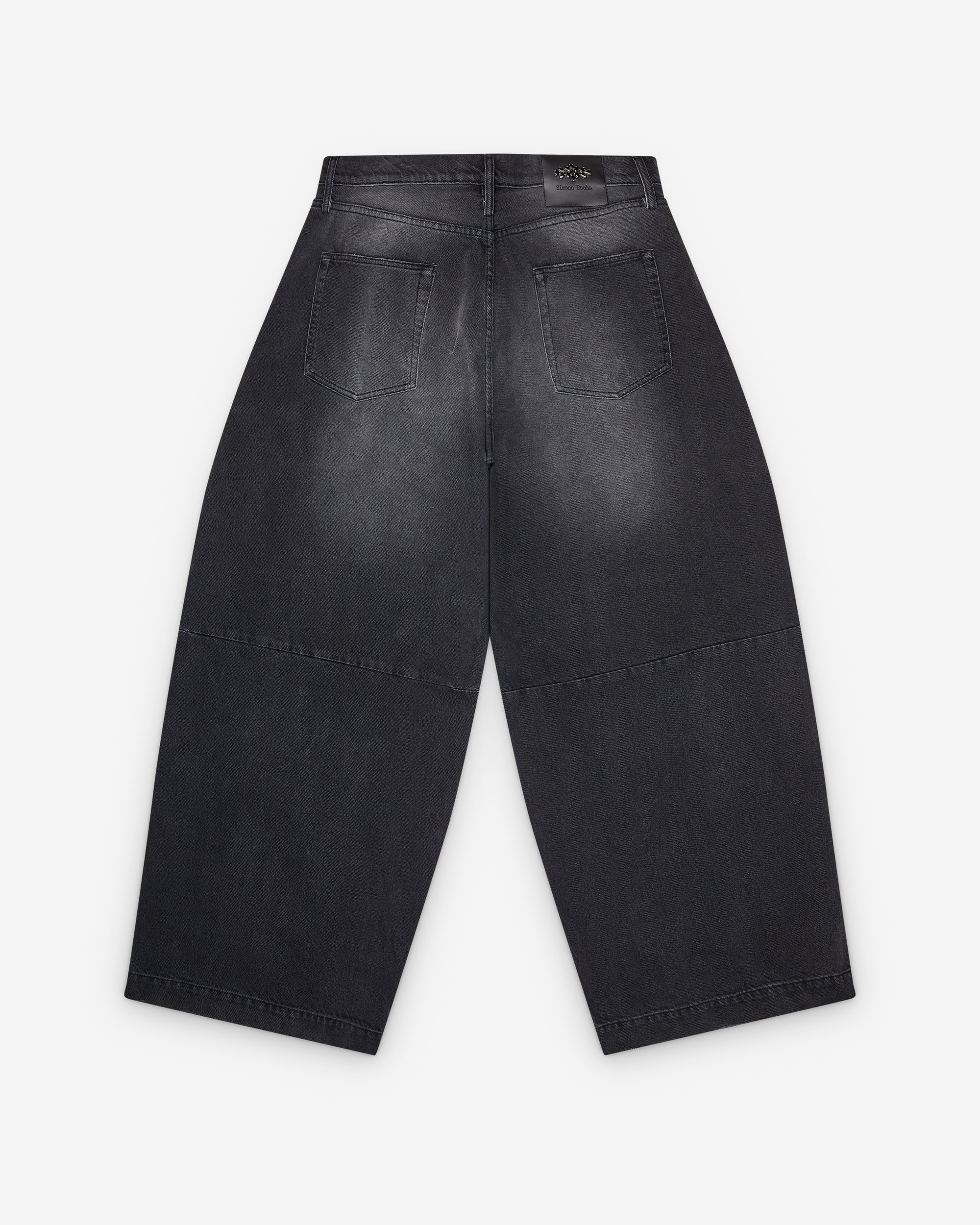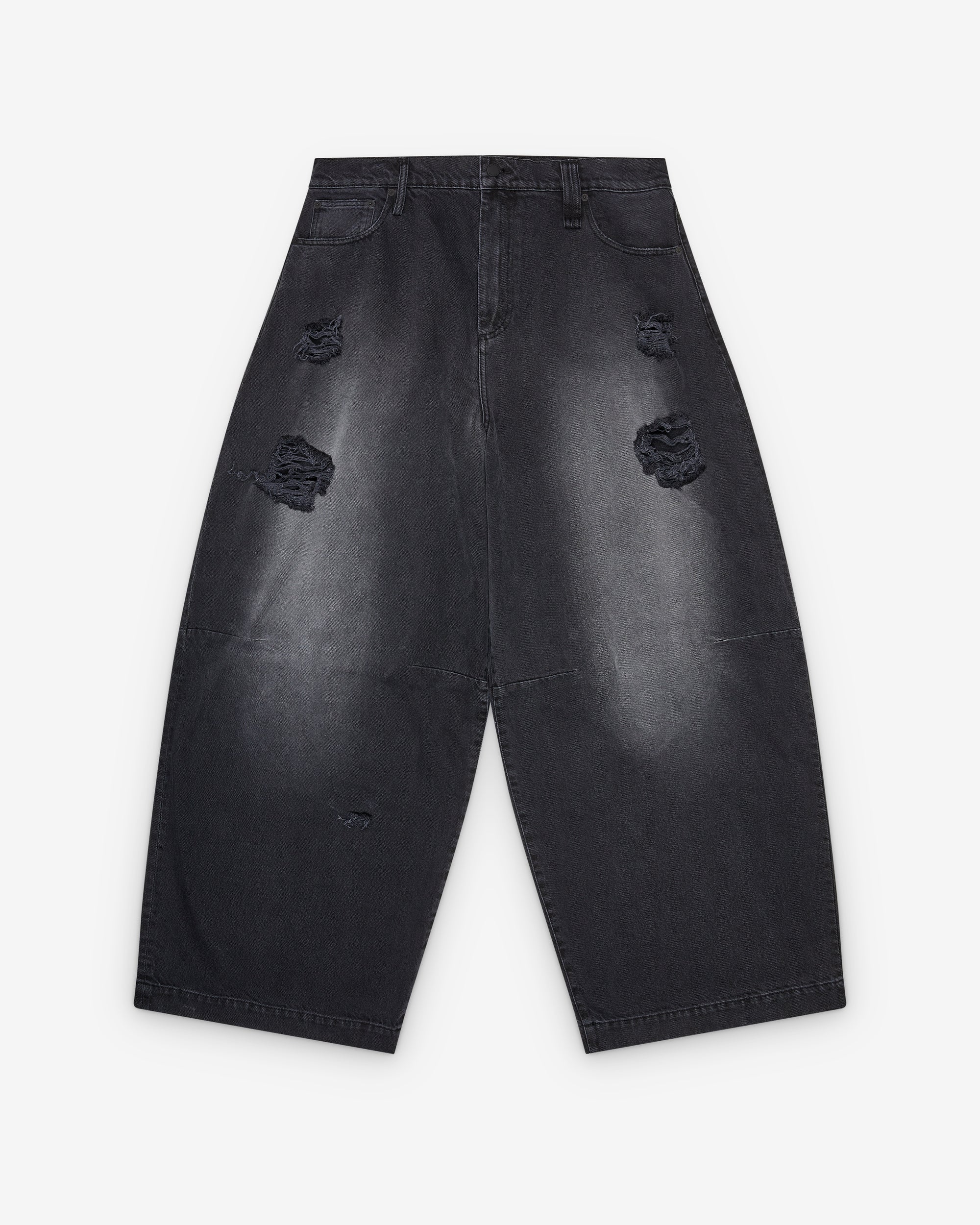 Cotton denim wide leg jeansDistressedBeaded label at backFour pocket stylingHigh-waist fit100% CottonMade in Portugal