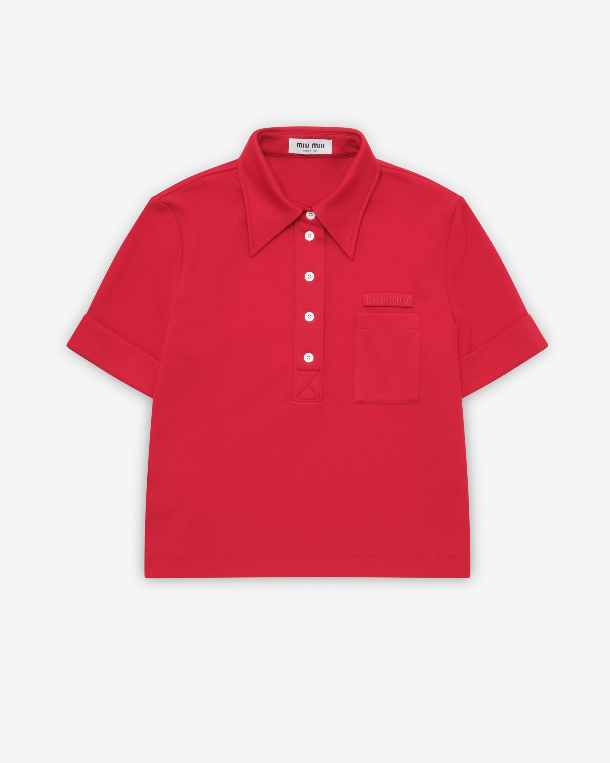Straight fitShirt collarShort sleevesFront button closurePatch pocket on the chestStraight hemEmbroidered logo100% PolyesterMade in Italy