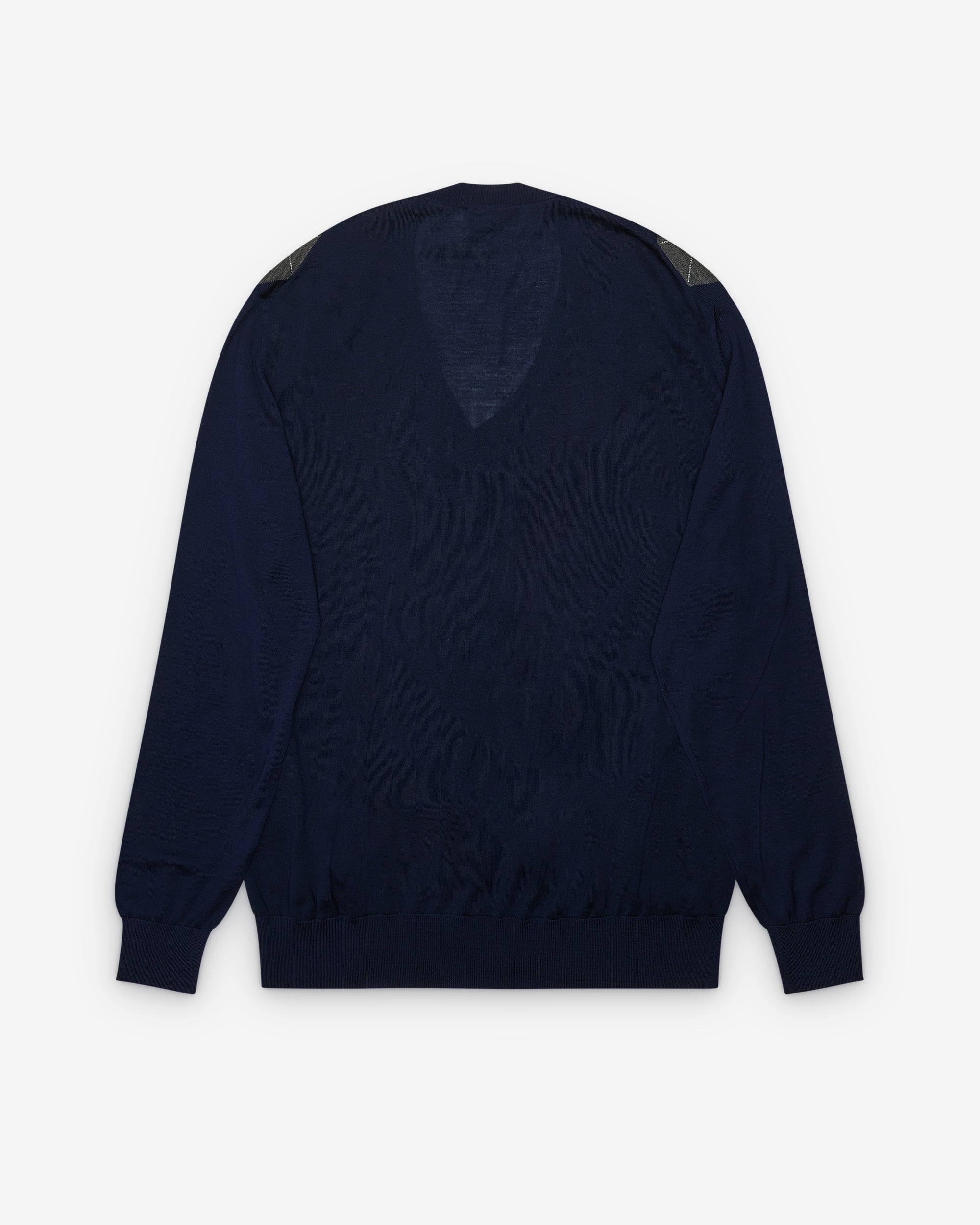 Argyle mesh in intarsiaStraight fitV-necklineLong sleevesSemi-raglan shoulderRibbed knit cuffs and hemIntarsia logo100% Virgin WoolMade in Italy