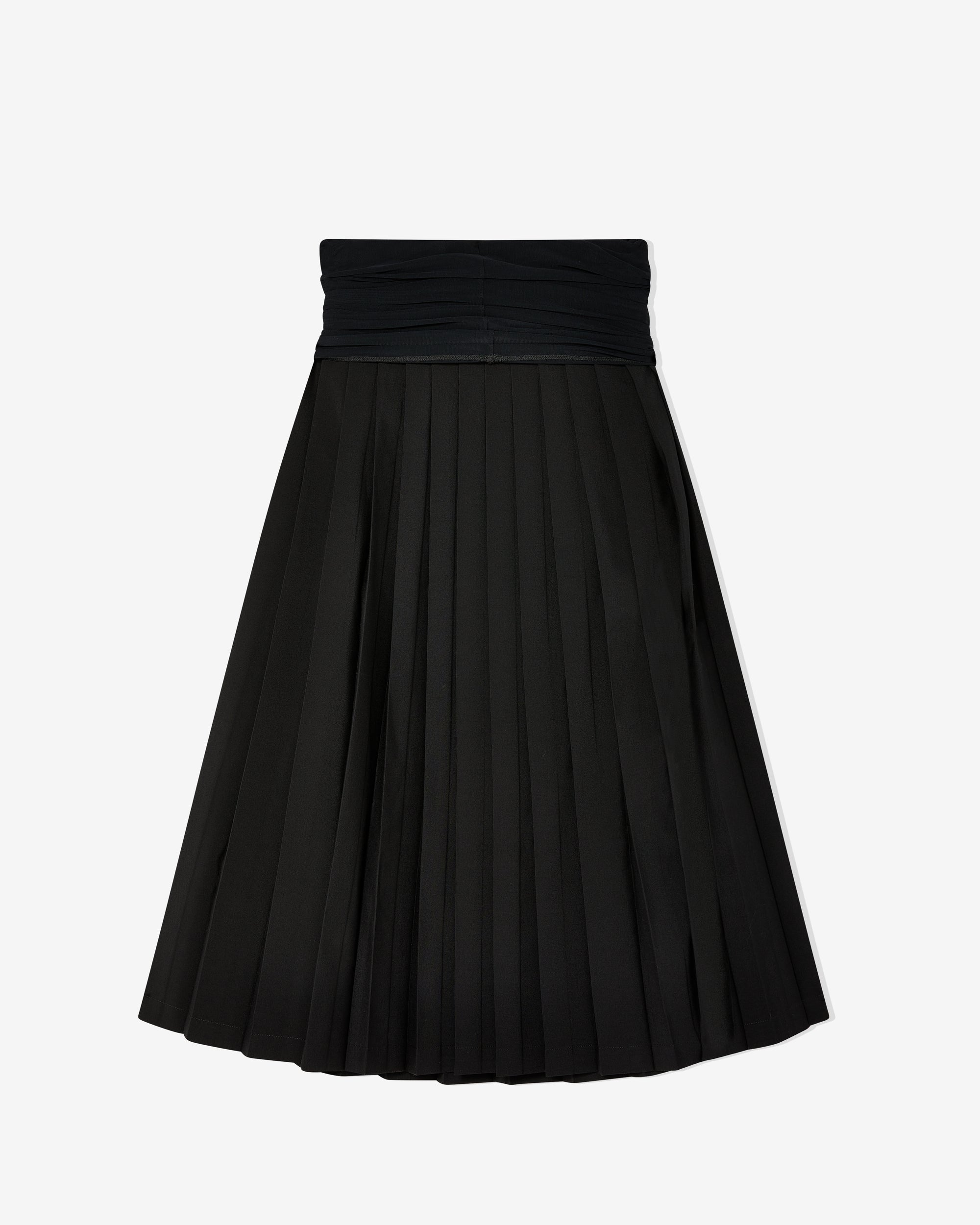 Structured pleatsWide ruched waistband with gathered detailConcealed rear zip closure55 Polyamide, 45% Virgin WoolMade in Italy