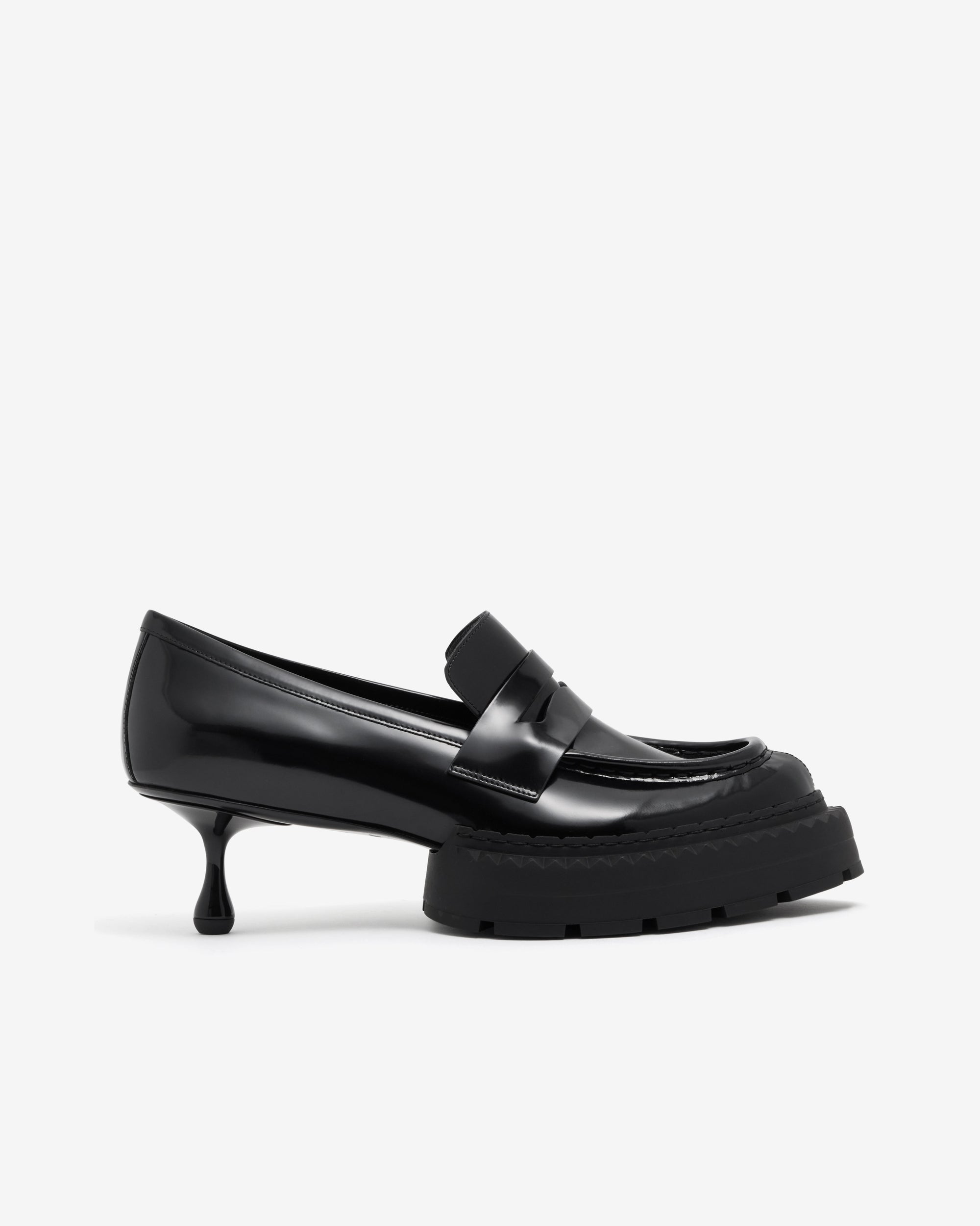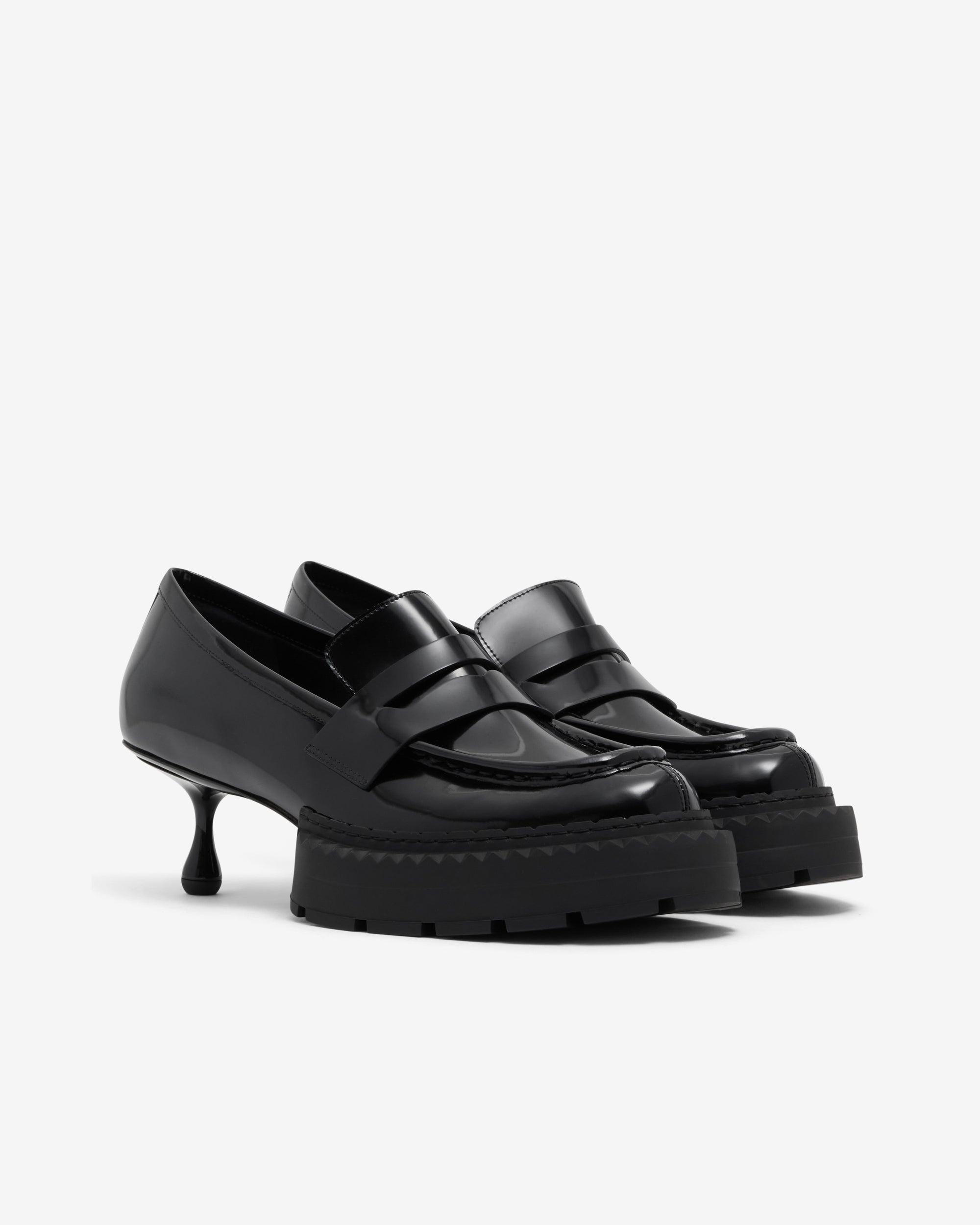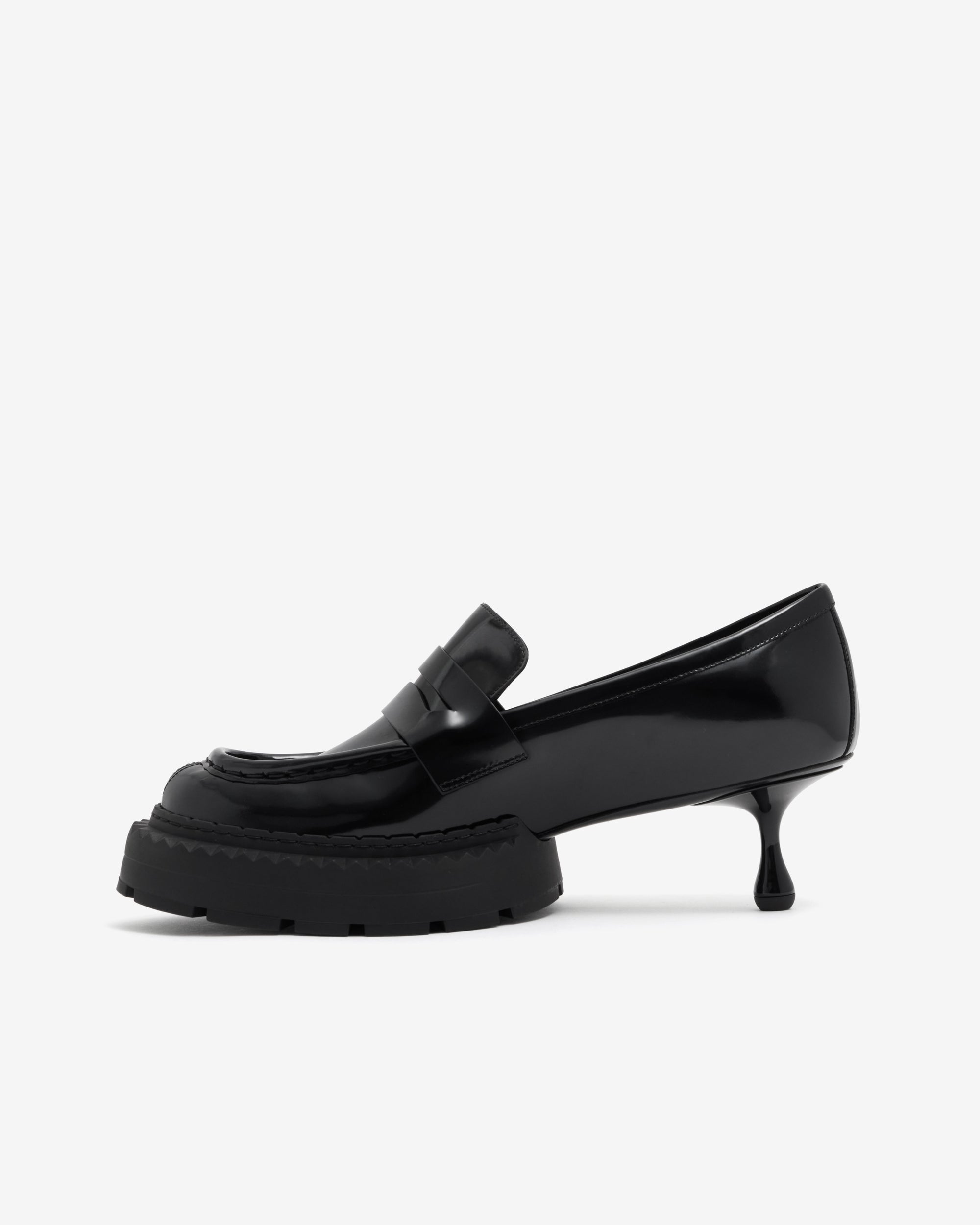 Polished calf leatherApron binding and gimping stitch detailDrop heelHeel height measures: 50mm / 1.9 inchesElevated lug sole in TPUFlexible, non-slip outsole