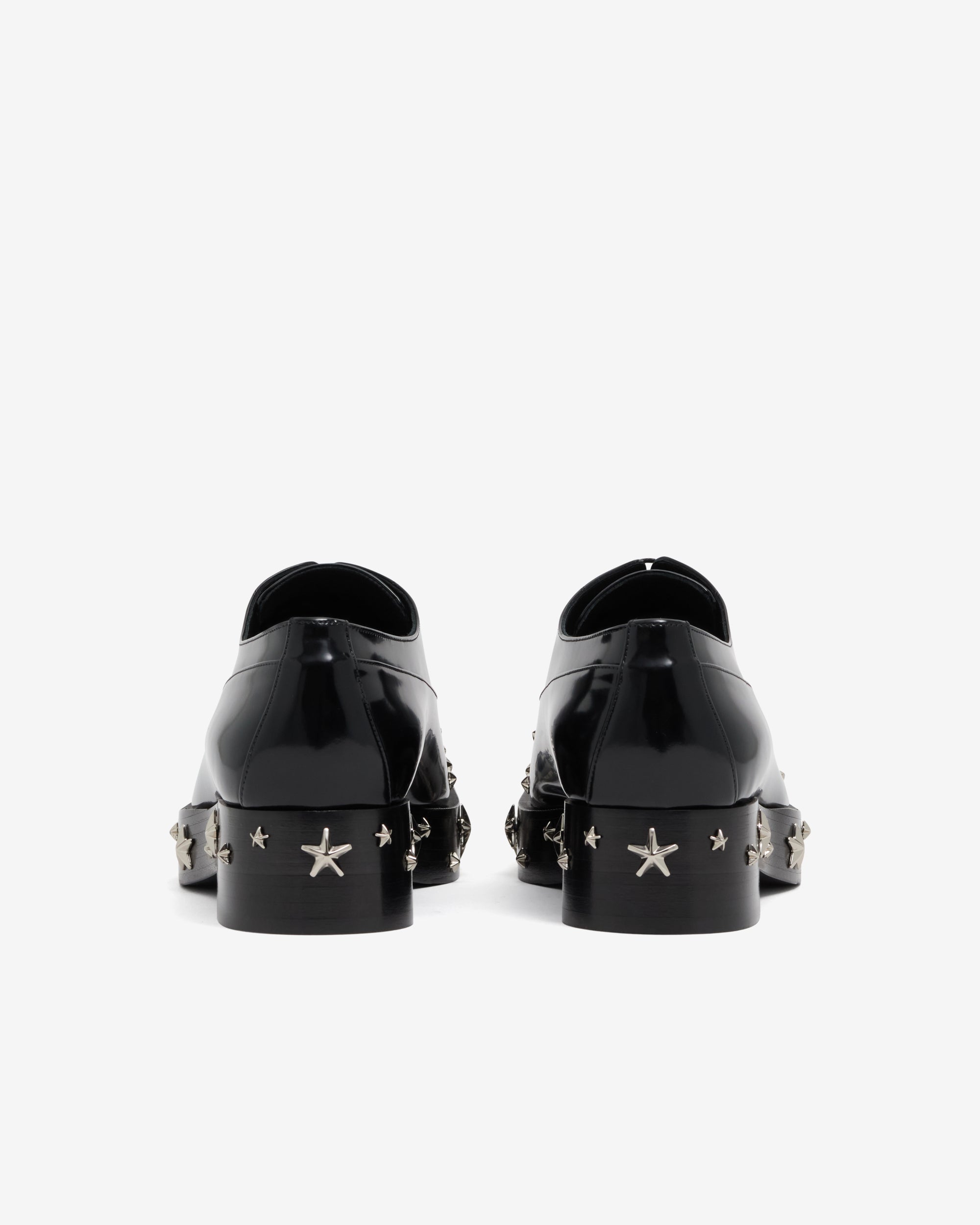 Polished calf leatherAll-over star stud embellishment366 or 124 studs per pairLightweight EVA sole wrapped in leatherFlexible, non-slip TPU outsoleRivet-secured studsHeel height measures: 40mm / 1.5 inches