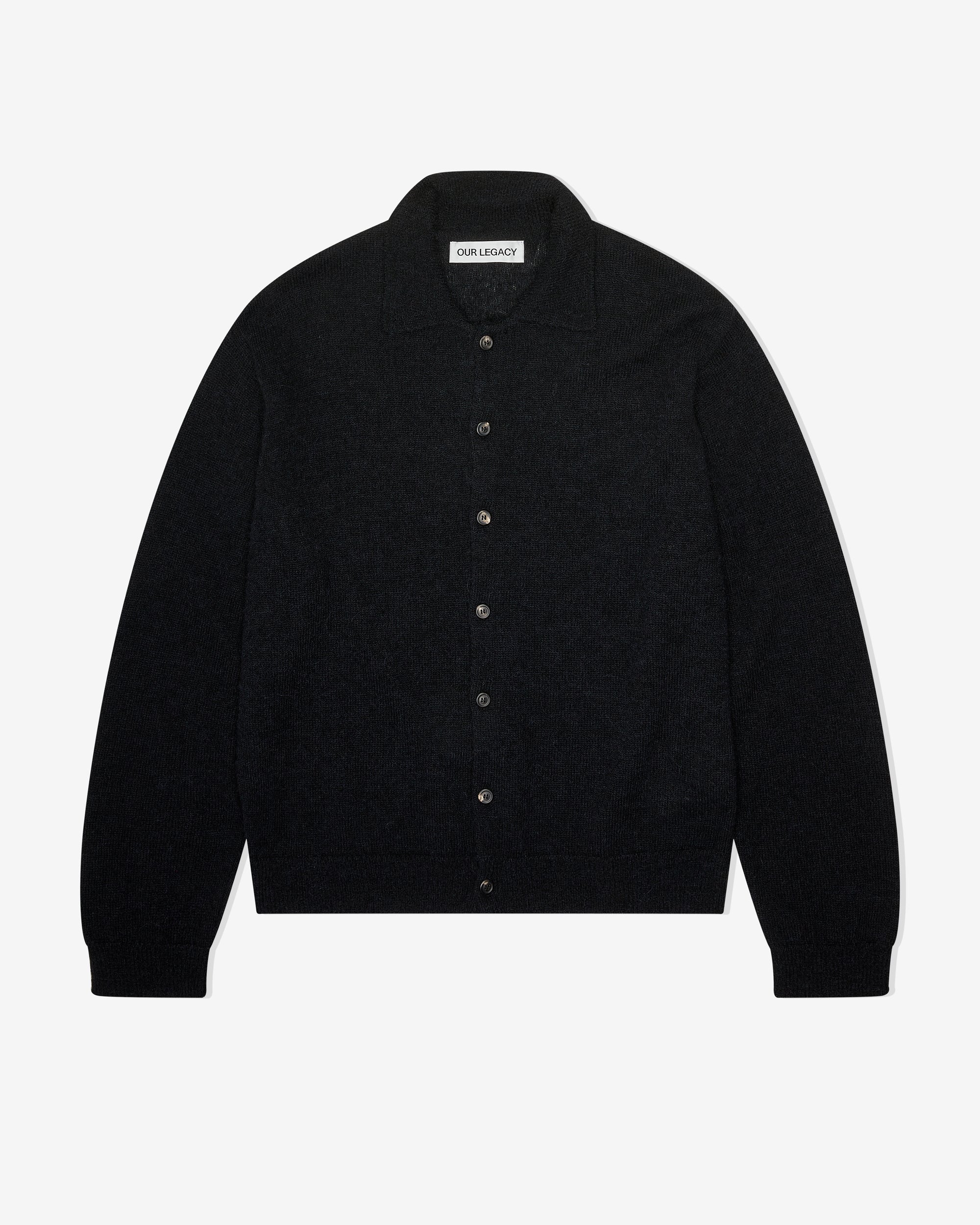 Delicate fabricFine knitPeaked collarHorn buttonsStraight deep ribbed hemRelaxed, boxy fit55% Alpaca, 15% Wool, 22% Other FiberMade in Portugal