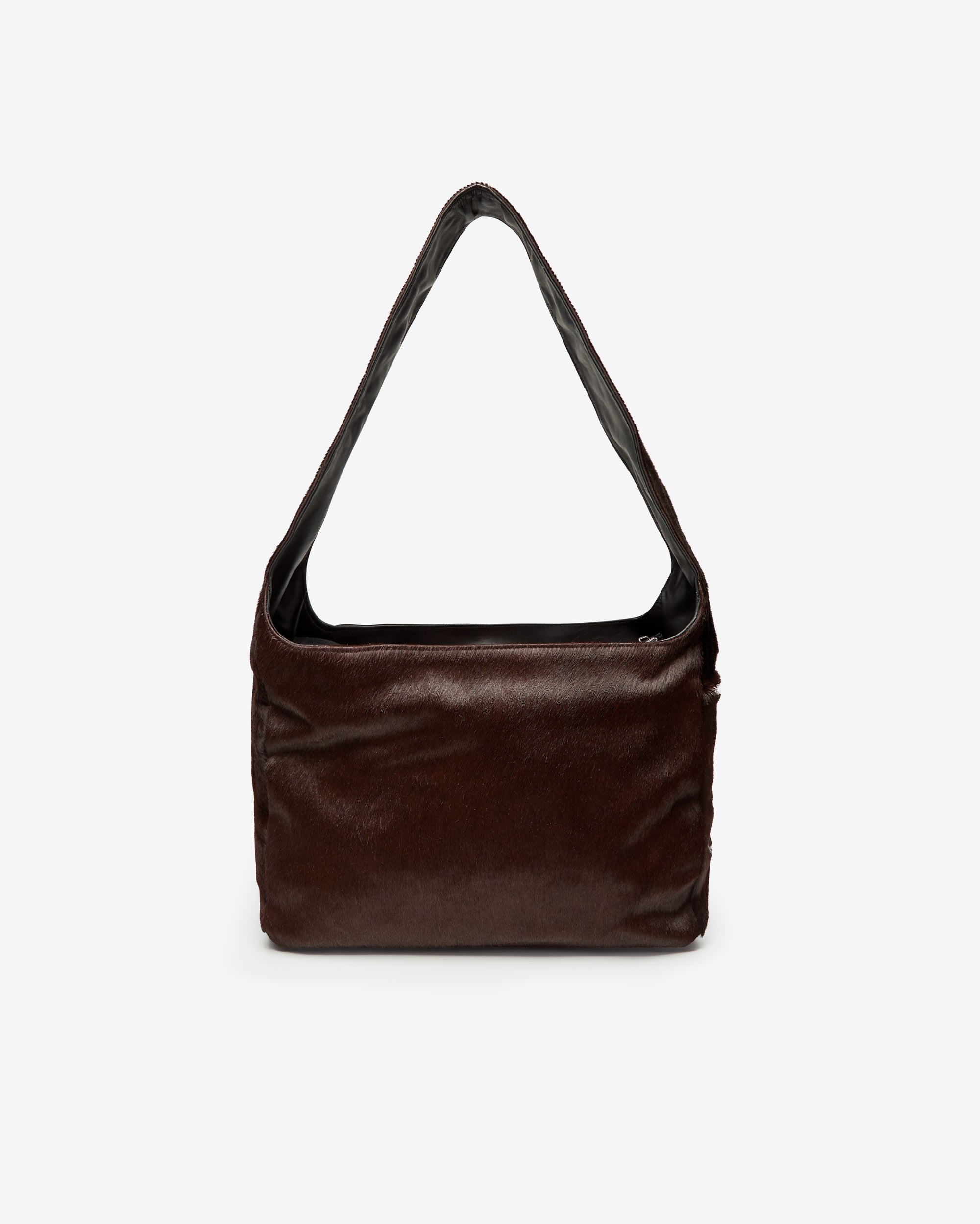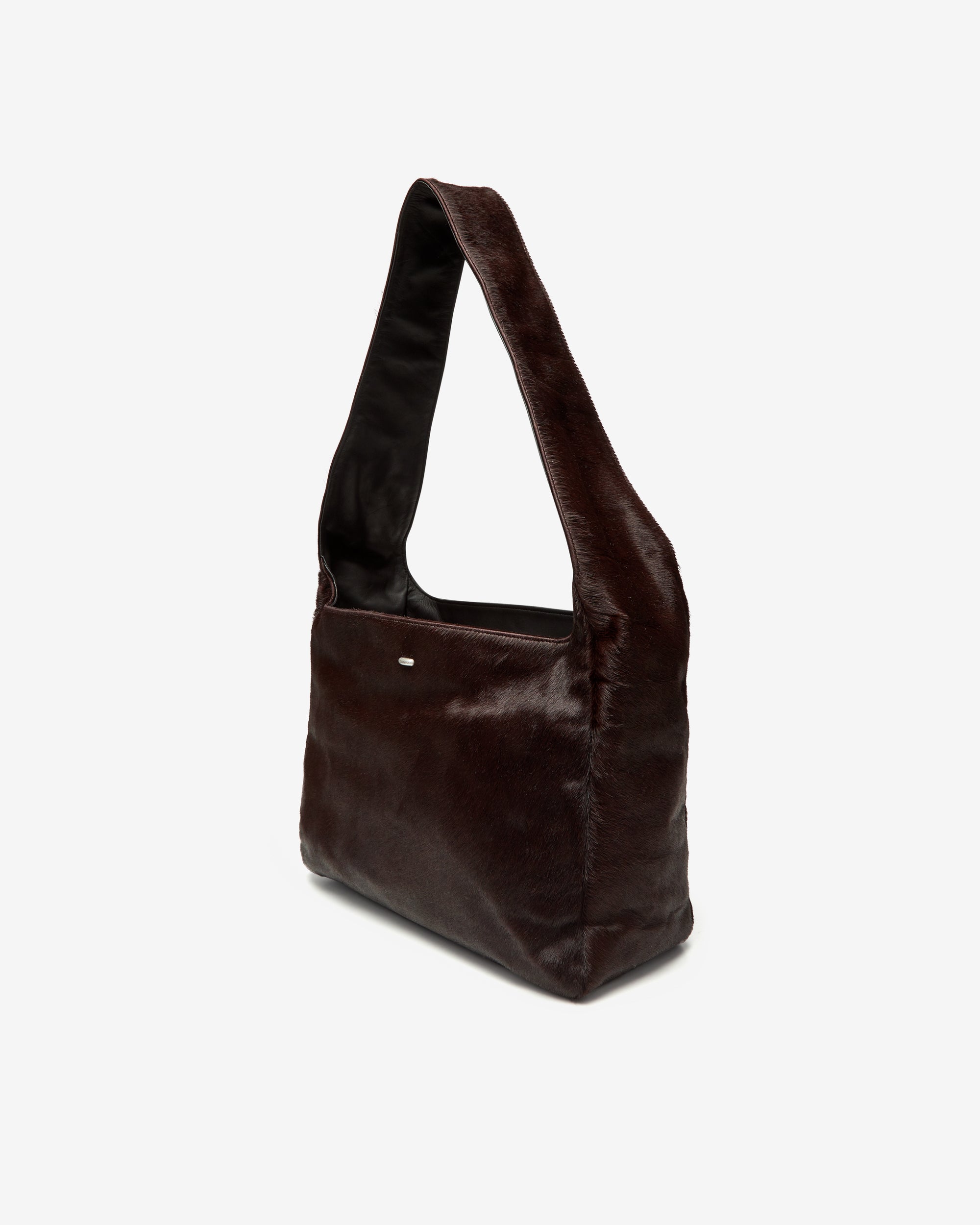 Italian leatherSingle tapered shoulder strapOur Legacy metal rivetZip closureInner patch pocketCanvas lining37 cm x 26.5 cm x 10.5 cm100% Cow LeatherMade in Portugal