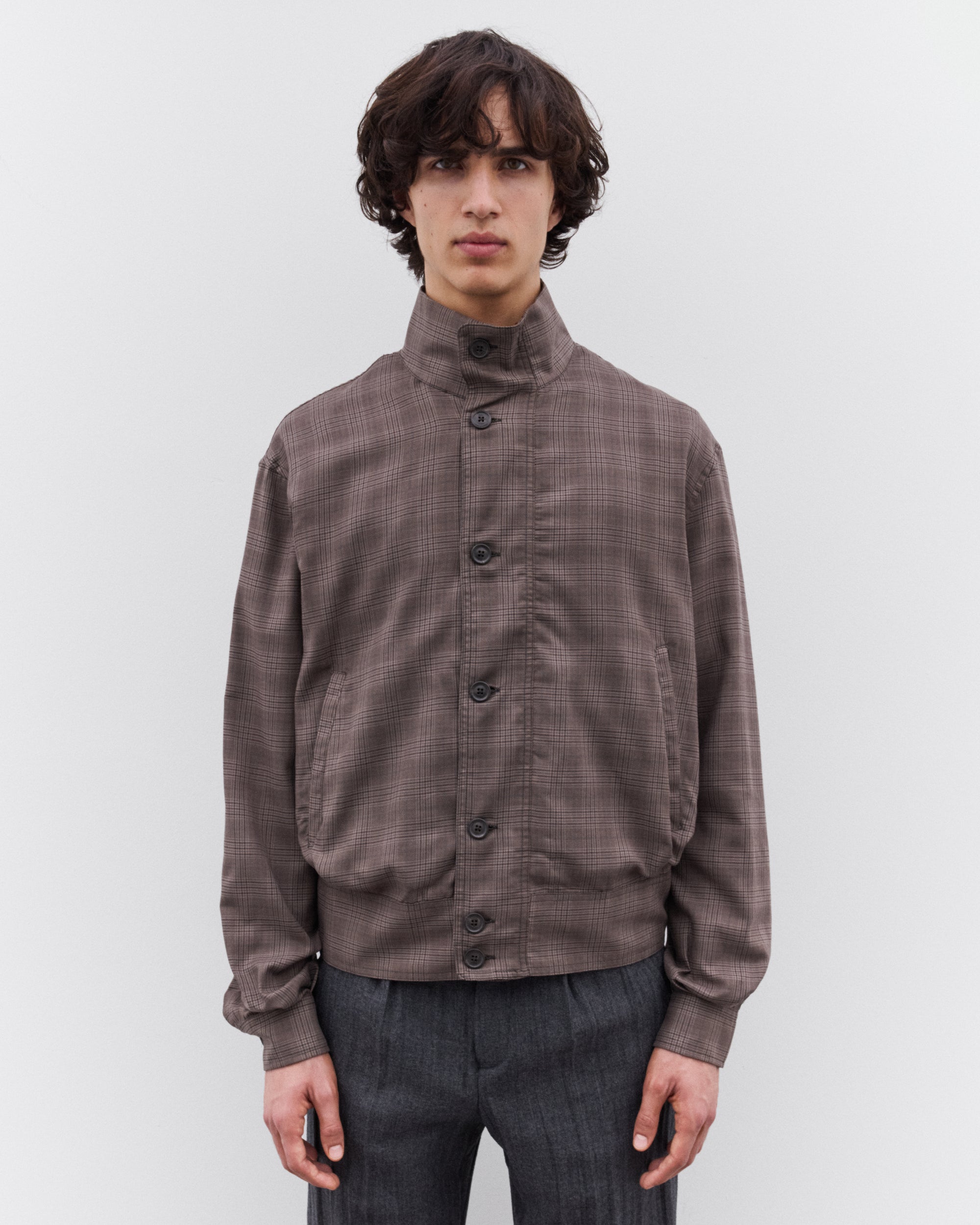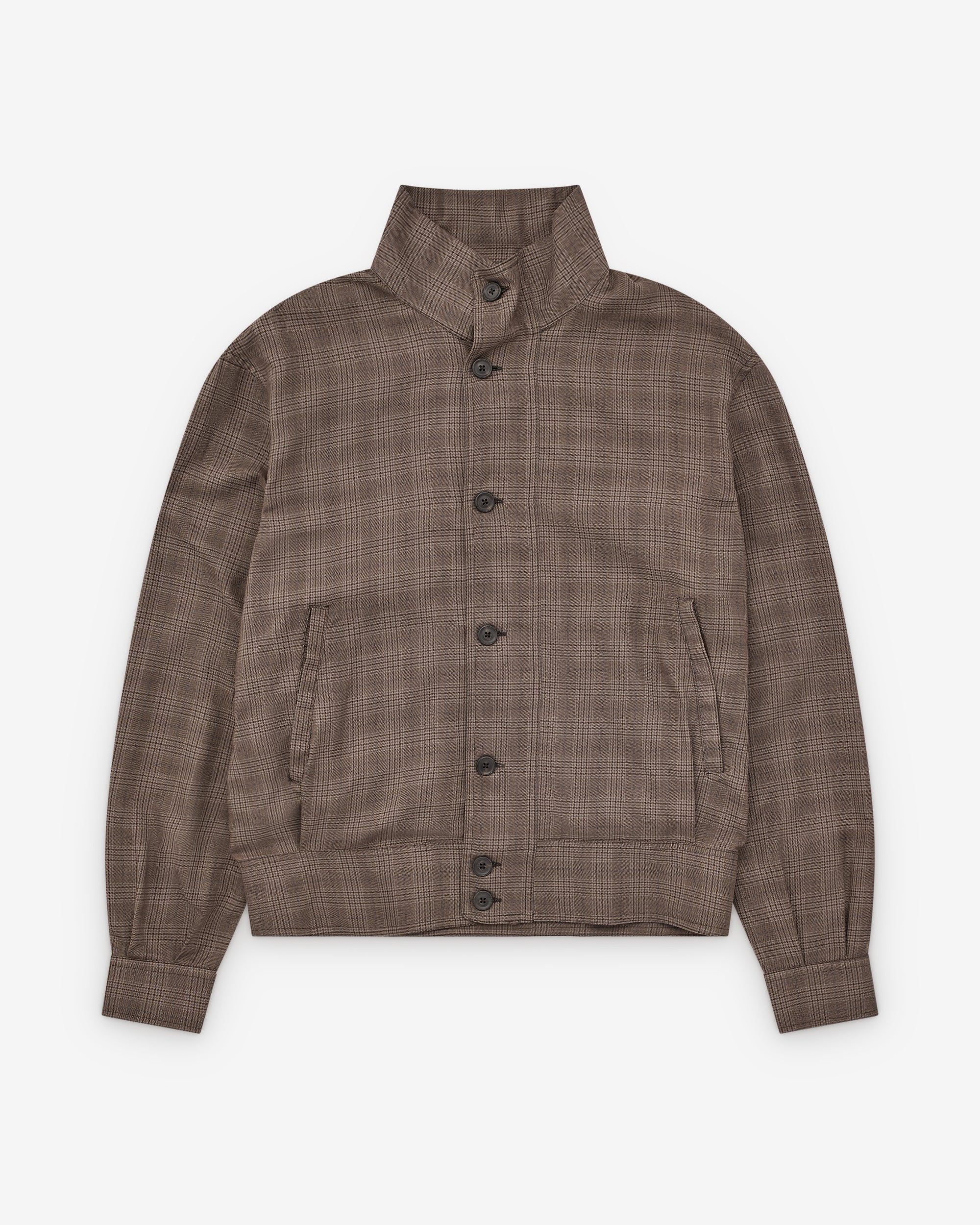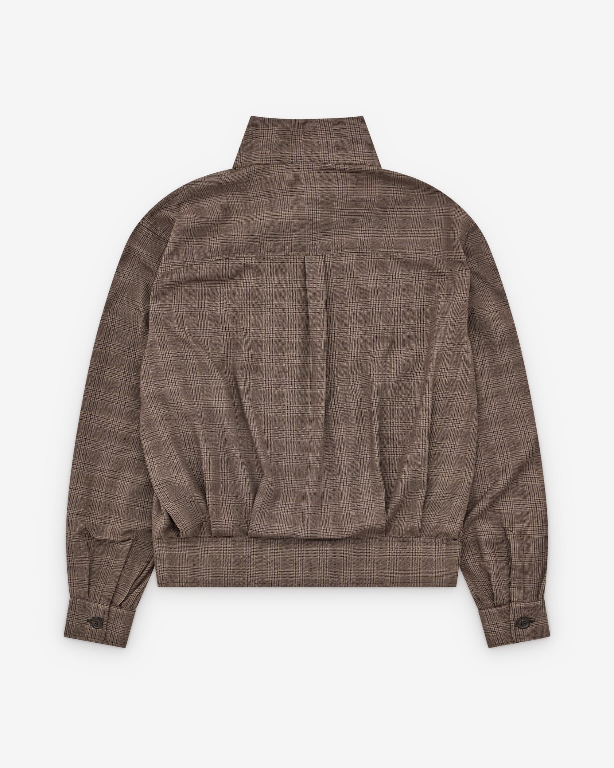 Plaid CheckFunnel necklineBomber stylePleated waistband and cuffsHornite ButtonsRelaxed fit