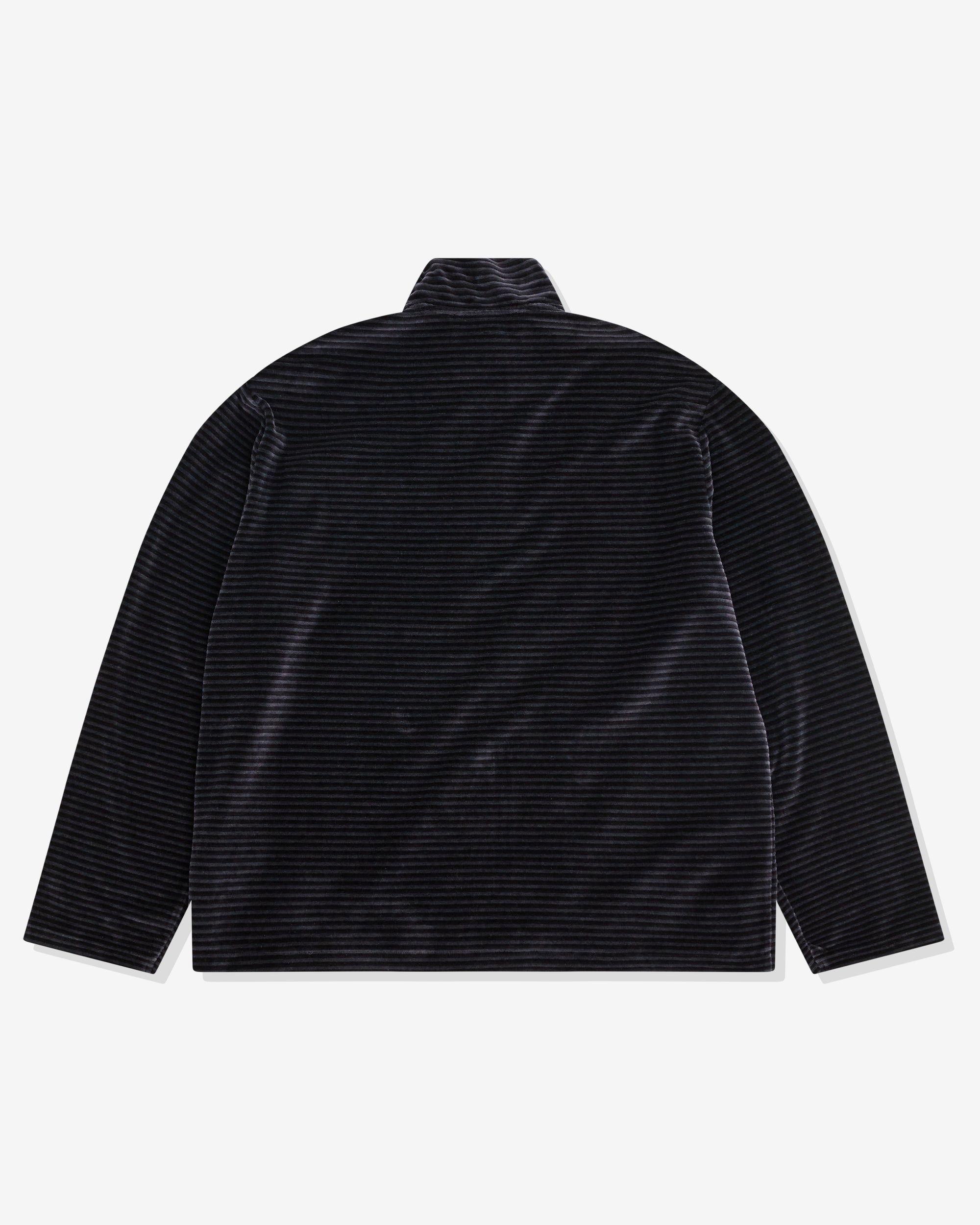 Soft striped velourLampo two way zipFunnel neck collarFlatlock seamsStraight hemShort boxy fit