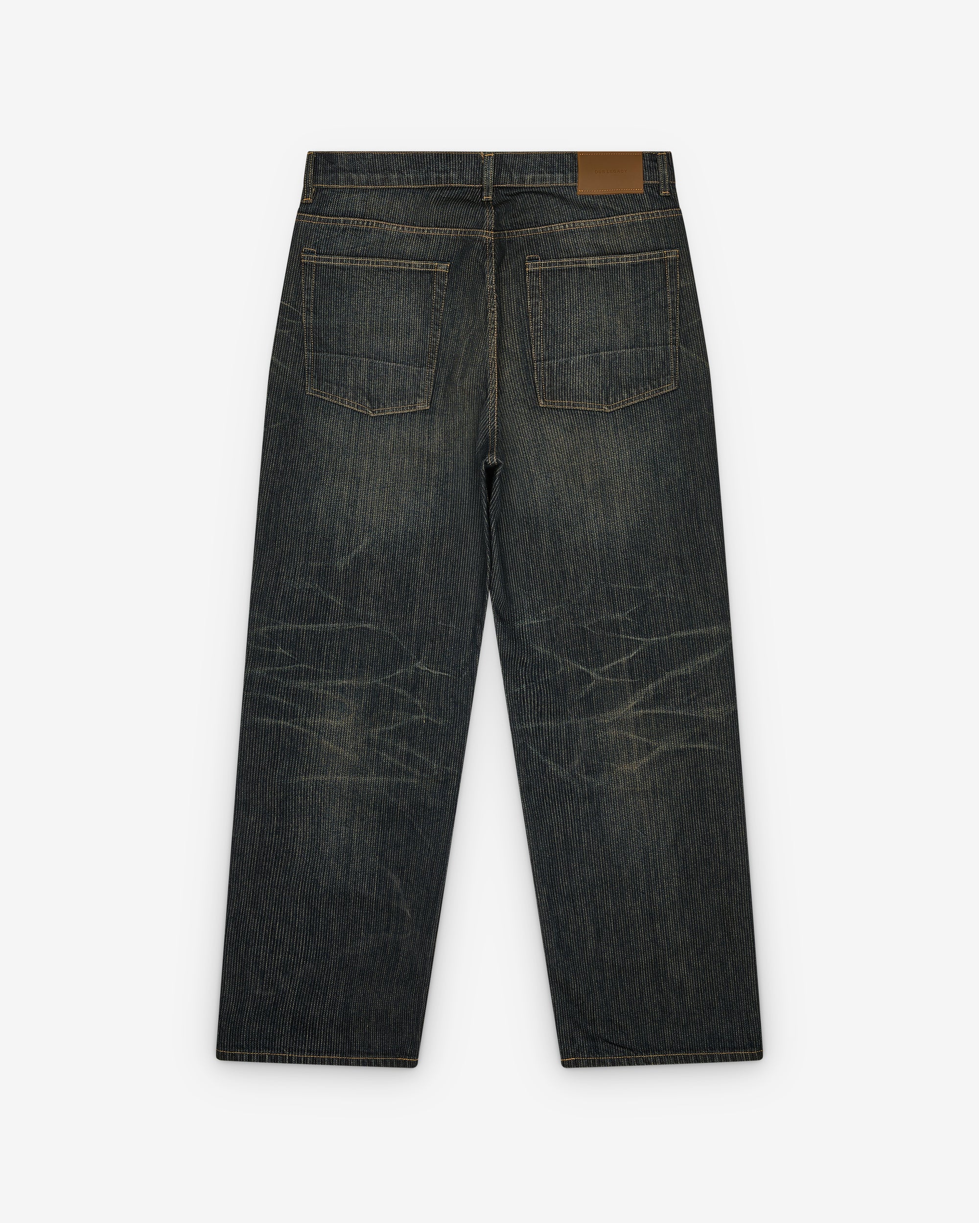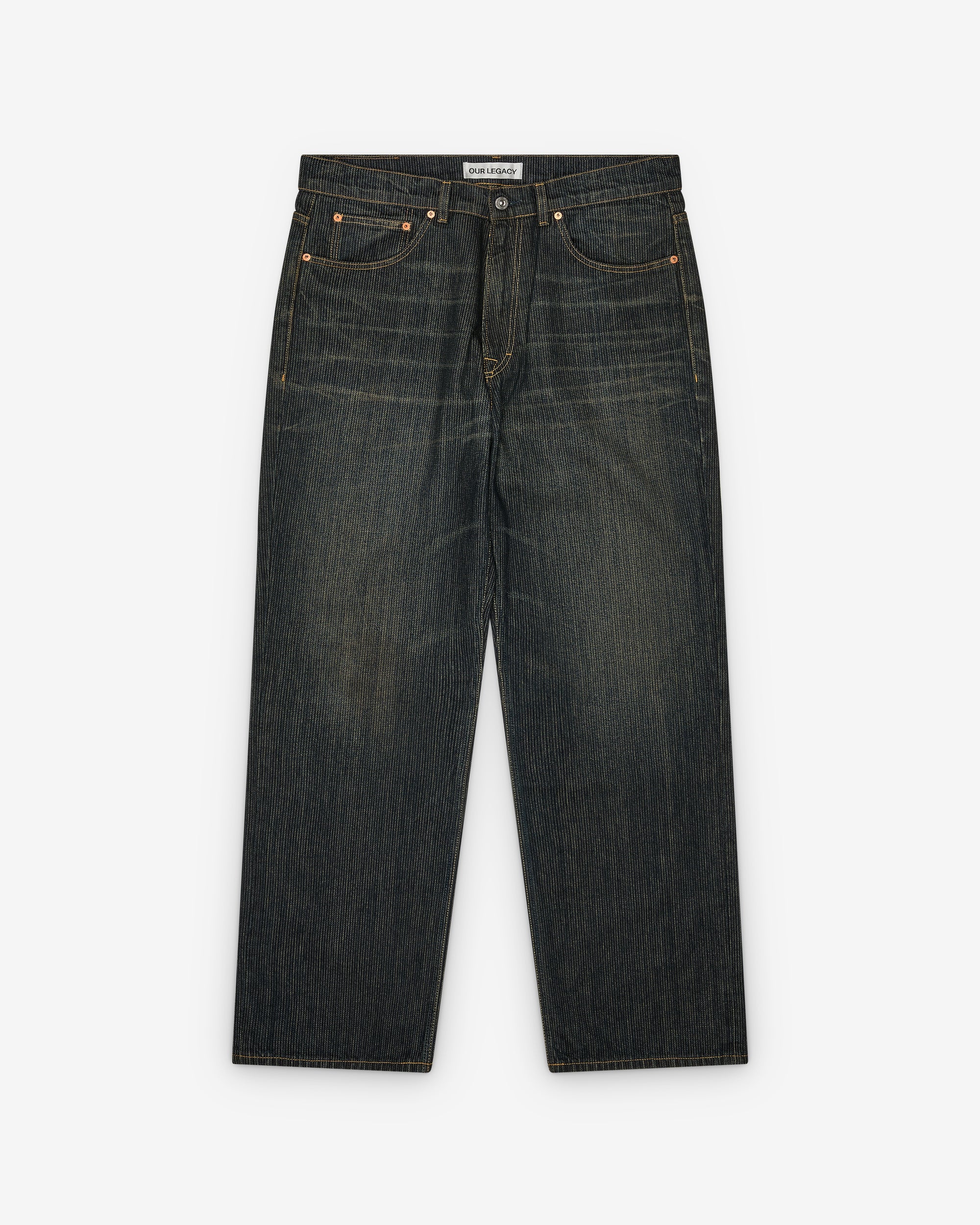 Italian denim Selvedge bottom legRelaxed fitWide straight legYKK zip flyMetal rivetsOUR LEGACY embossed patchFive pocketsReinforced back pockets
