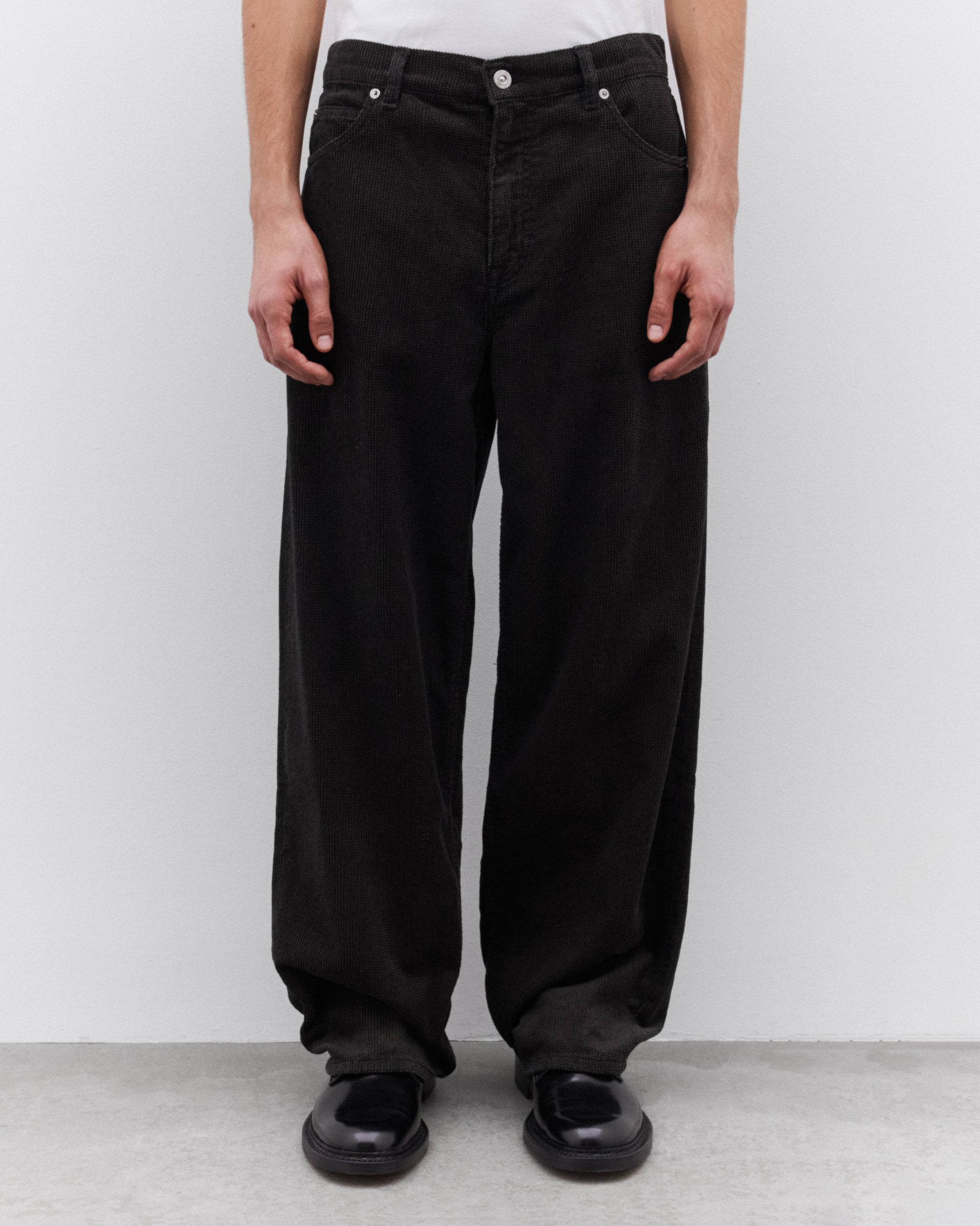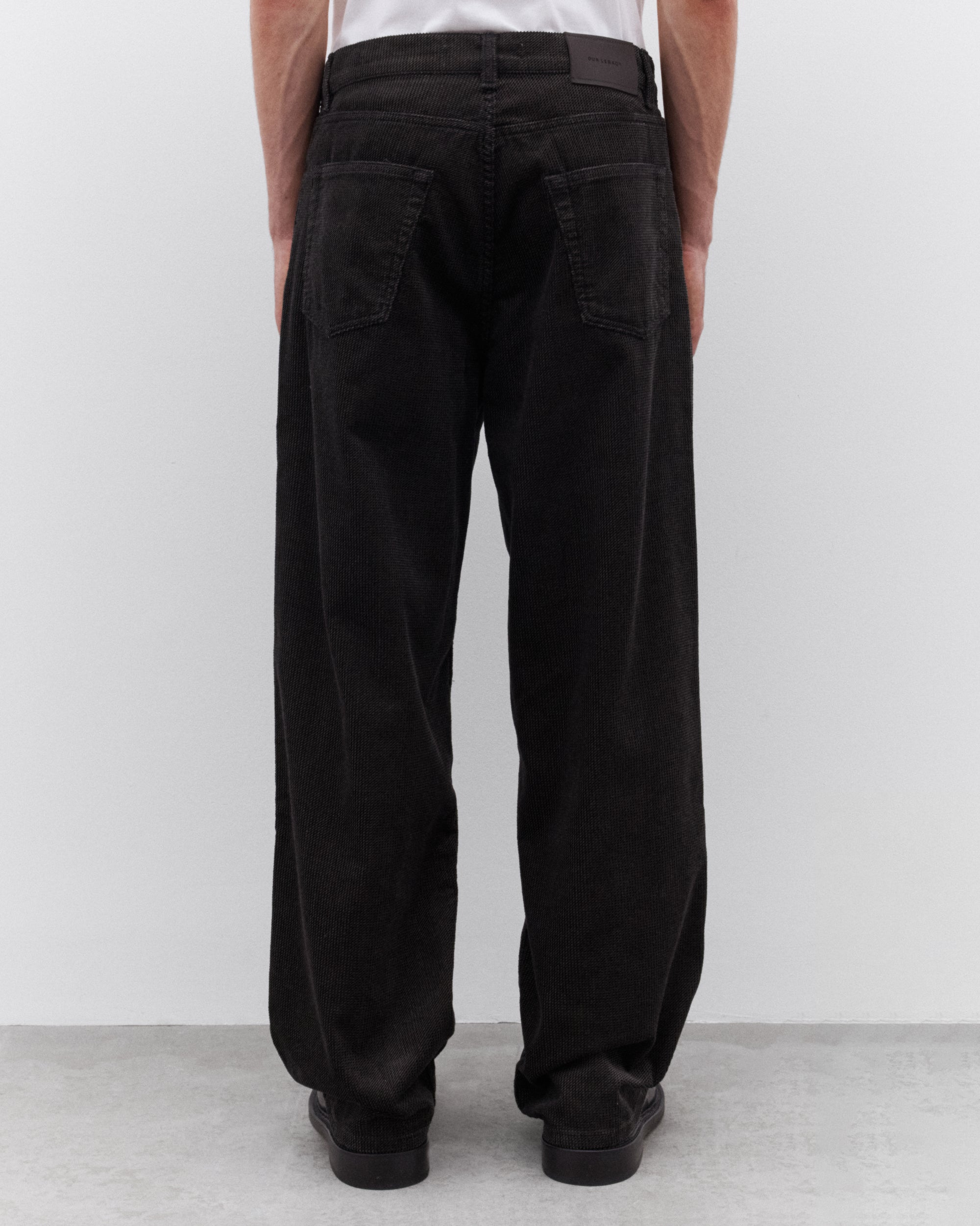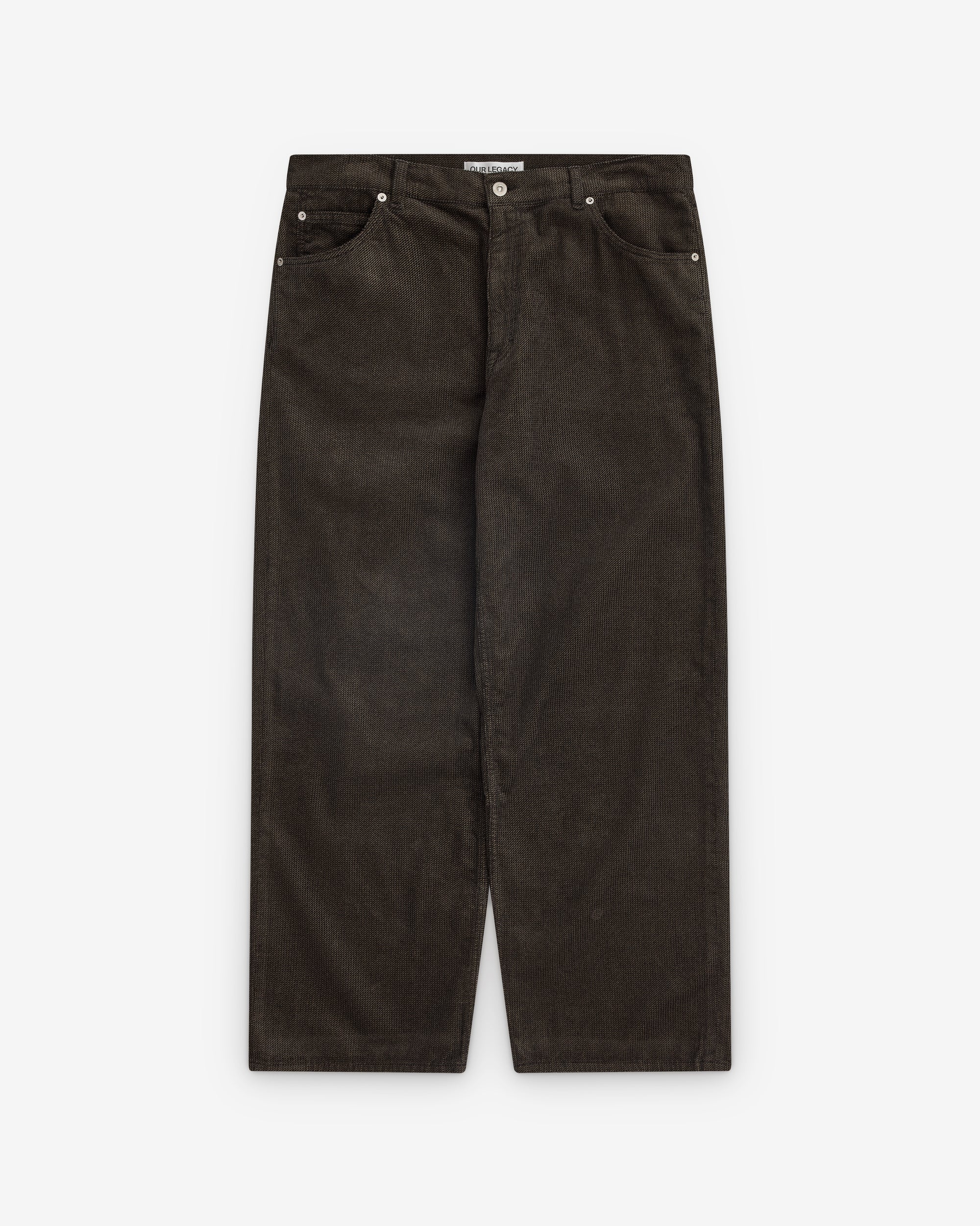 Button waist closure5 Pocket constructionLeather patch at waist Wide fit Metal rivet details