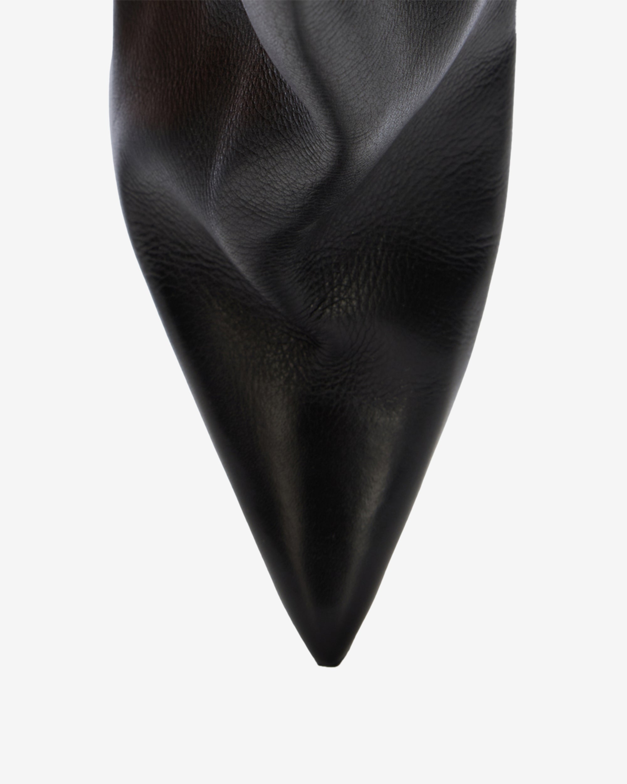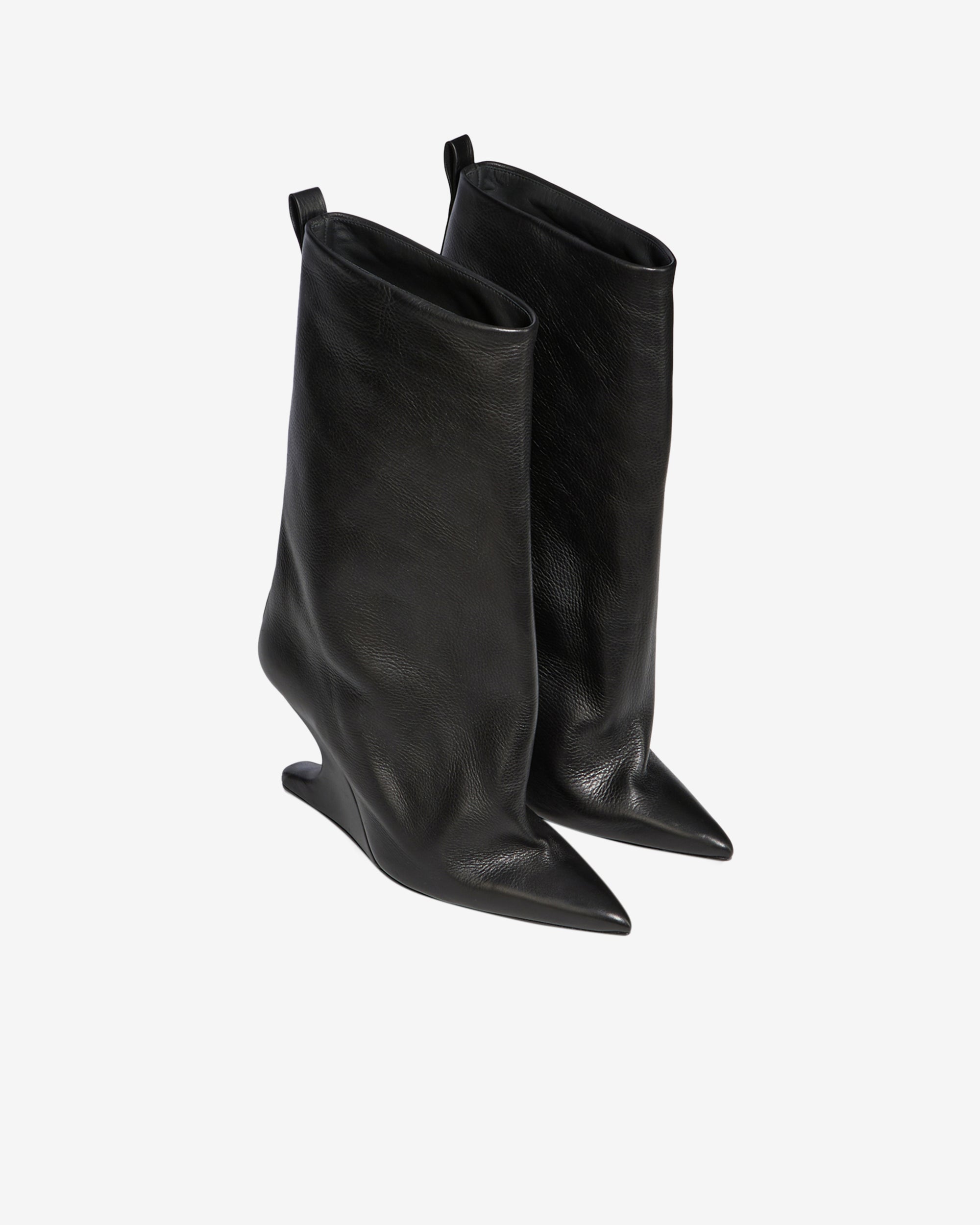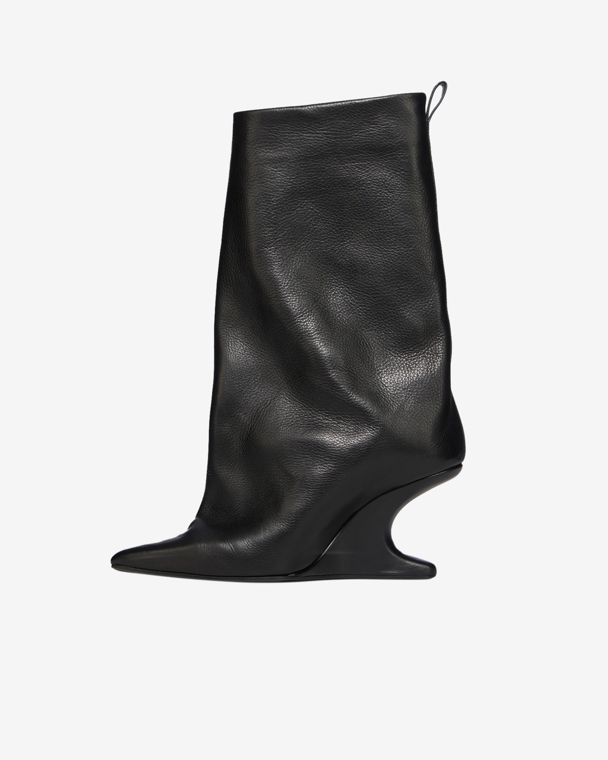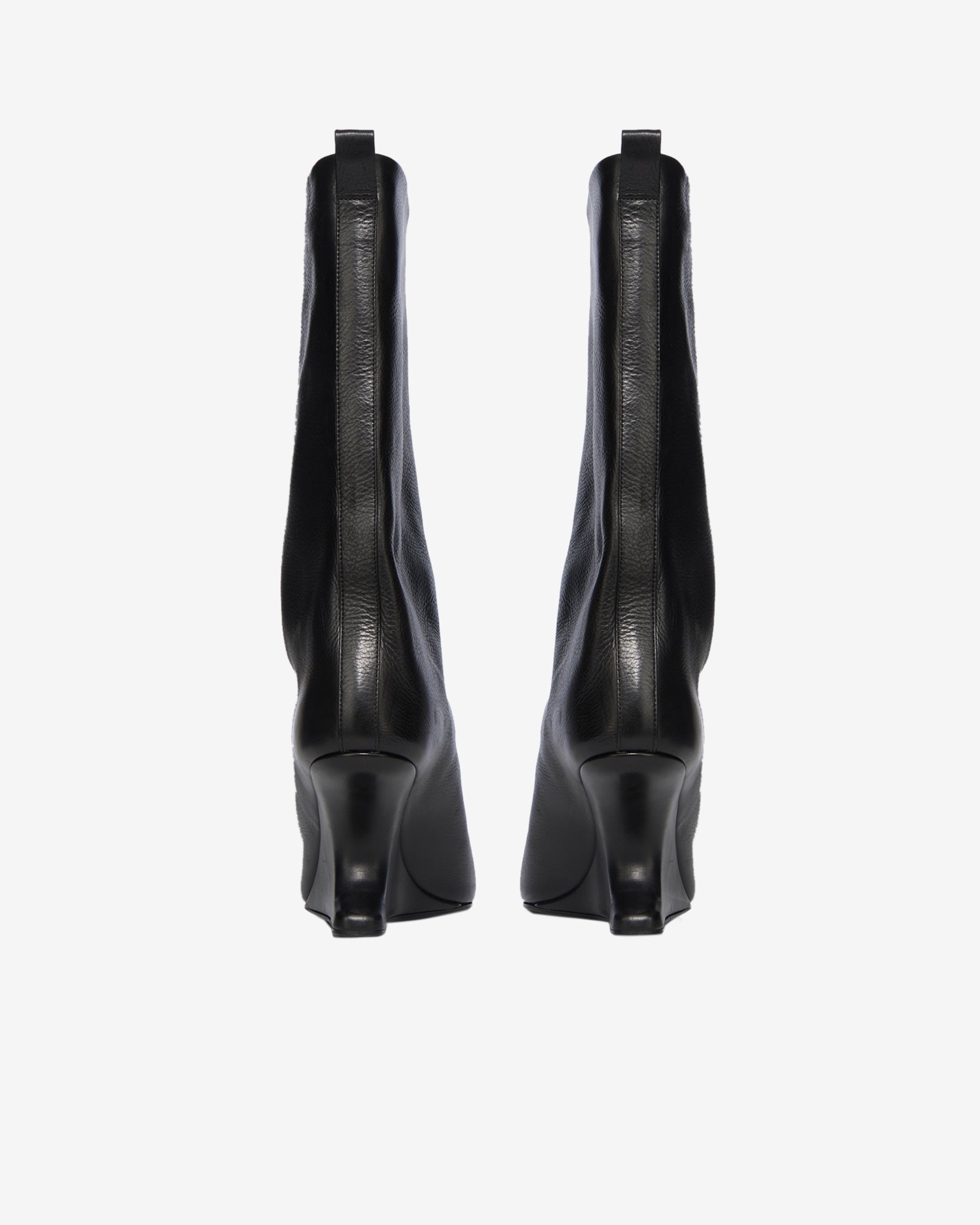 Wide leg openingMid-calf heighttall cantilever heel100% Calf LeatherMade in Italy