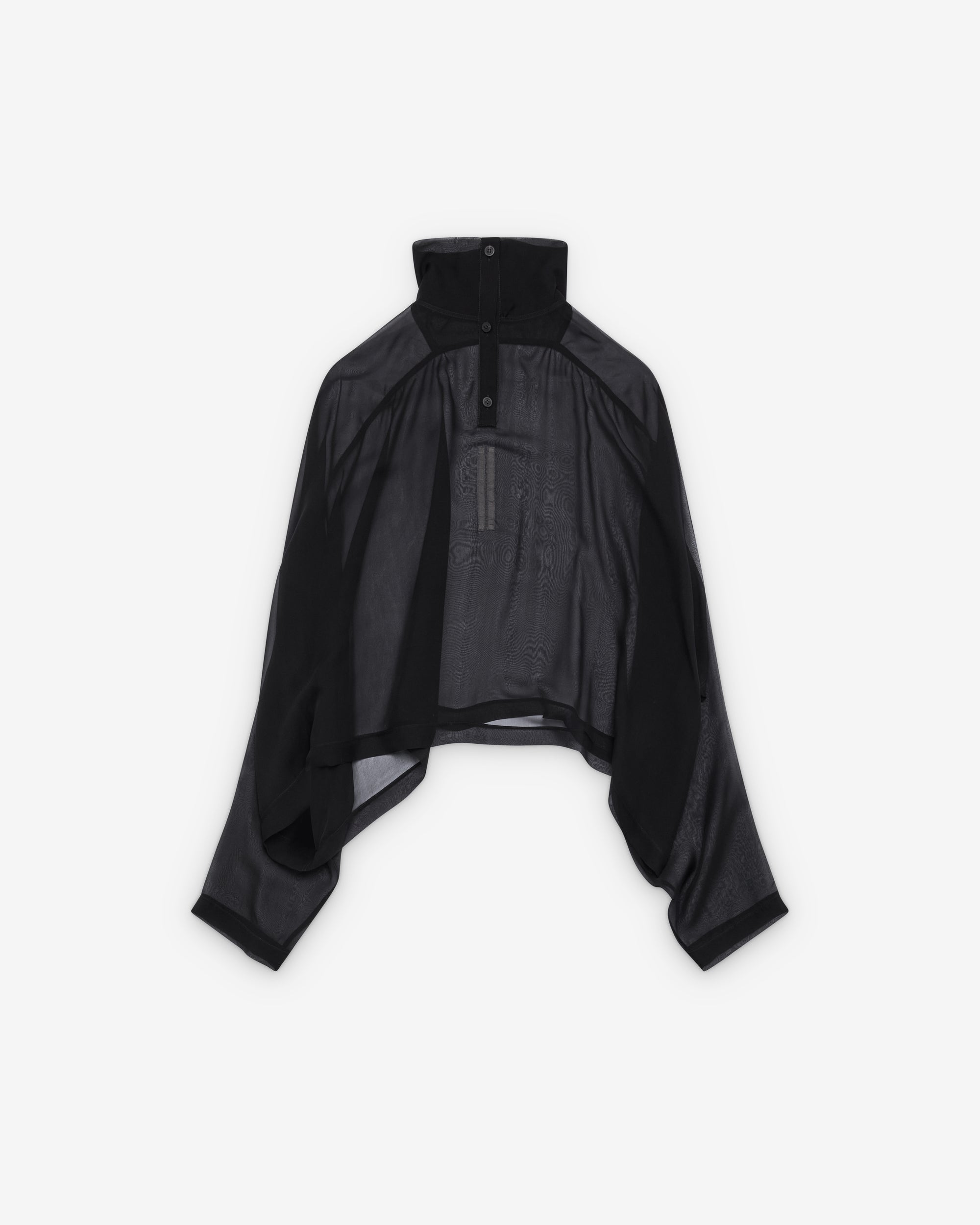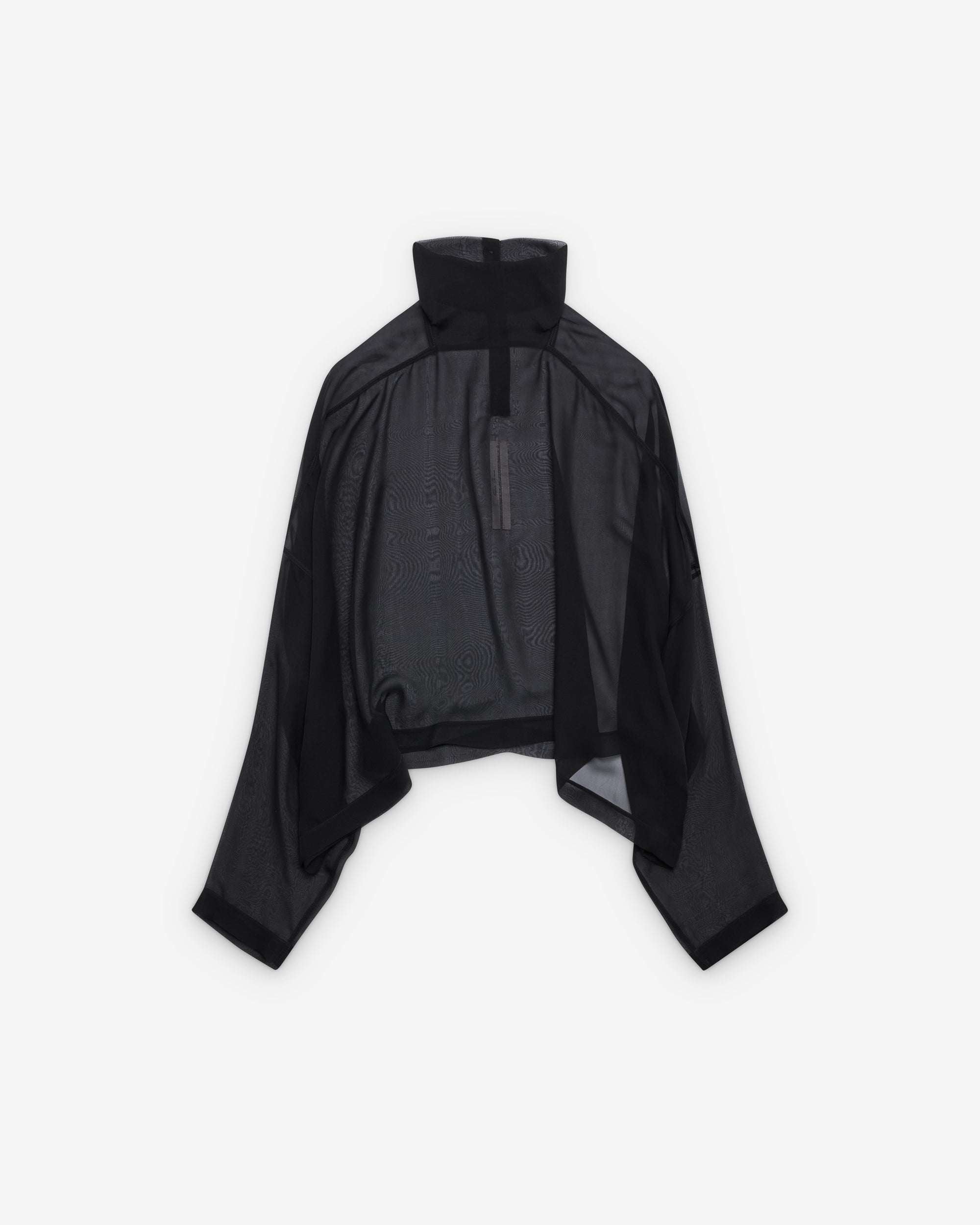 Funnel necklineLong sleevesCropped fit through bodyCentre back opening