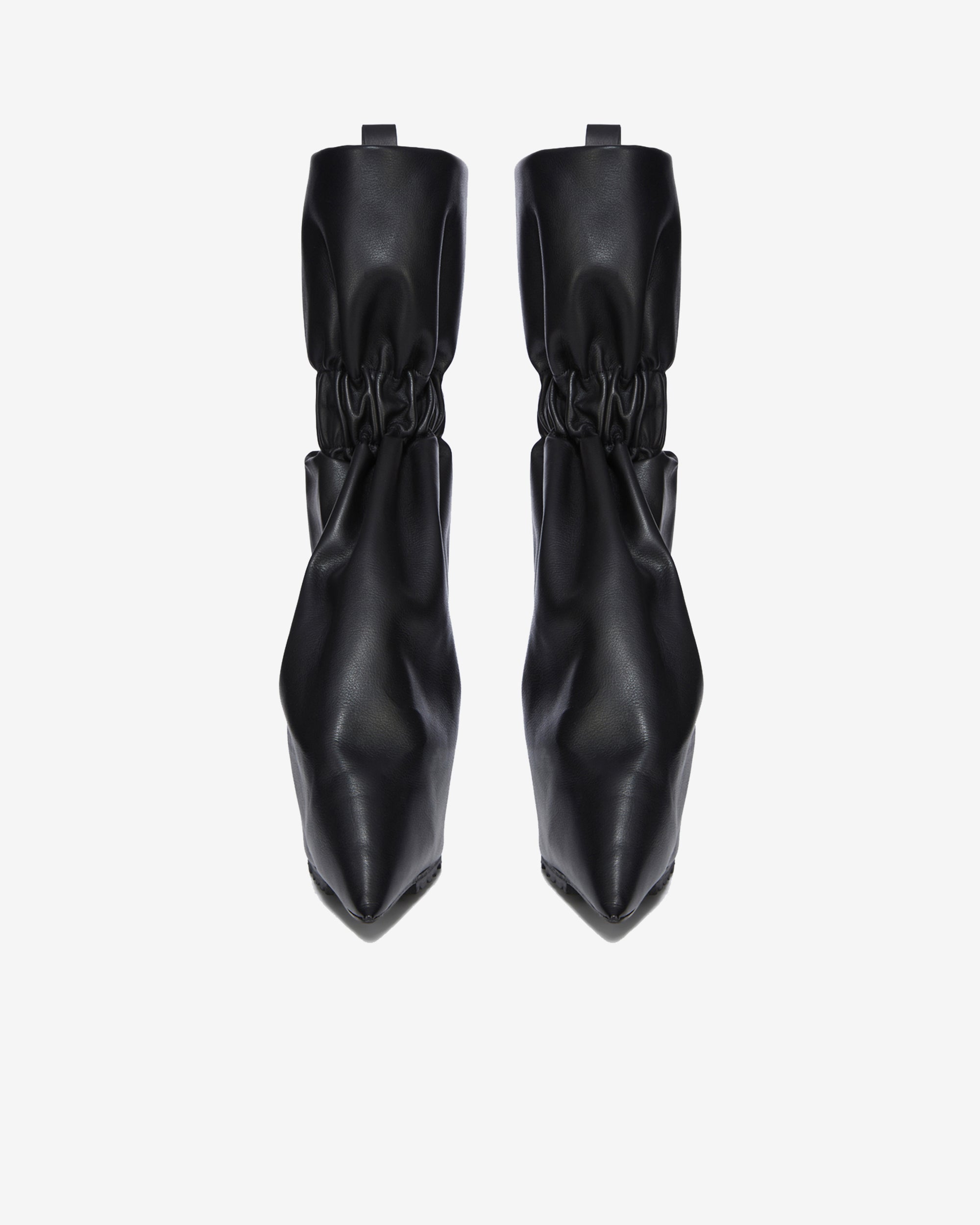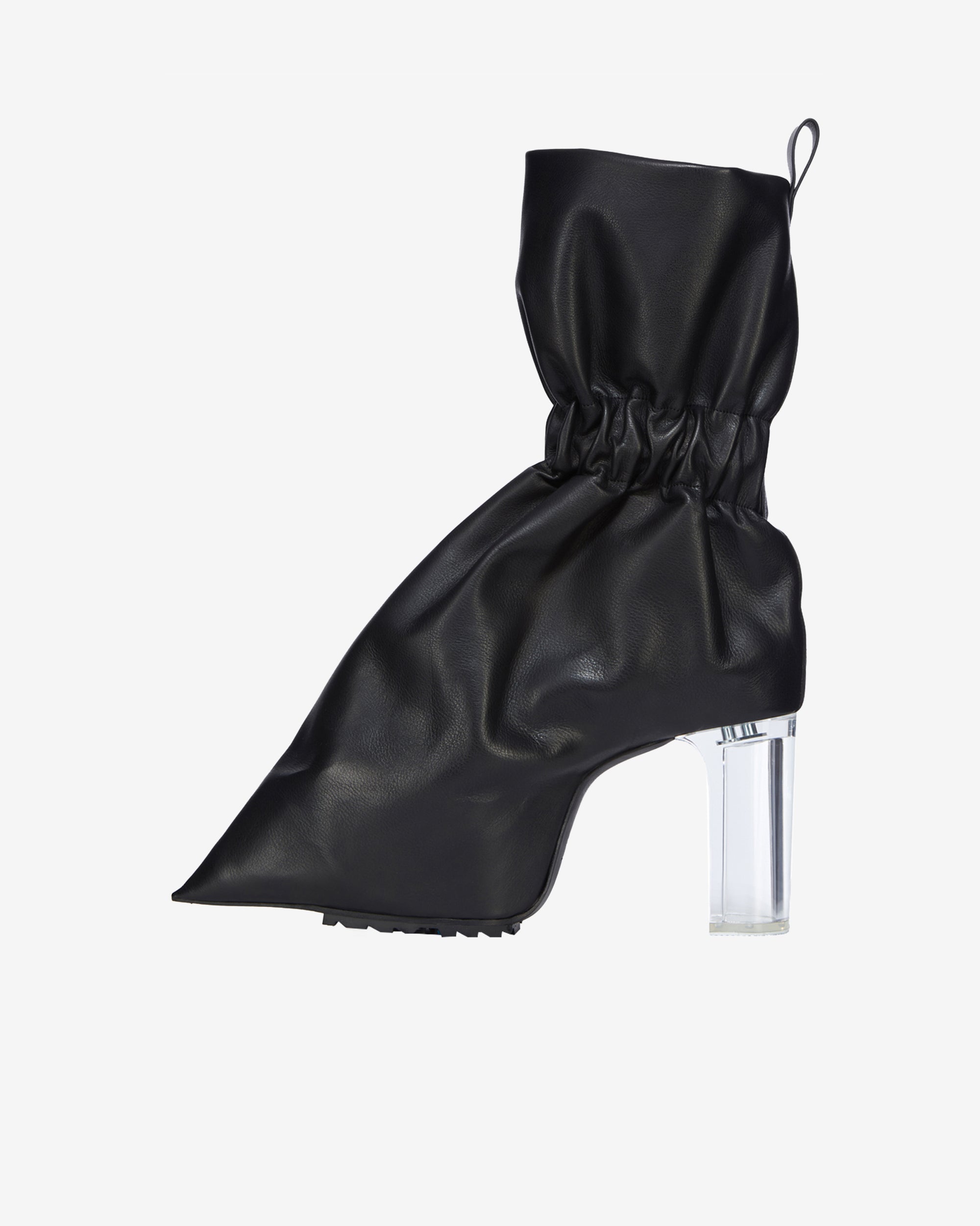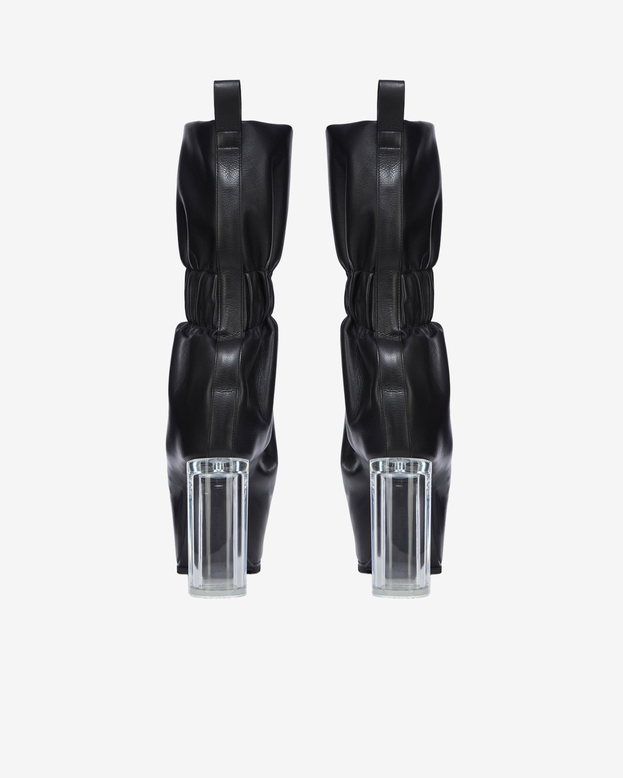 Tall, clear block heelMid calf heightPull tab100% Calf Leather, 100% RubberMade in Italy