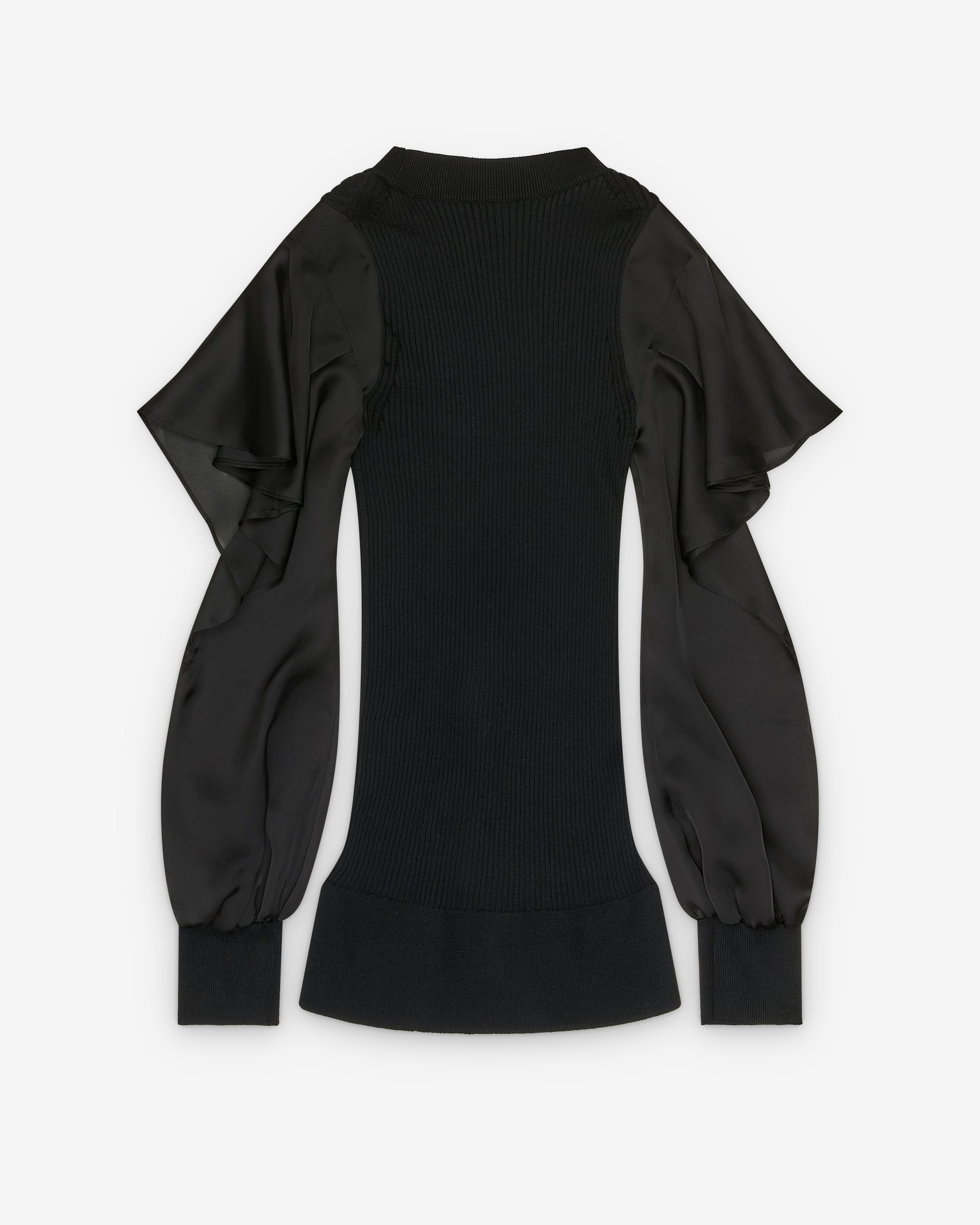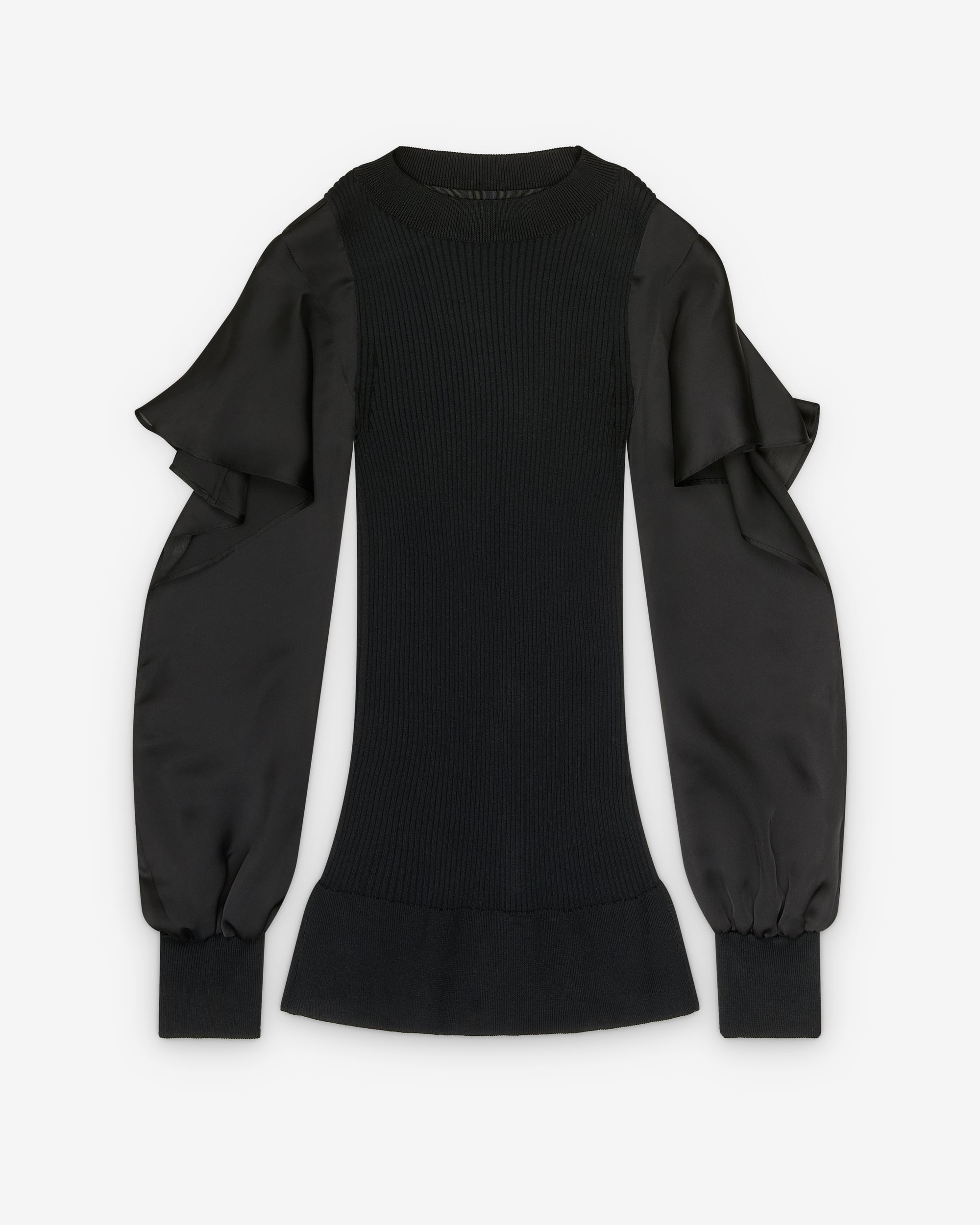 Thick rib knitRuffle details at shouldersRibbed cuffs100% CottonMade in Japan