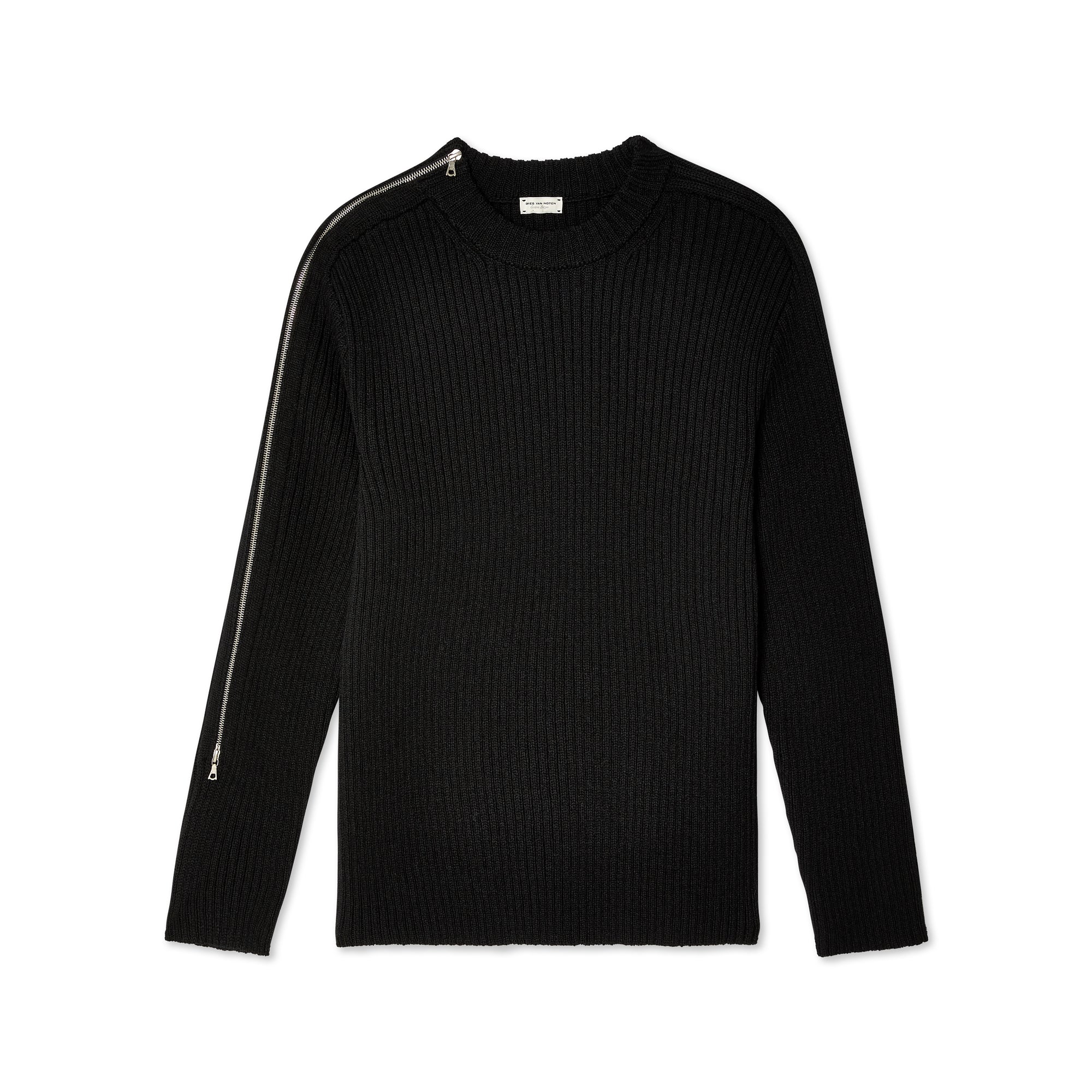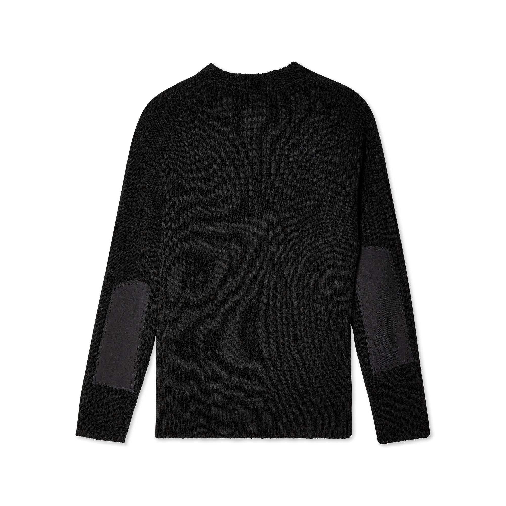 Rib knit crewneck collar, cuffs, and hemDropped shouldersZipper vent on right sleeveElbow patchesImported