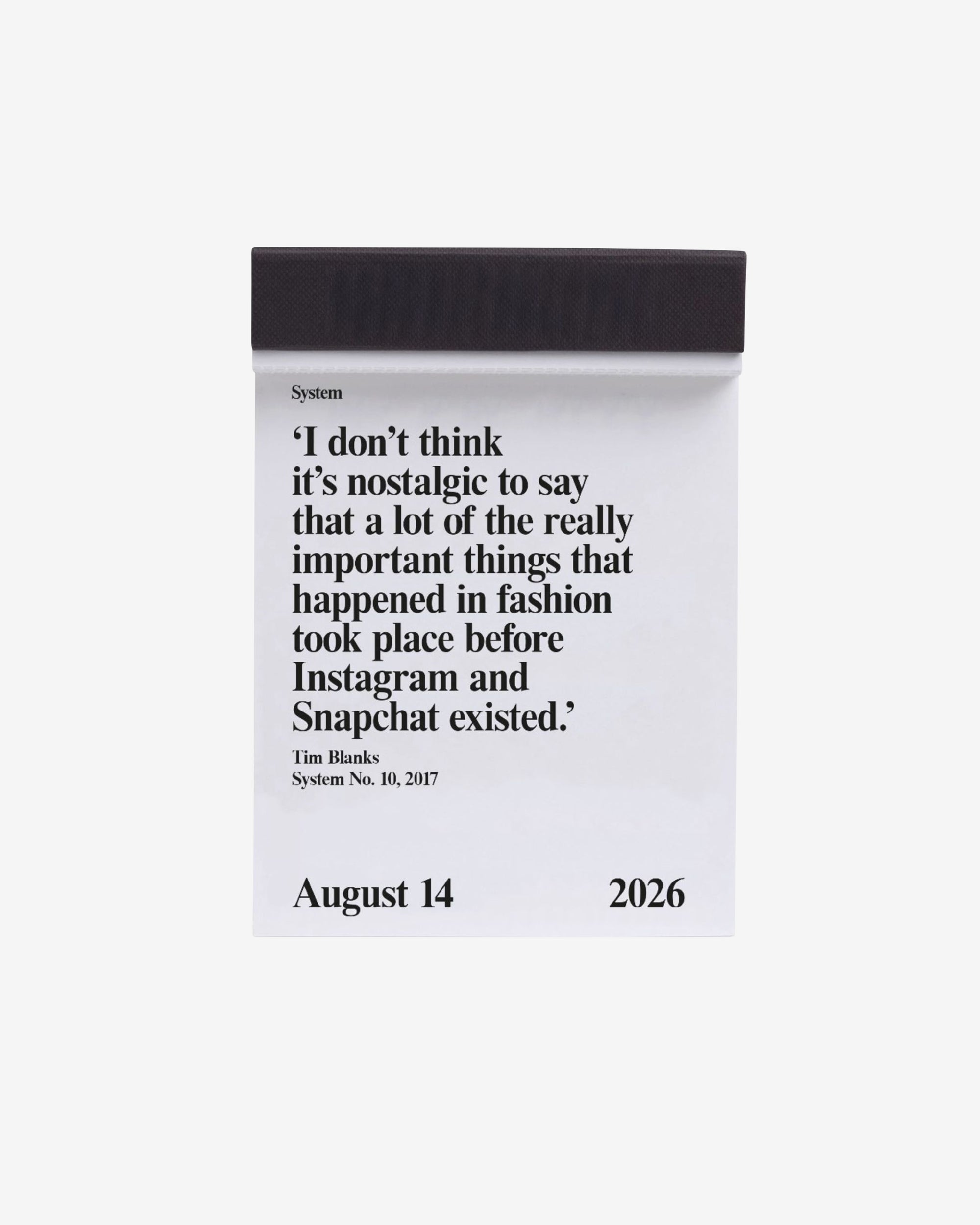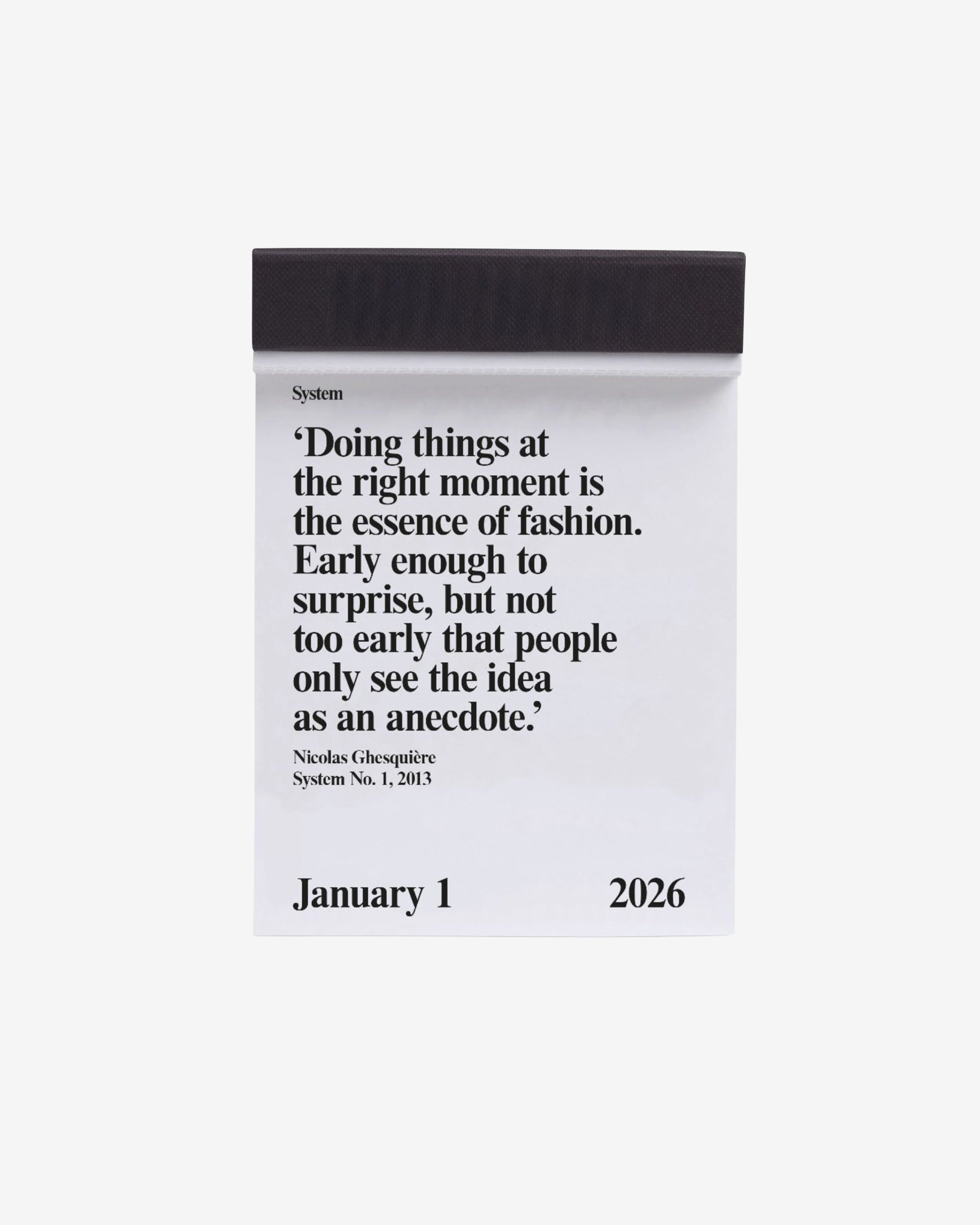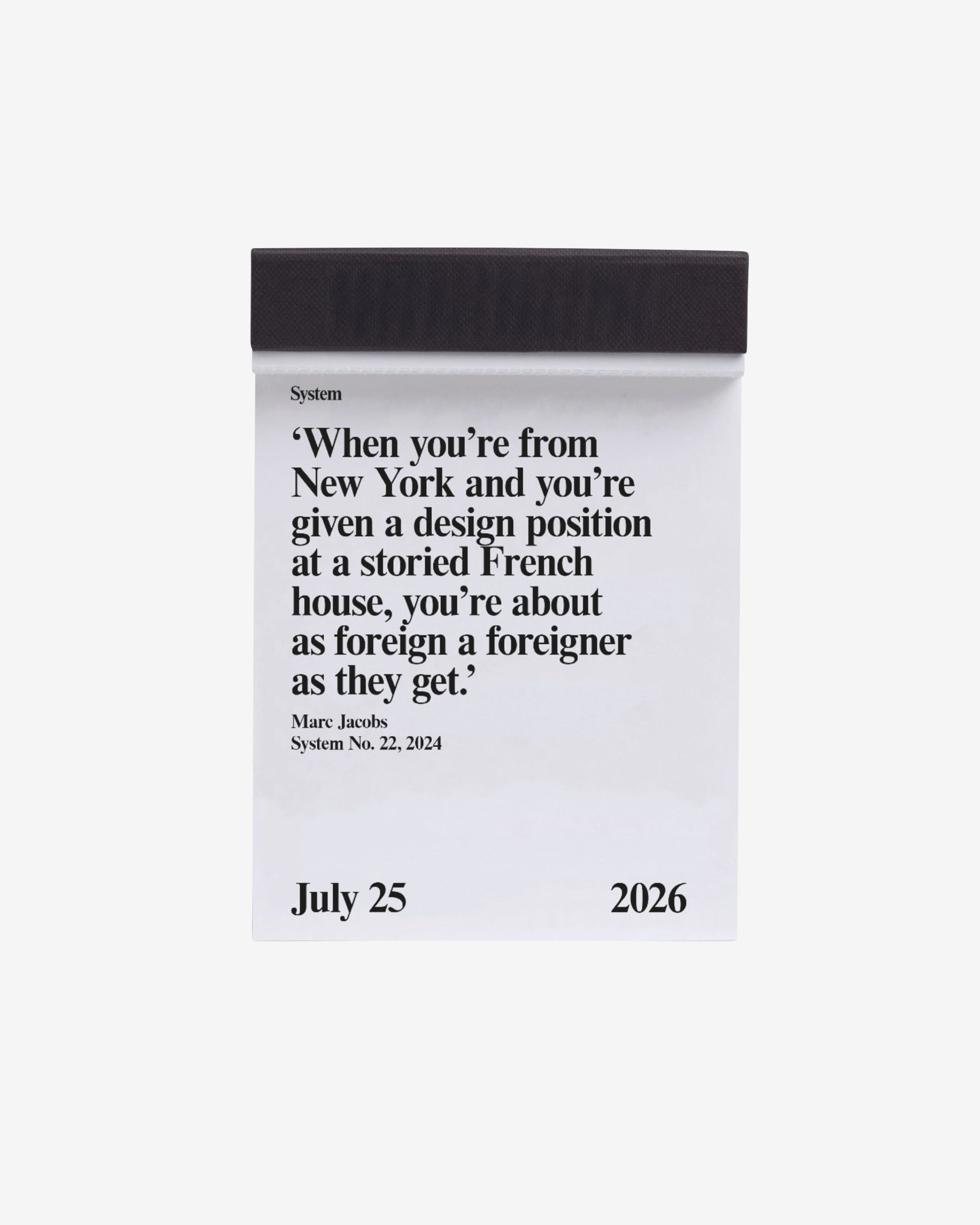 System 2026. The quotable date book. 365 quotes from the pages of System. 2013-2025. The calendar block book features tear-off pages with one quote per day, selected from the System’s archive.