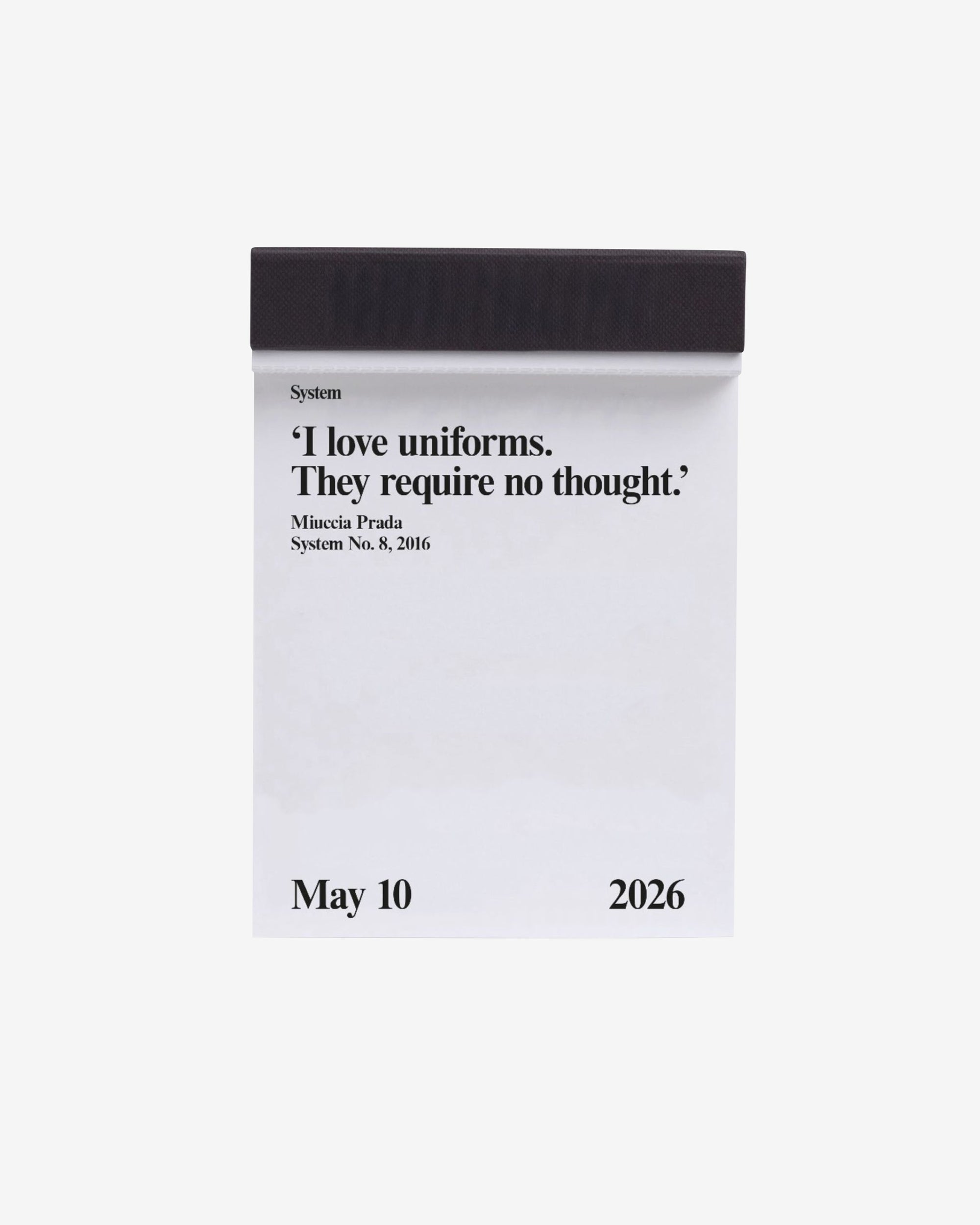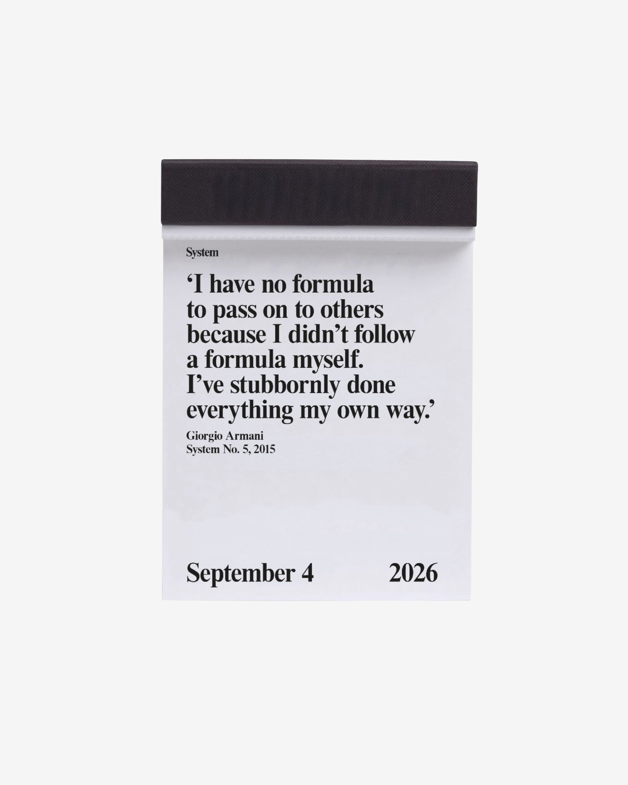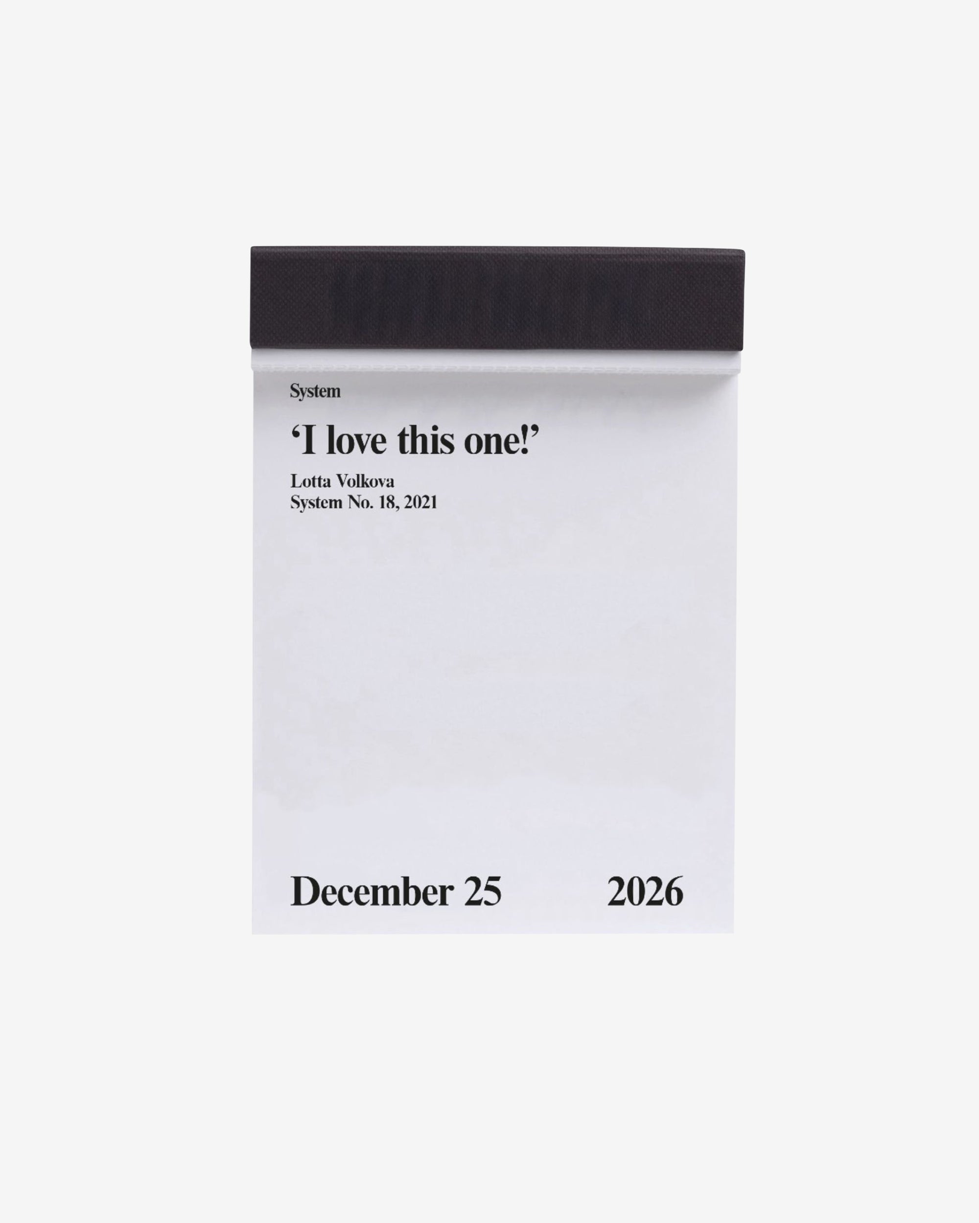 System 2026. The quotable date book. 365 quotes from the pages of System. 2013-2025. The calendar block book features tear-off pages with one quote per day, selected from the System’s archive.