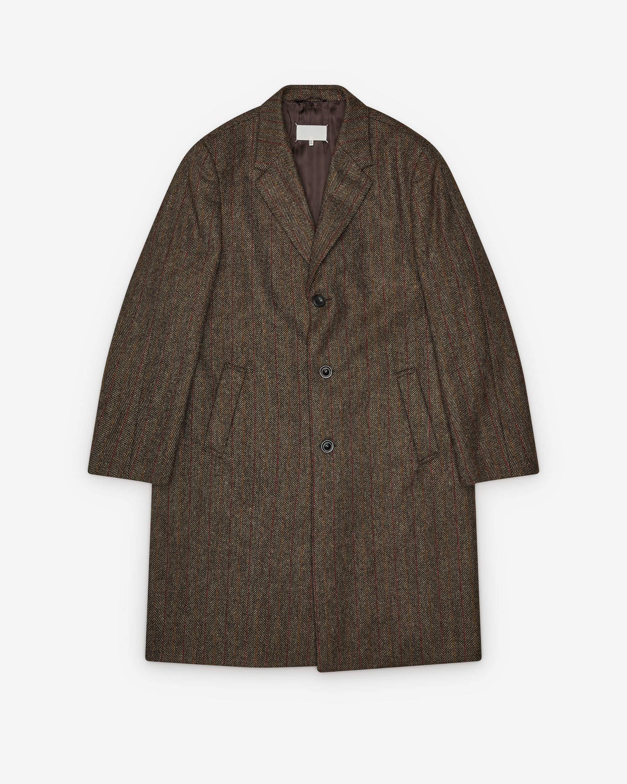 All-over stripeLong lengthButton front closure100% WoolMade in Italy