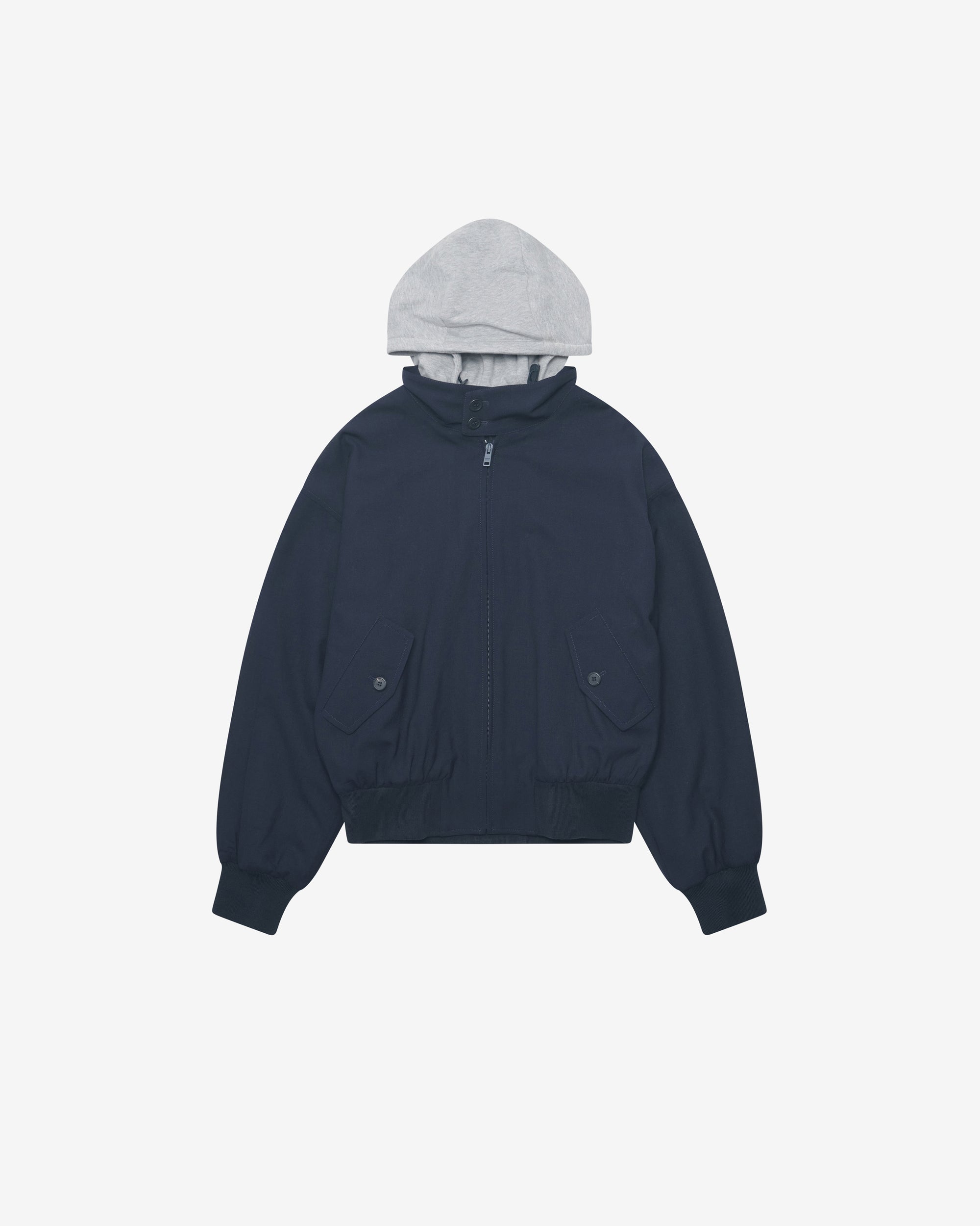 Regular fitHoodedStraight sleeveZipper closurePatch pockets with flap and buttonRibbed knit cuffDrop shoulderStraight ribbed knit hemLinedFabric triangle logoThe creases are created by pressing the finished garment.100% Virgin WoolMade in Italy