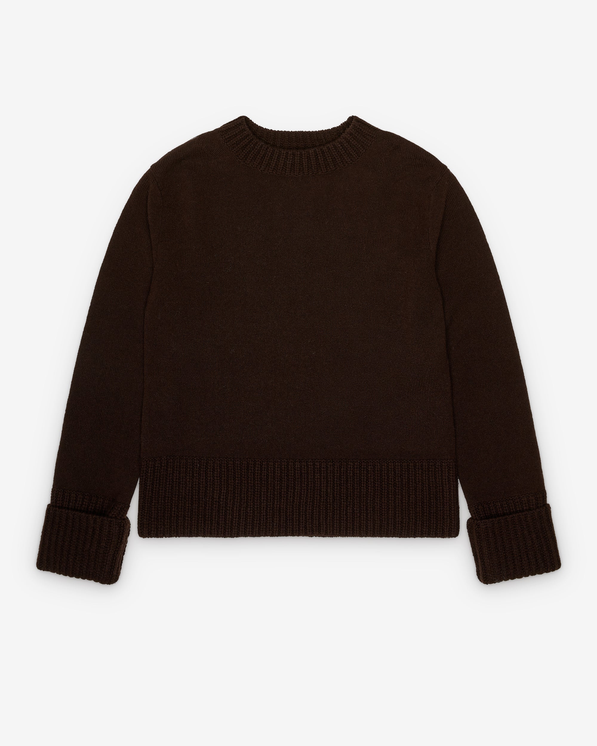 Ribbed trimRound neckFolded cuffs100% WoolMade in China