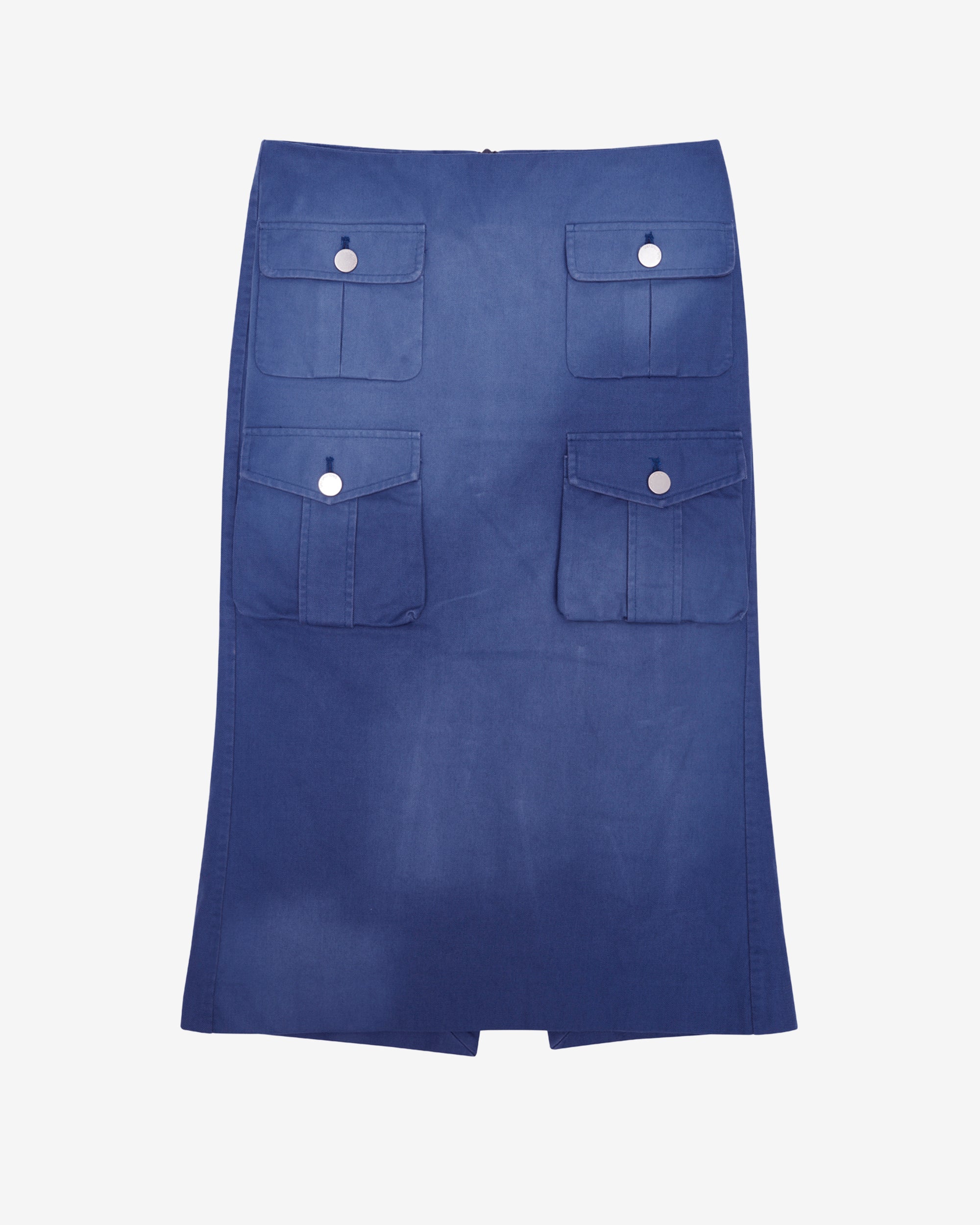 Multi-pocket utility designHigh waistFlared silhouetteMidi lengthBack zip closure