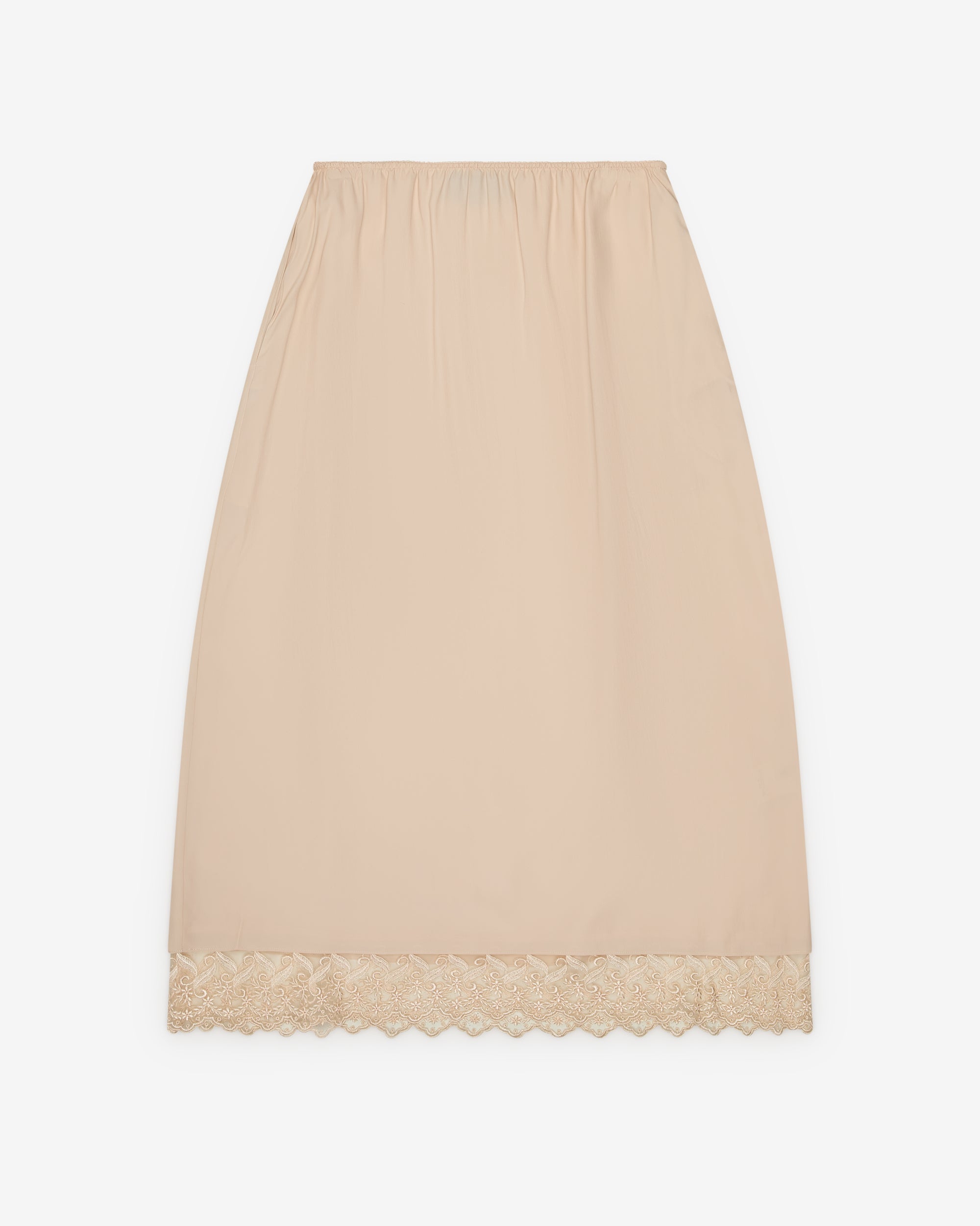 Mid lengthElasticated waistbandLace trim at hem73% Acetate, 27% SilkMade in Portugal
