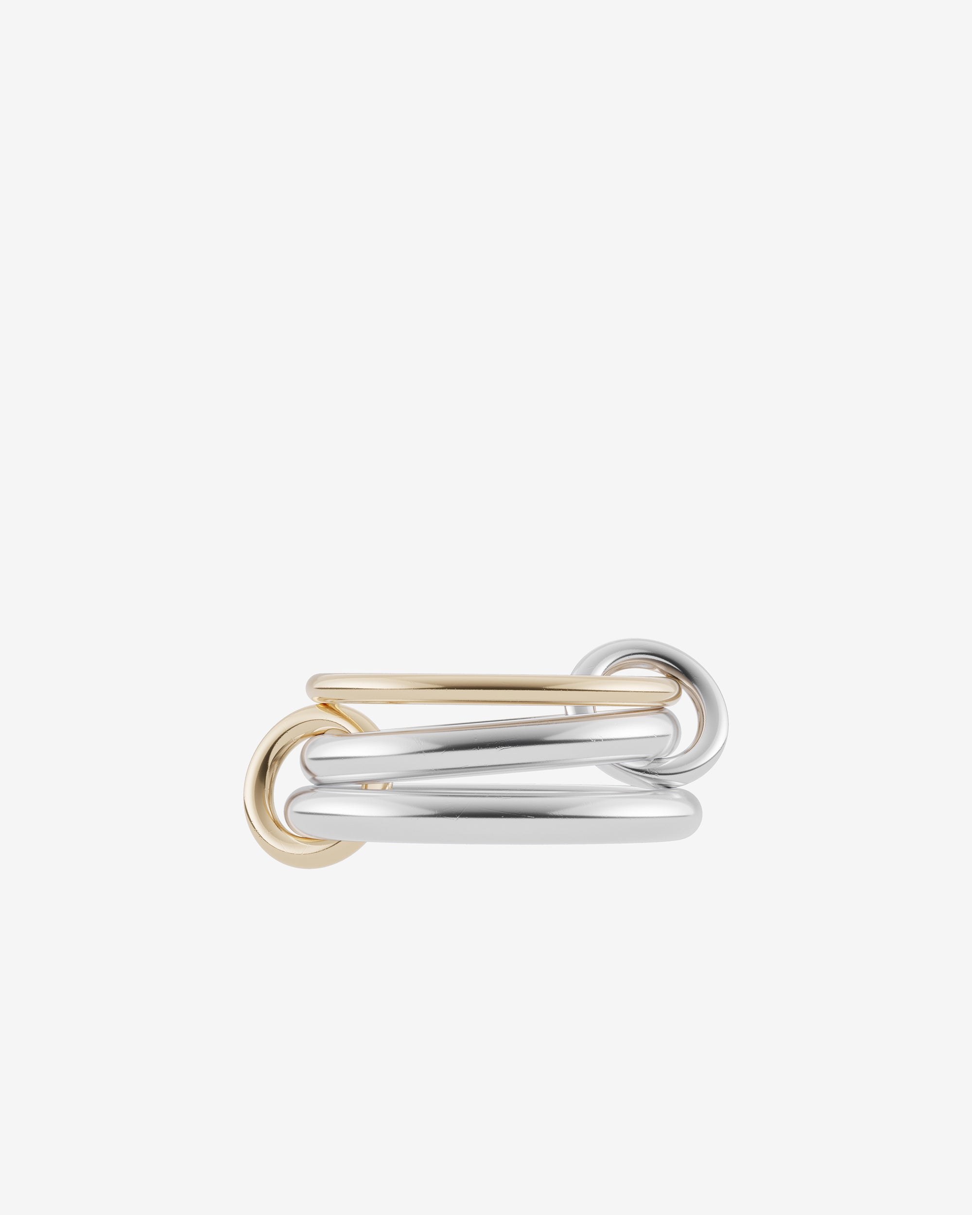 Take on the bold, fearless Scorpio nature with a trio of rich 18k gold and .925 sterling silver bands, each linked by orbiting connectors. Each Scorpio presents a unique silhouette and features multi-gauged bands in a mix of lustrous metals that can be stacked or worn across multiple fingers. Each Scorpio is individually handmade in Los Angeles.