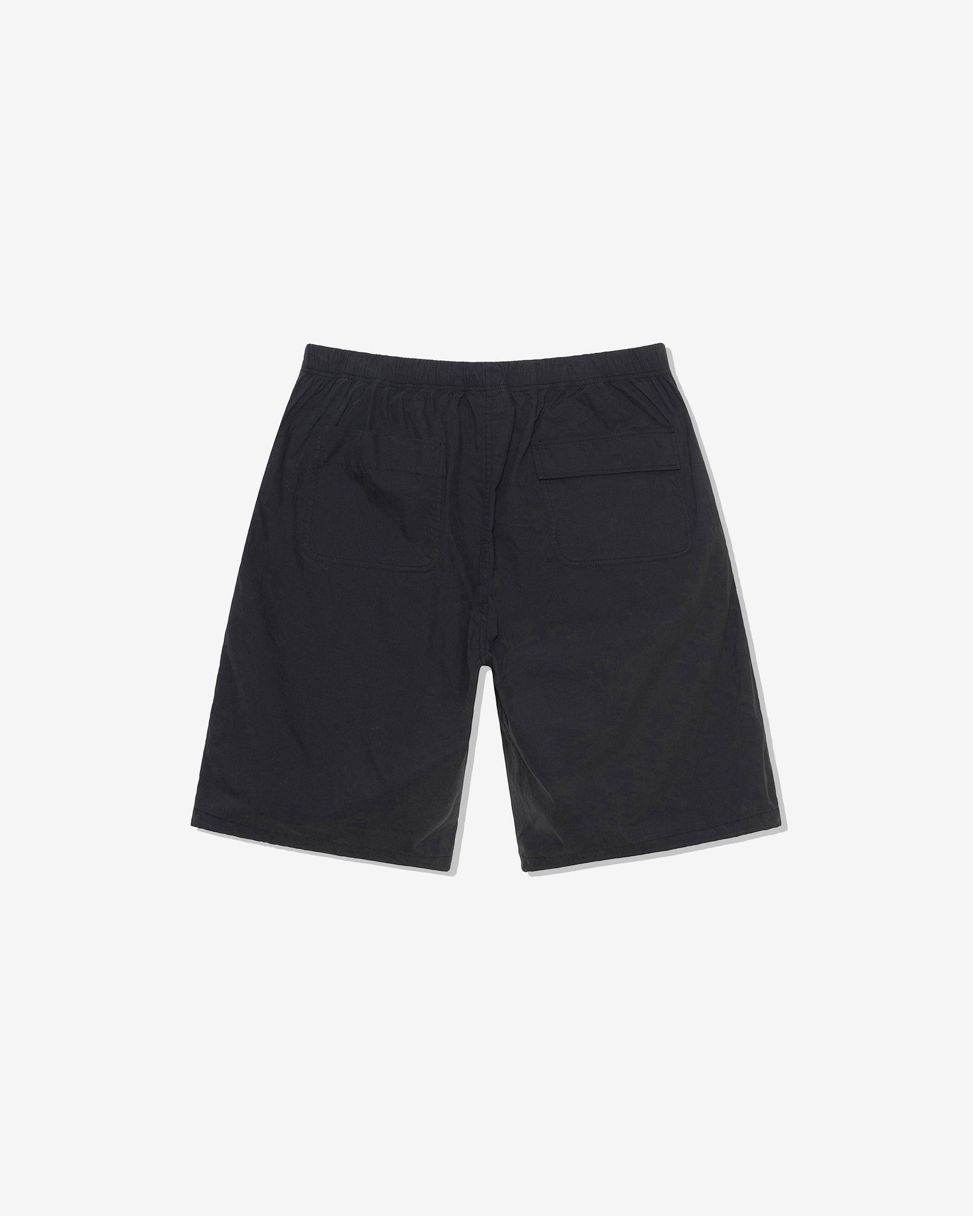 Oversized military-inspired over short in a washed nylon cotton blend. Features interior drawcords at the waist and hems, flap pockets at the sides and rear patch pockets. Stüssy basic stock logo embroidered at the left leg.