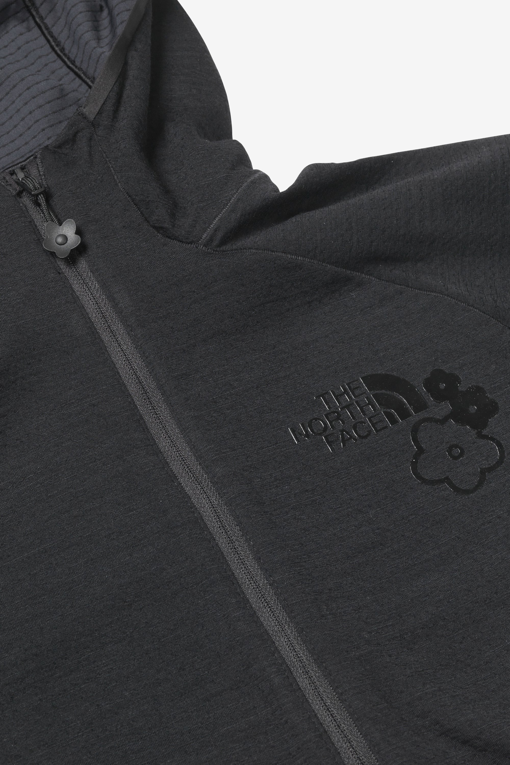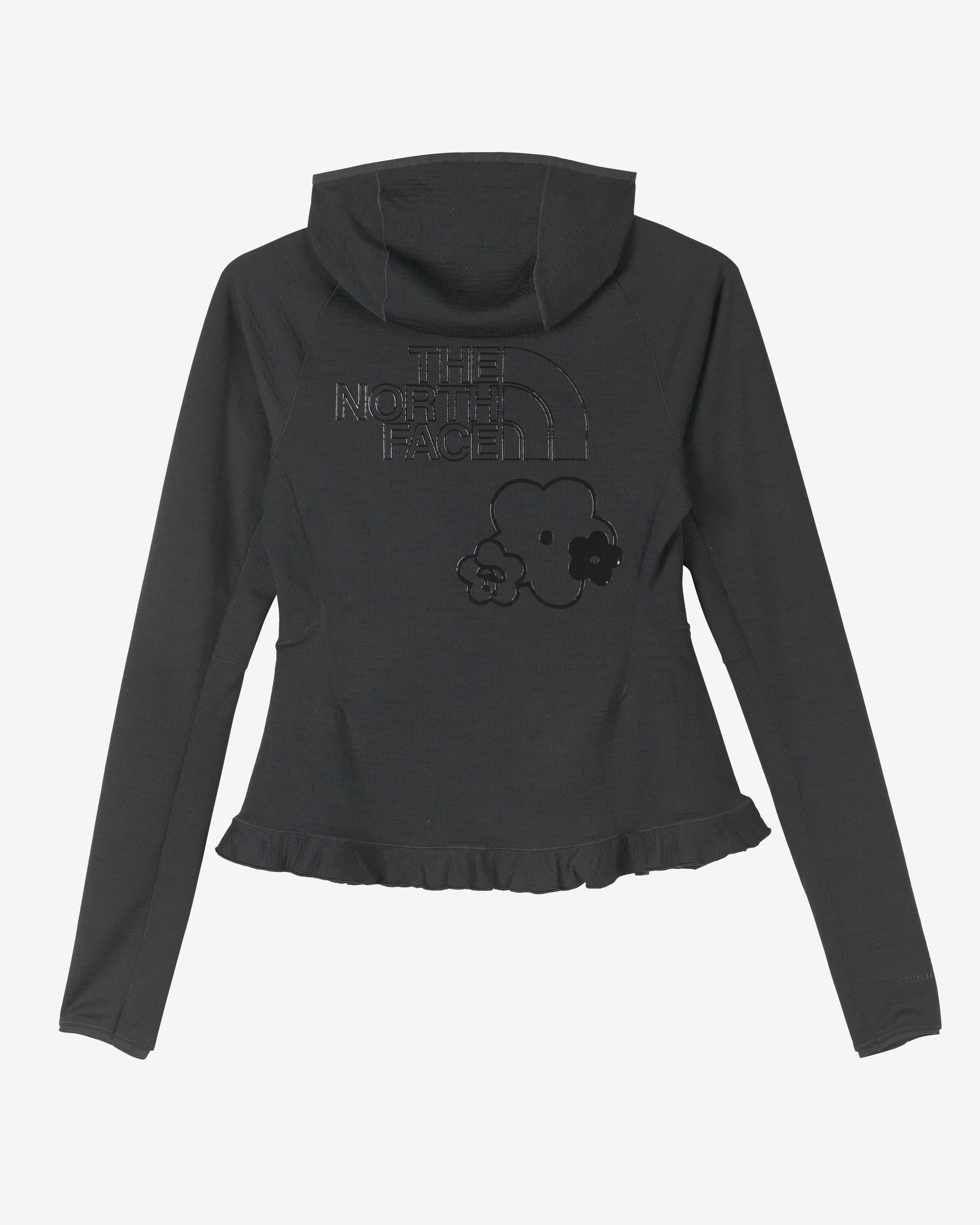 Subtle romantic detailing contrasts the technical functionality, bringing the elegance of Cecilie Bahnsen to the heart of the mountain-ready wardrobe.