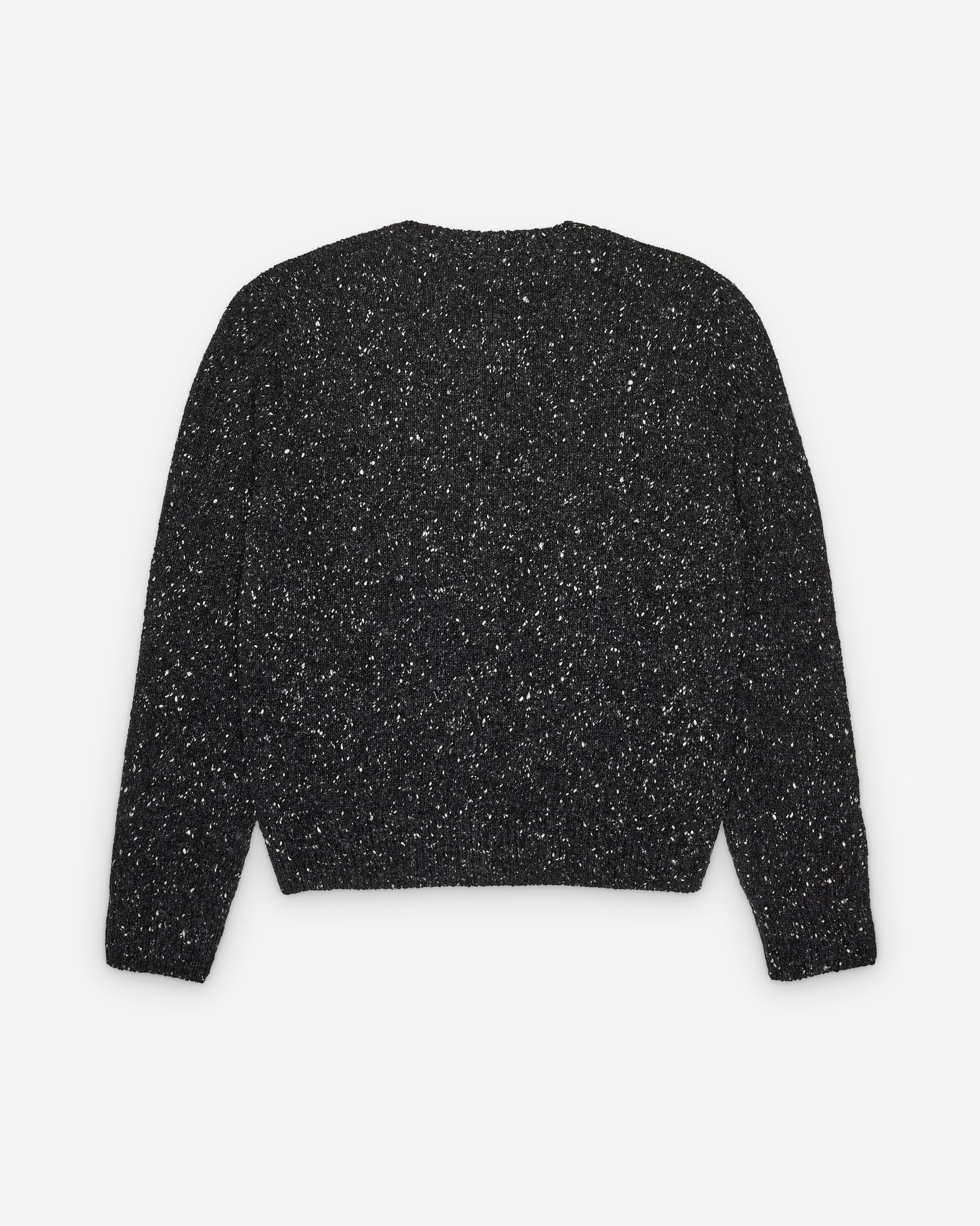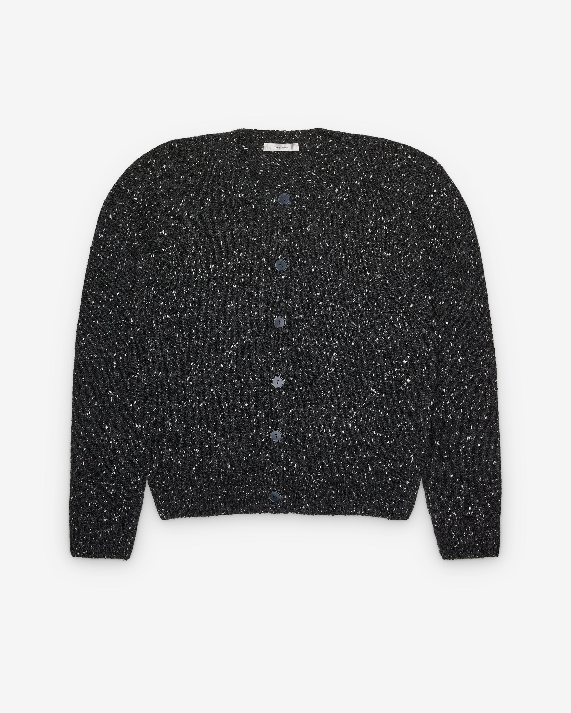Classic crewneck cardiganSpeckled midweight cashmereSlightly cropped fitRibbed neckline, cuffs, and hemFront button closureCashmereMade in Italy