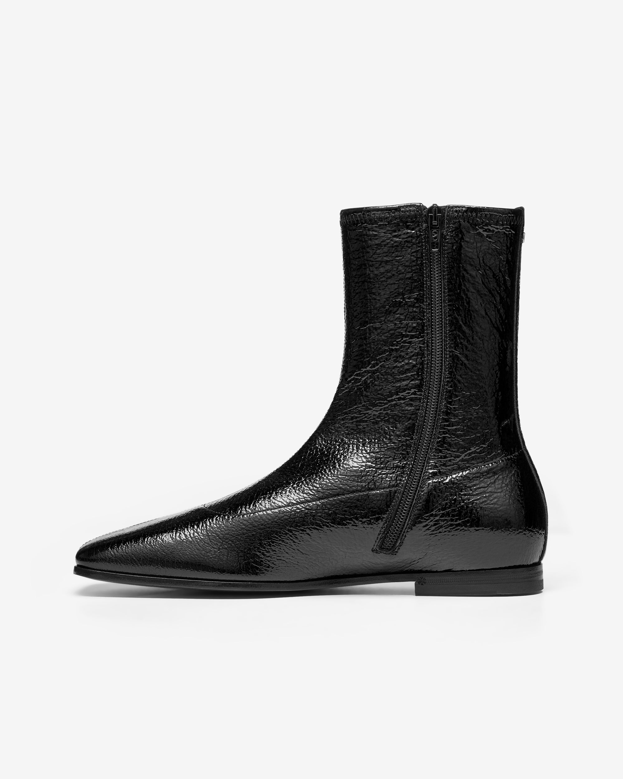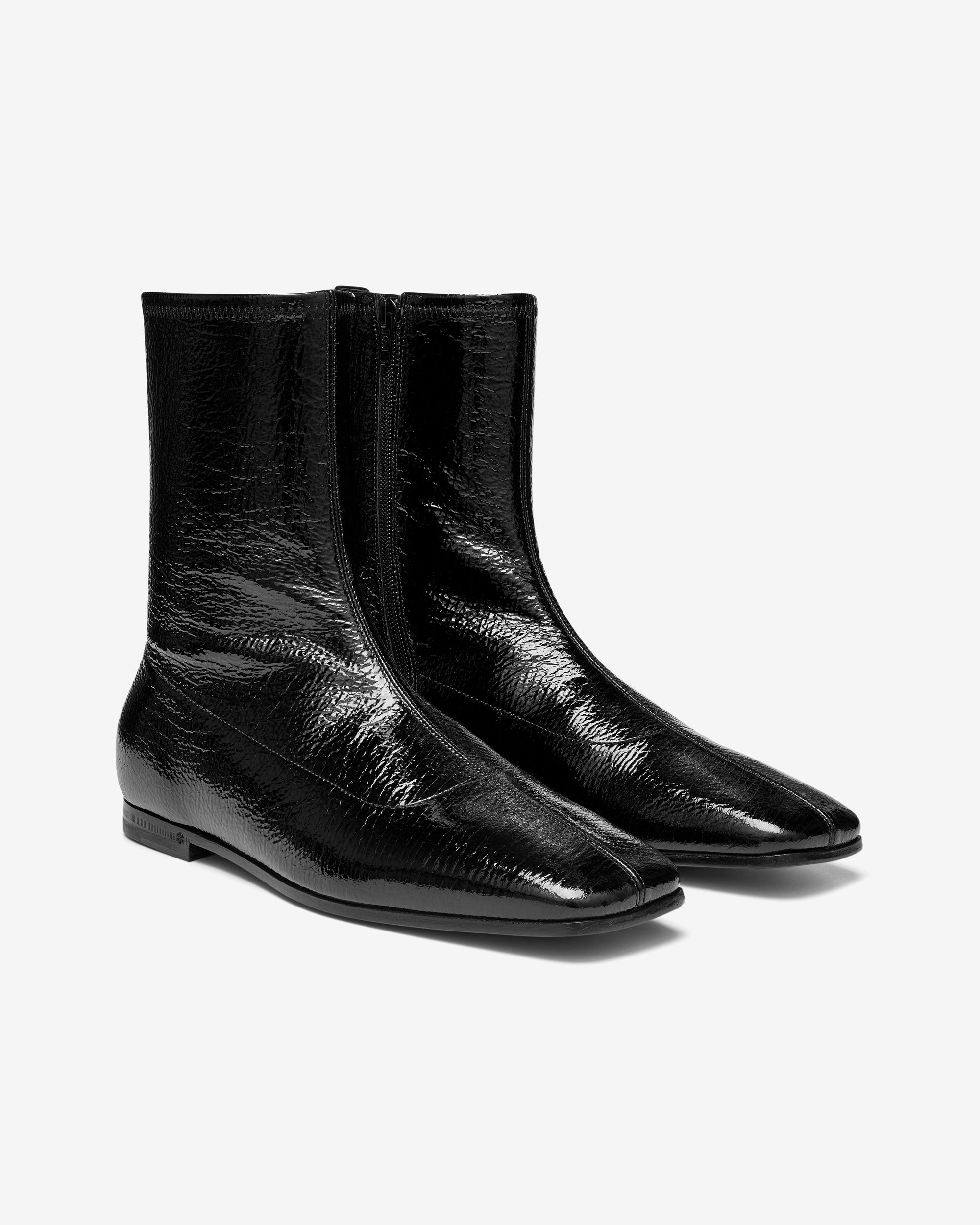 Ankle heightPatent finishSquare toeLeatherMade in Italy