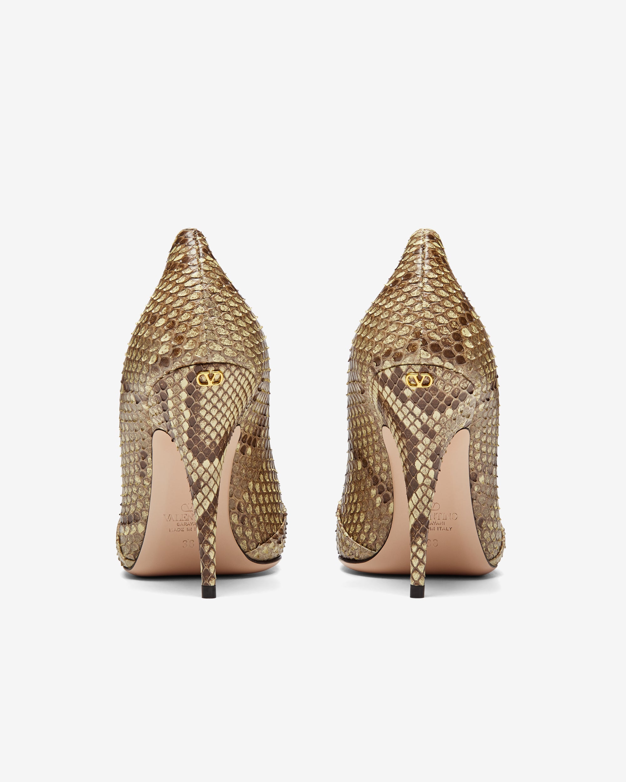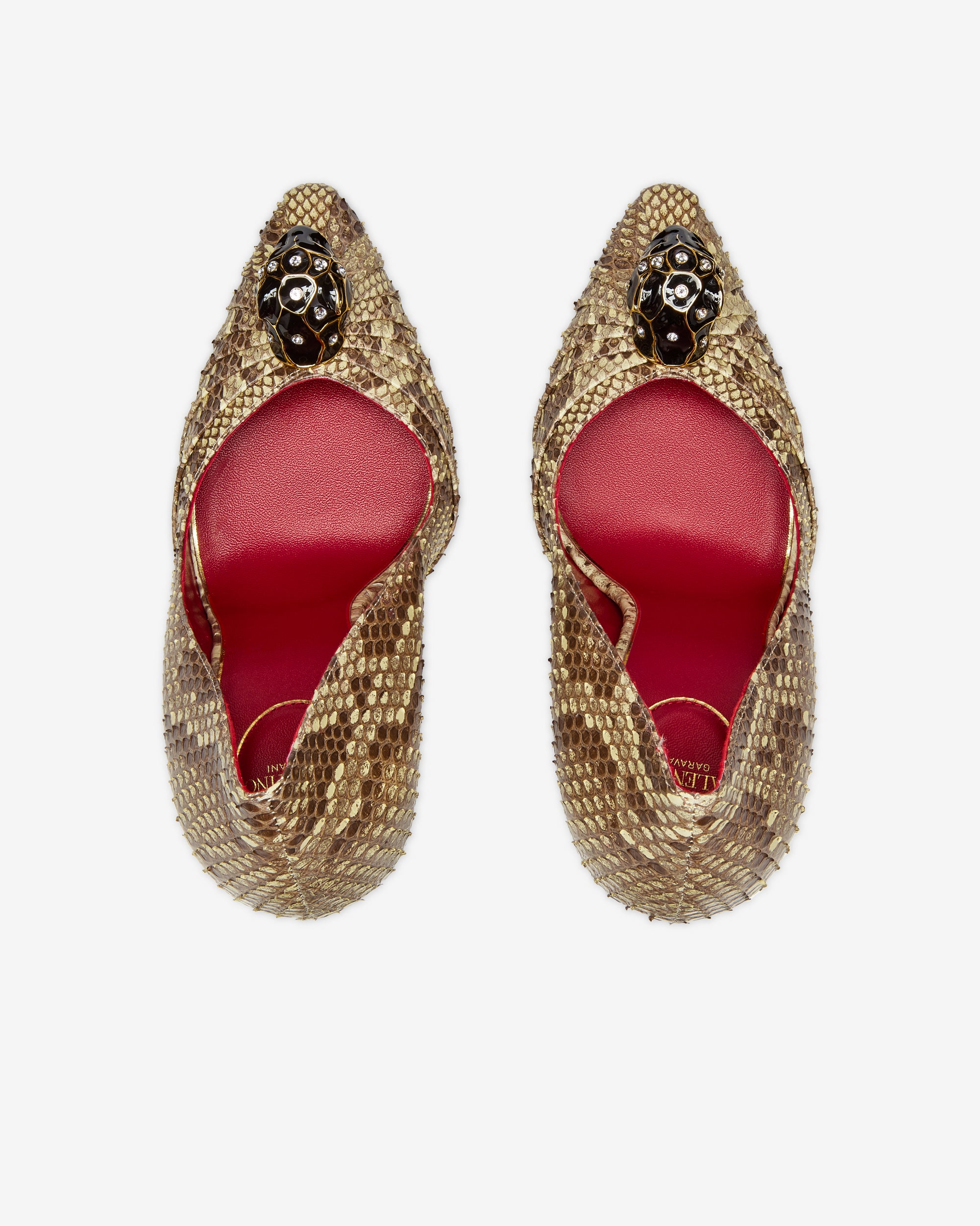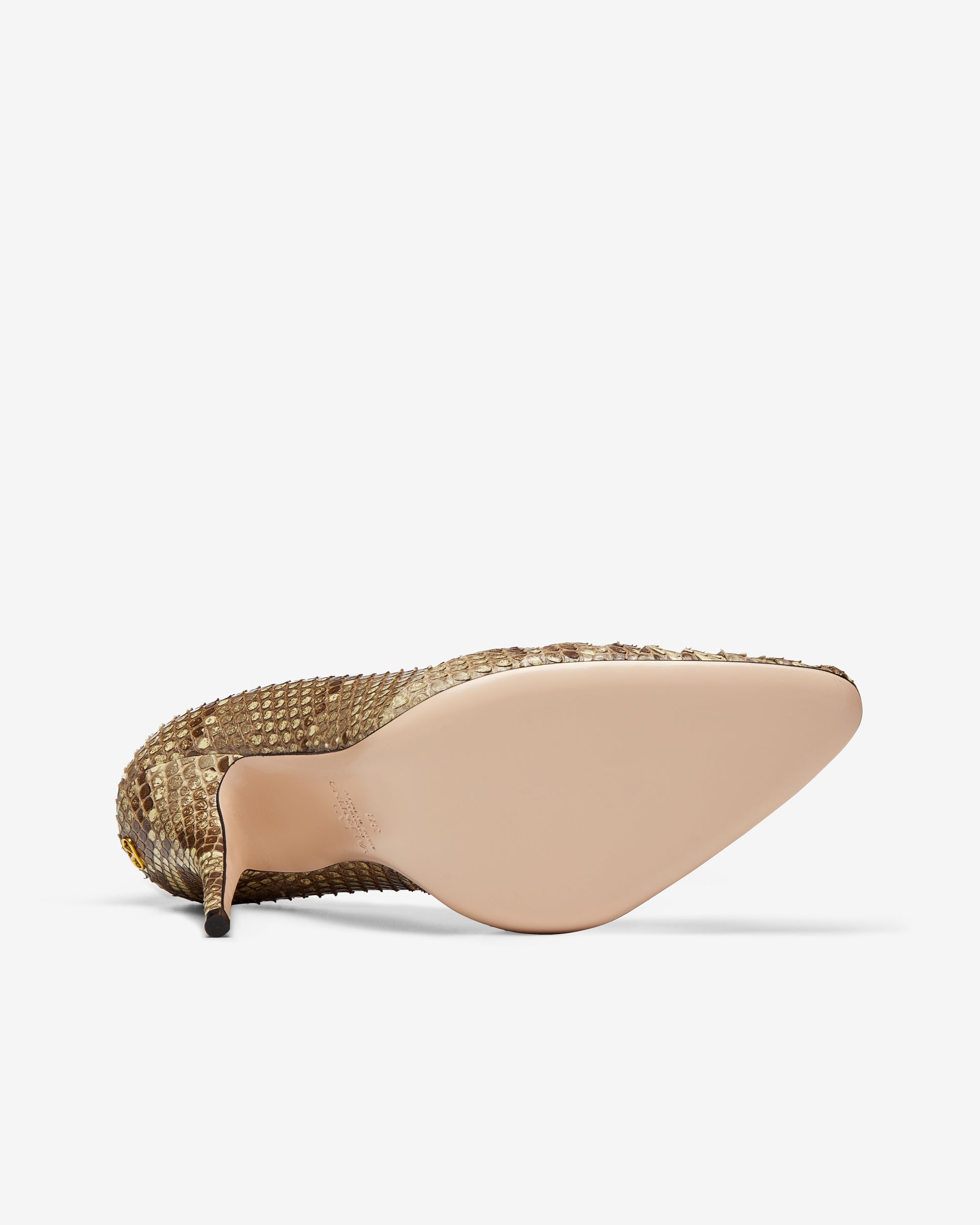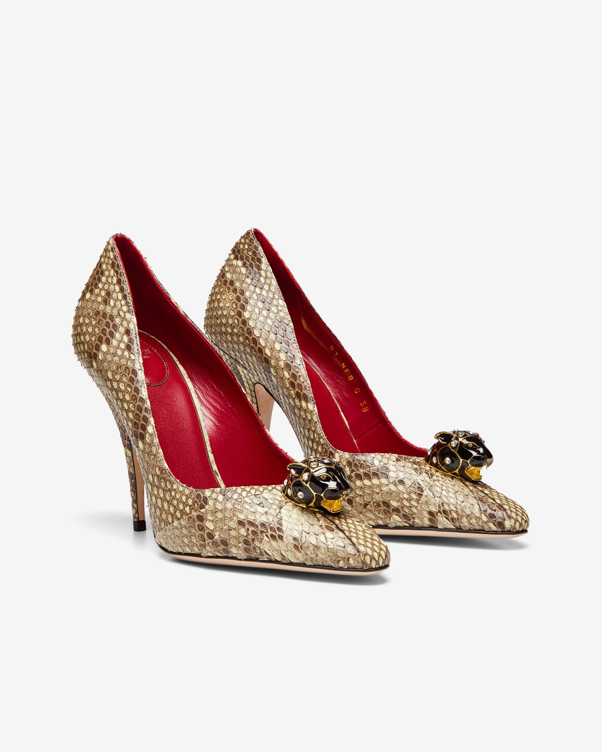 Stiletto heelSnakeskin printPointed toePanther embellishment on toeLeatherMade in Italy