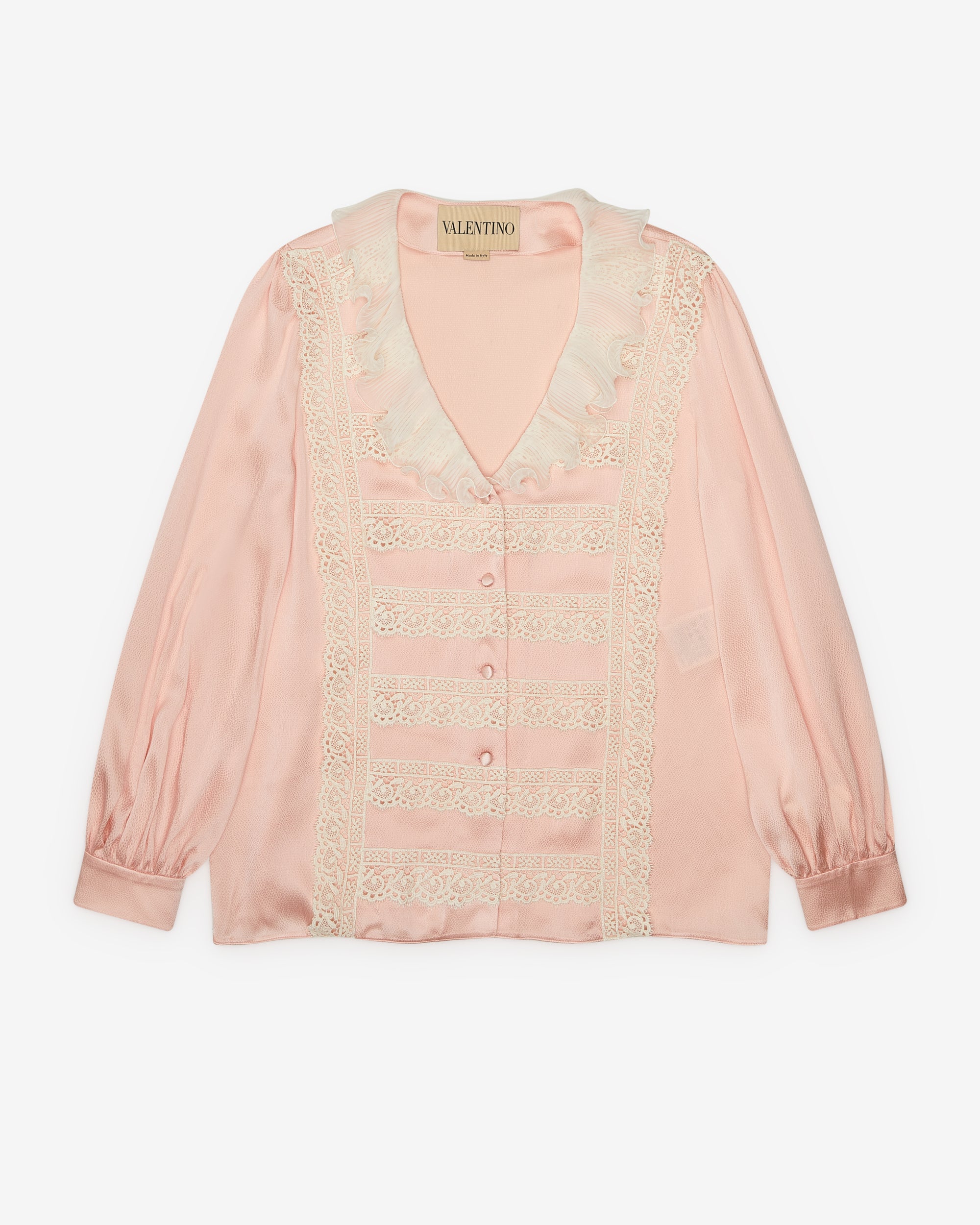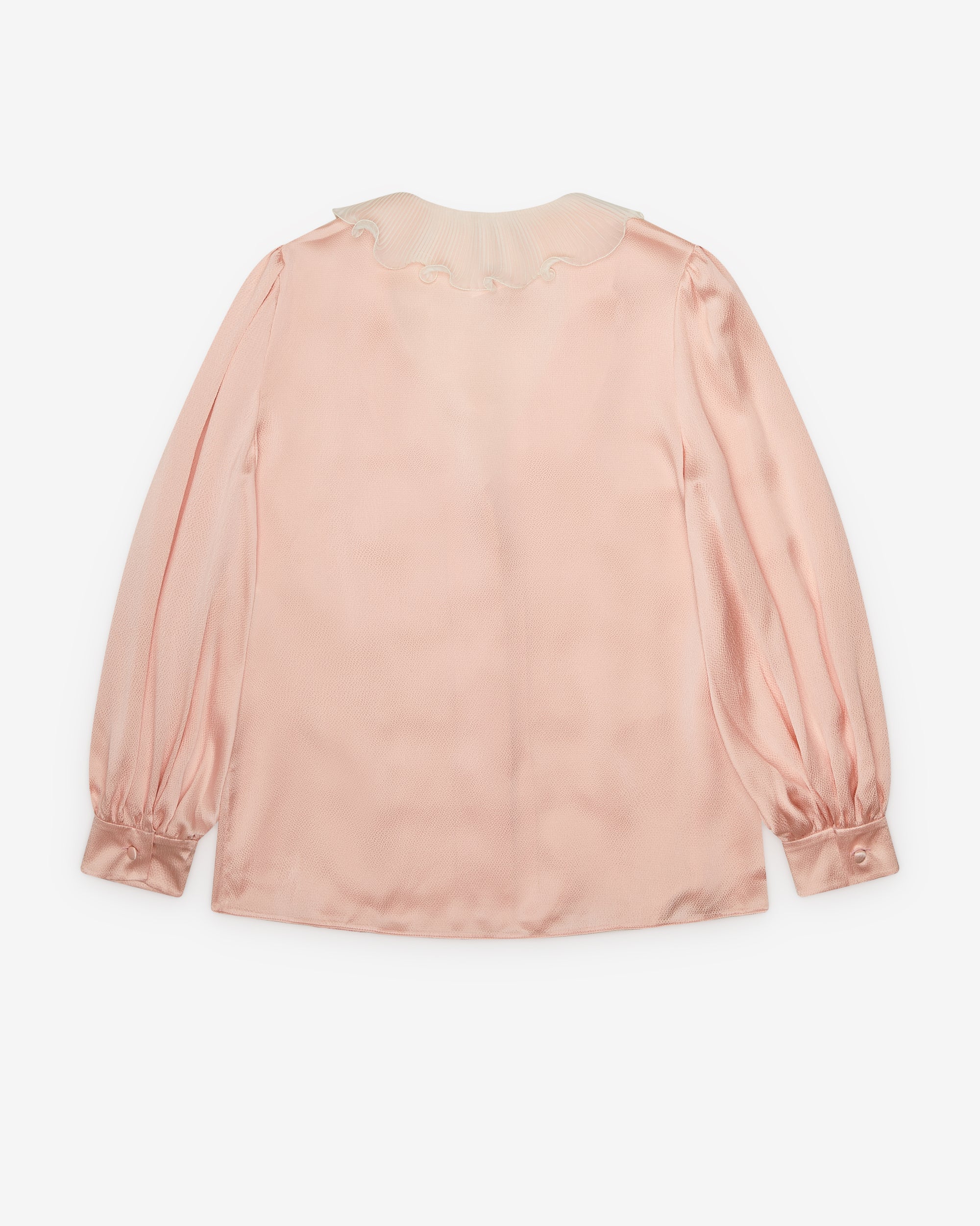 Chiffon ruffle detail on the necklineFront button closureHammered silk100% SilkMade in Italy