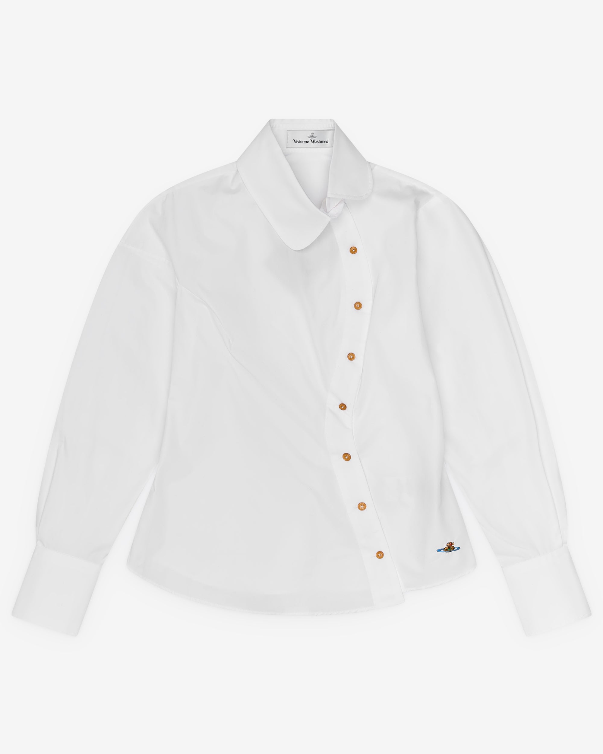 Asymmetric button closureCollarEmbroidered logo100% CottonMade in Italy