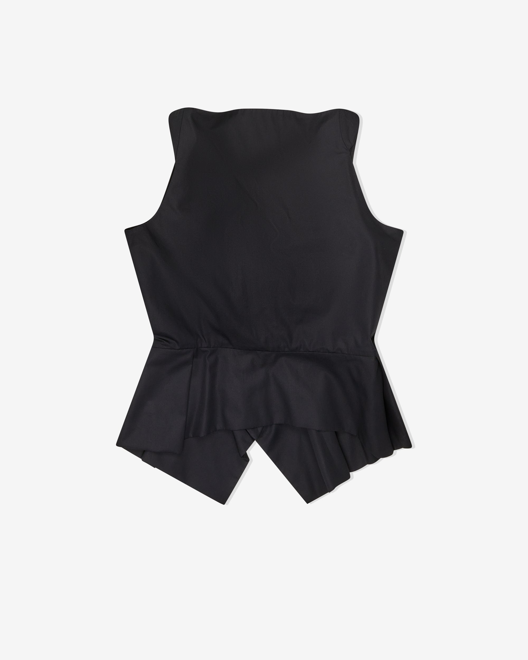 Archival silhouetteOrigami-like foldsButton front fasteningSweetheart necklineFitted bodicePleated waist extension100% CottonMade in Italy