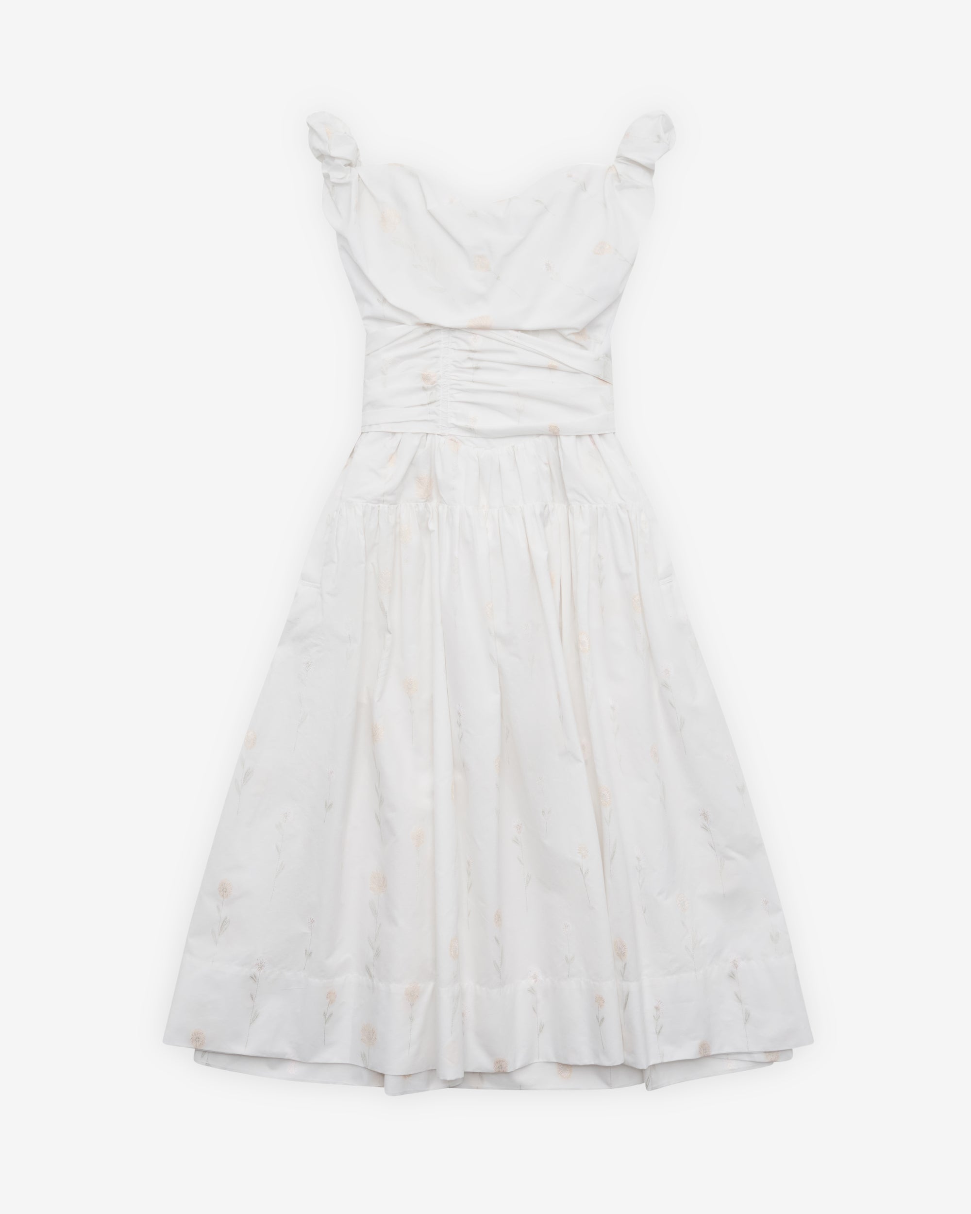 Features shoulder strapsFits true to sizeFull-bodied skirtConcealed zip fasteningPleat detailingSleevelessDraped necklineDarting details93% Cotton, 7% ViscoseMade in Italy