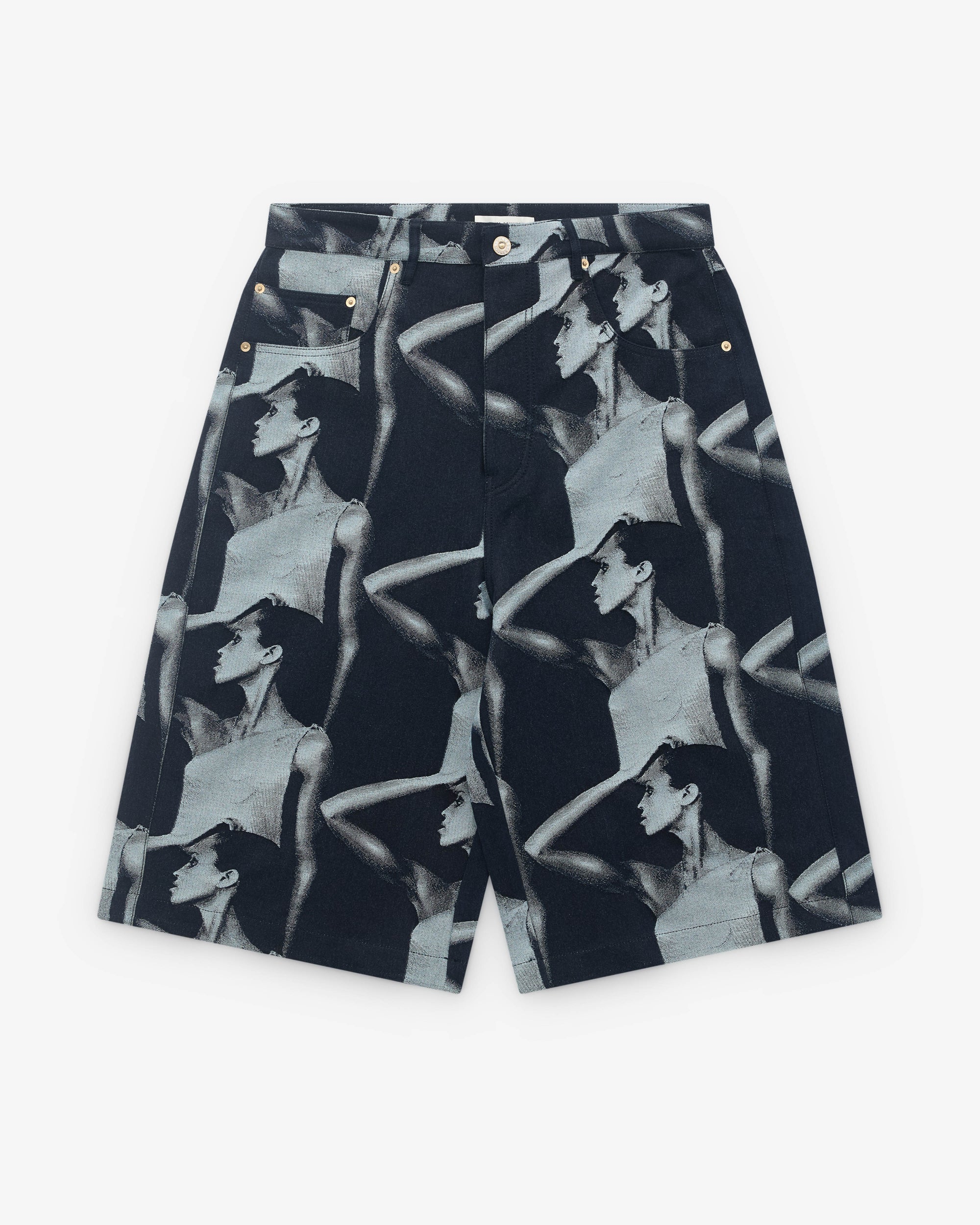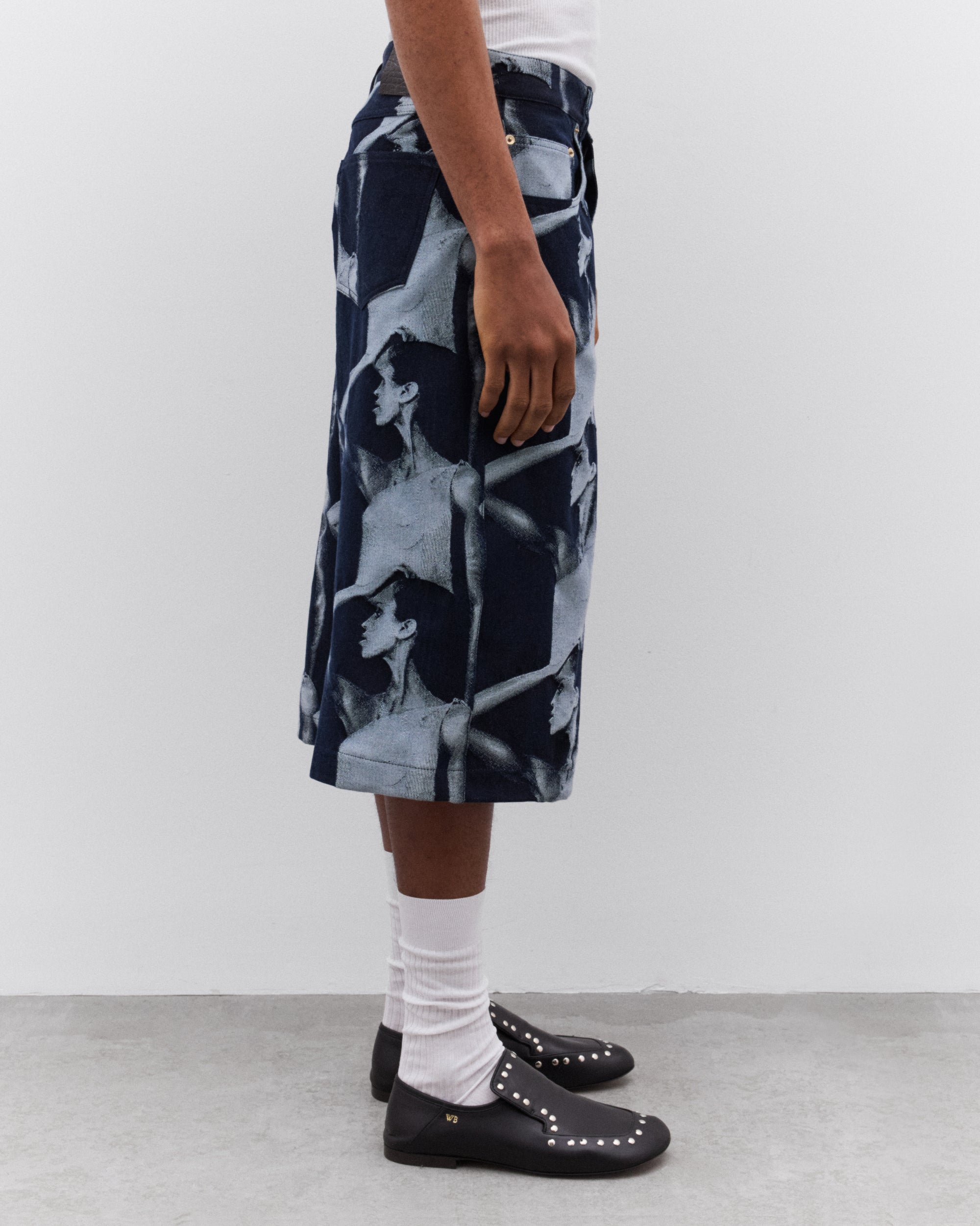 High waistButton and fly fastening Five pocket constructionAll over digital printRear embossed leather patch
