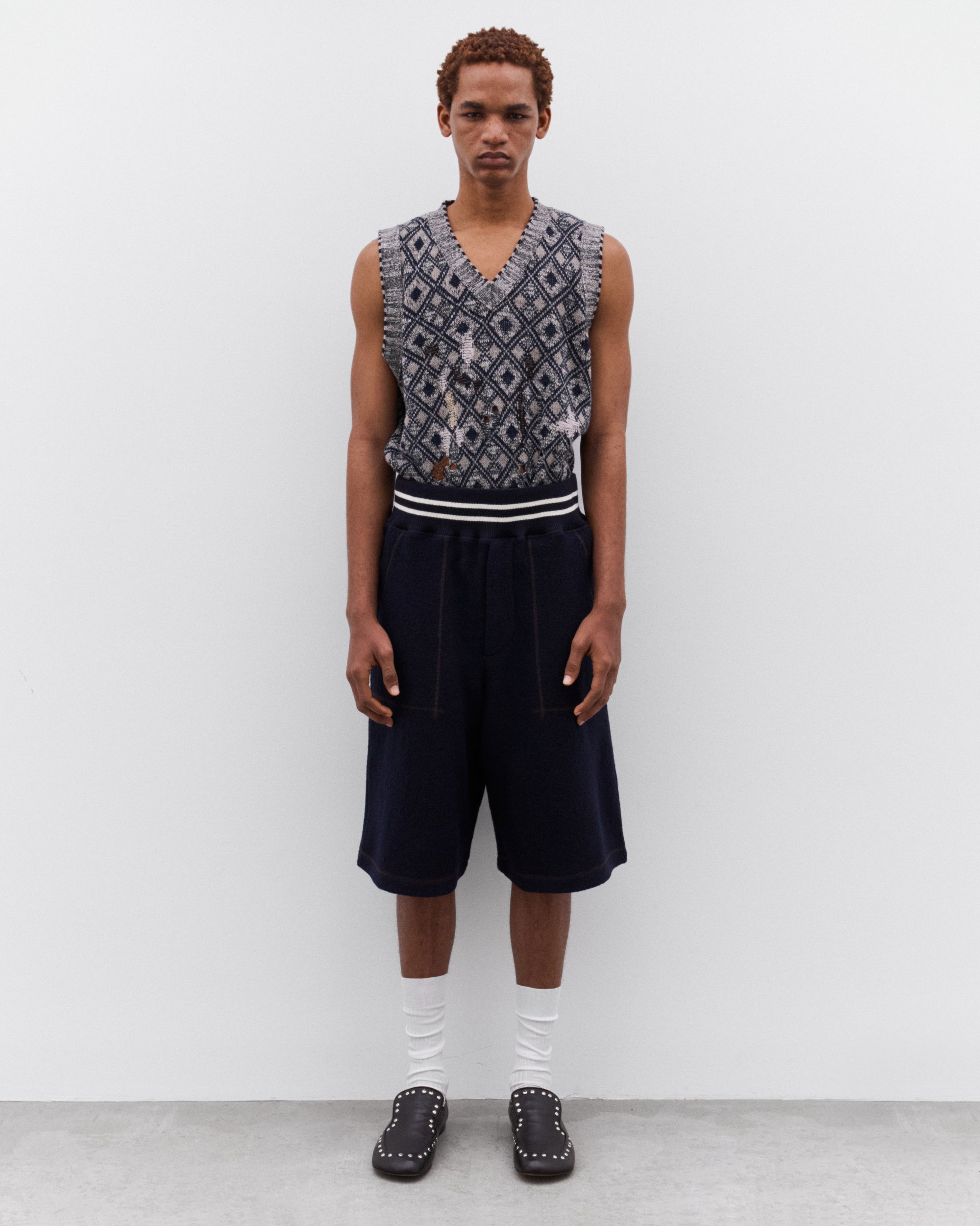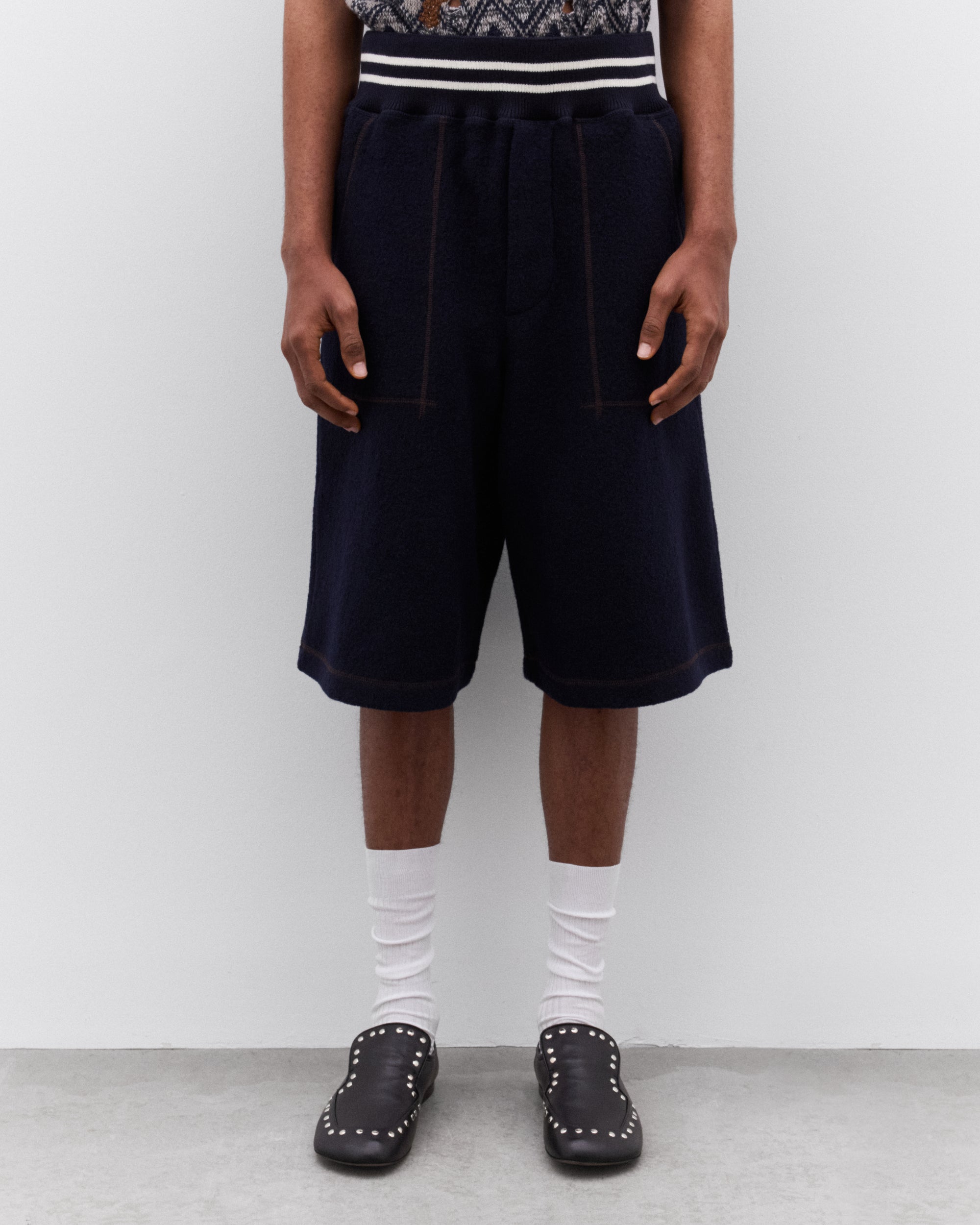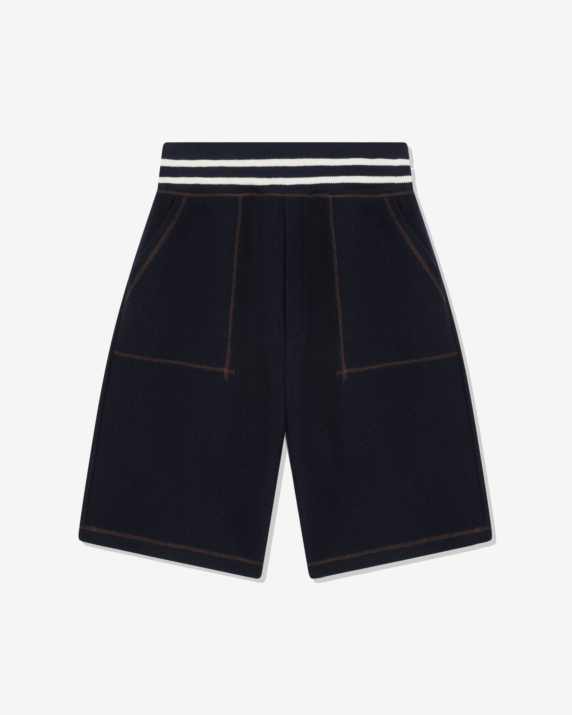 Elasticated, striped waistbandPatch pocketsRear patch pocket with logo motifContrast overlocked top-stitching