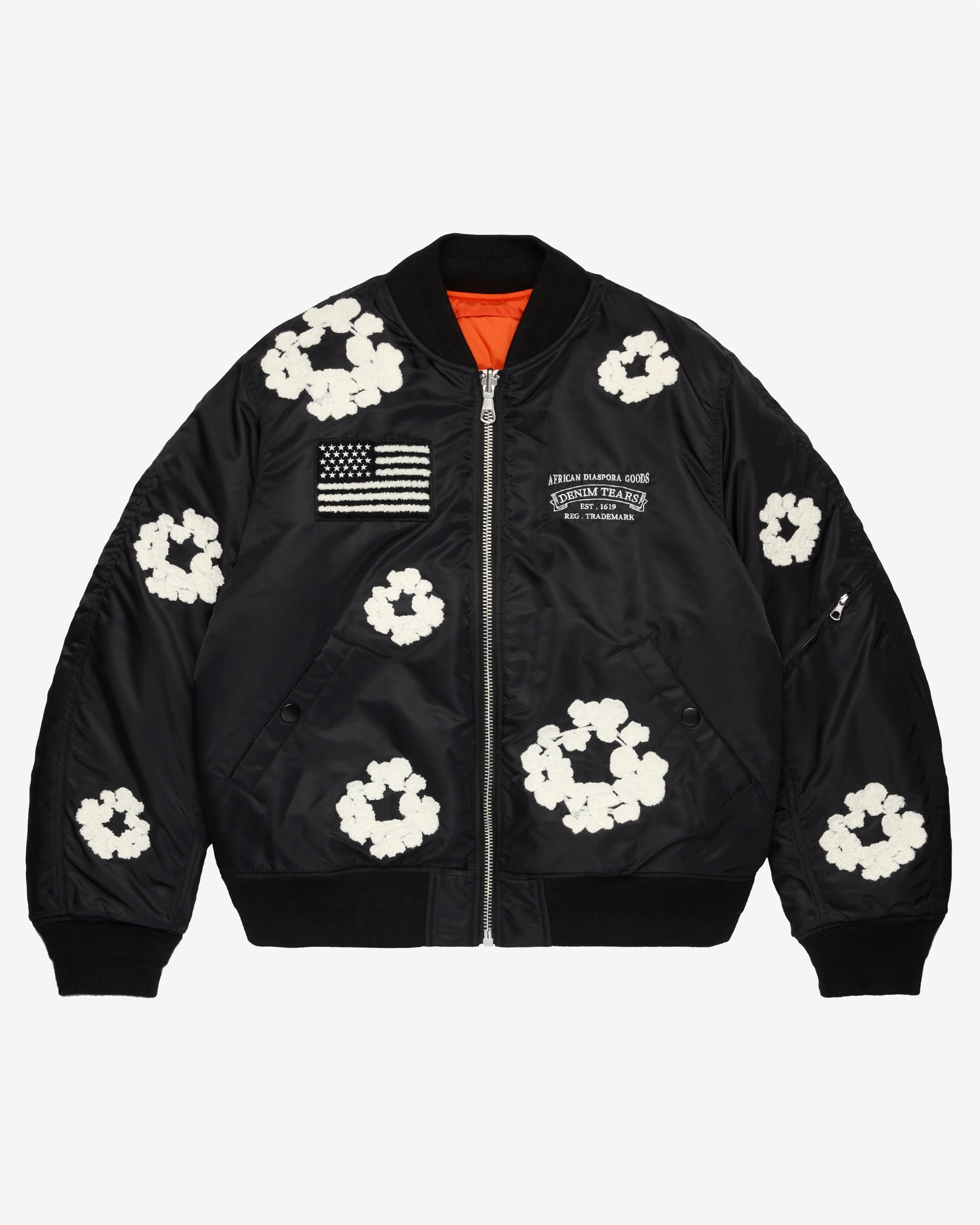 Classic MA-1 shapeZip front closureReversibleCotton wreath motif throughoutPocket on armTwo front pockets