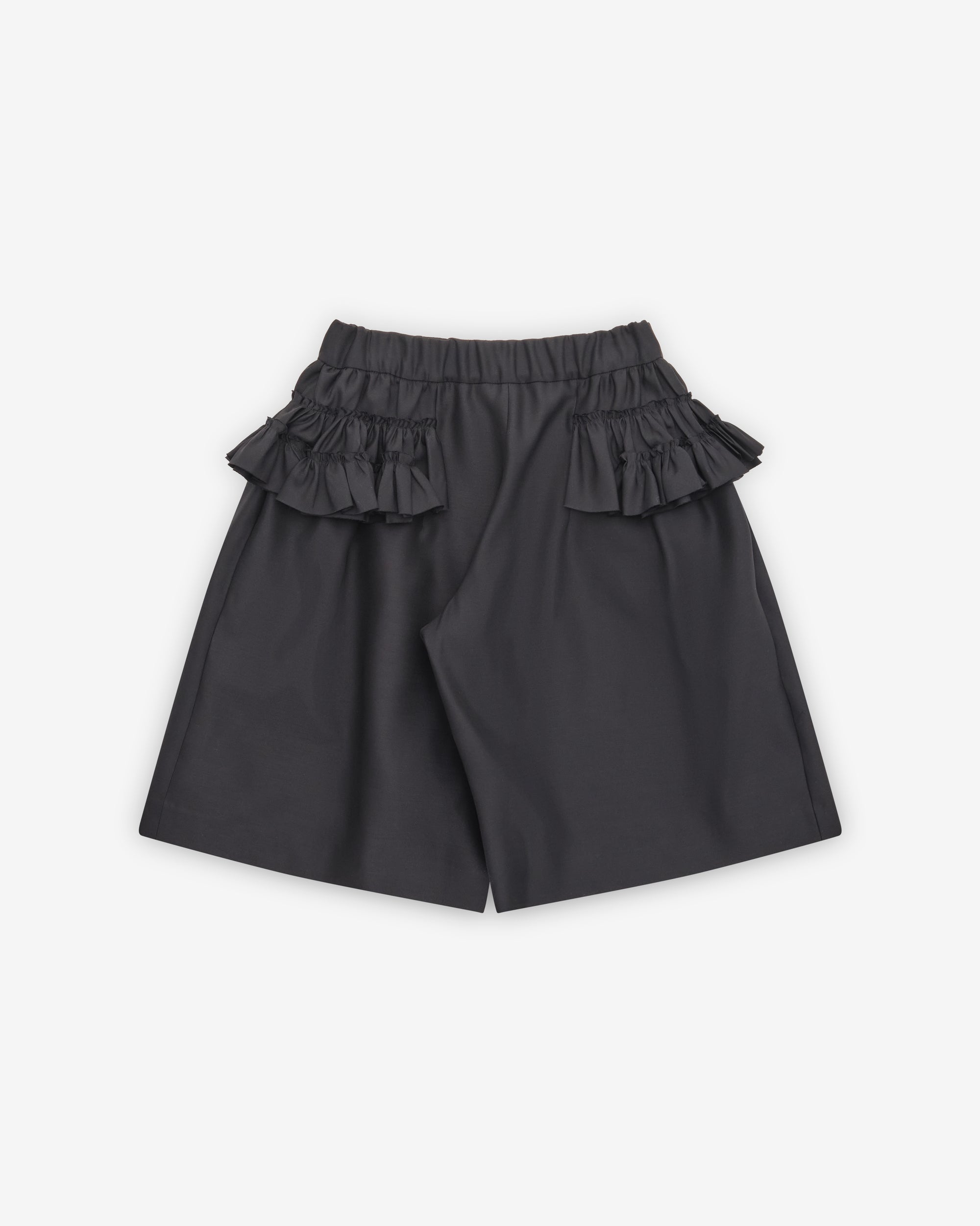 Bermuda lengthElastic waistbandRuffle details71% Wool, 29% SilkMade in Bulgaria