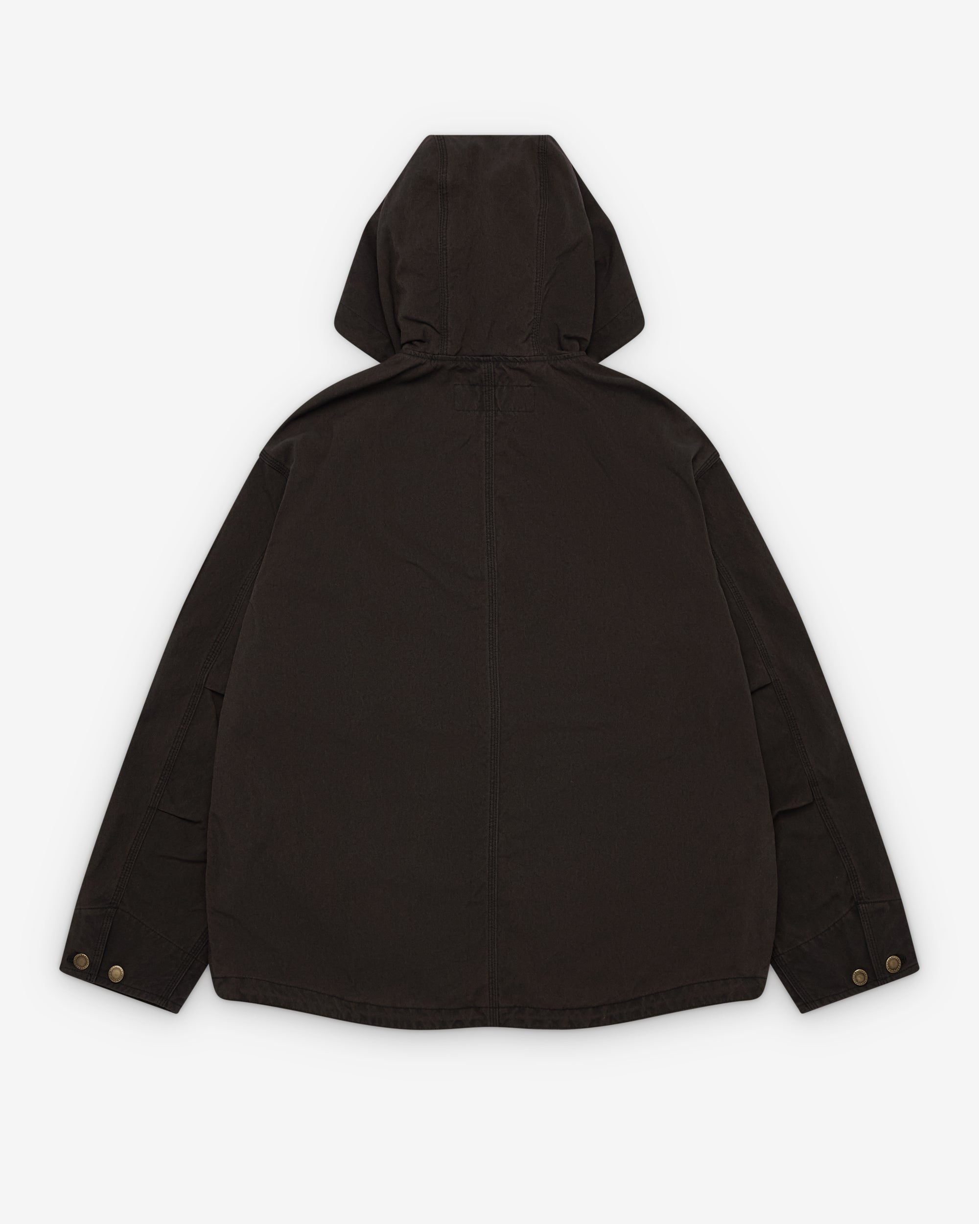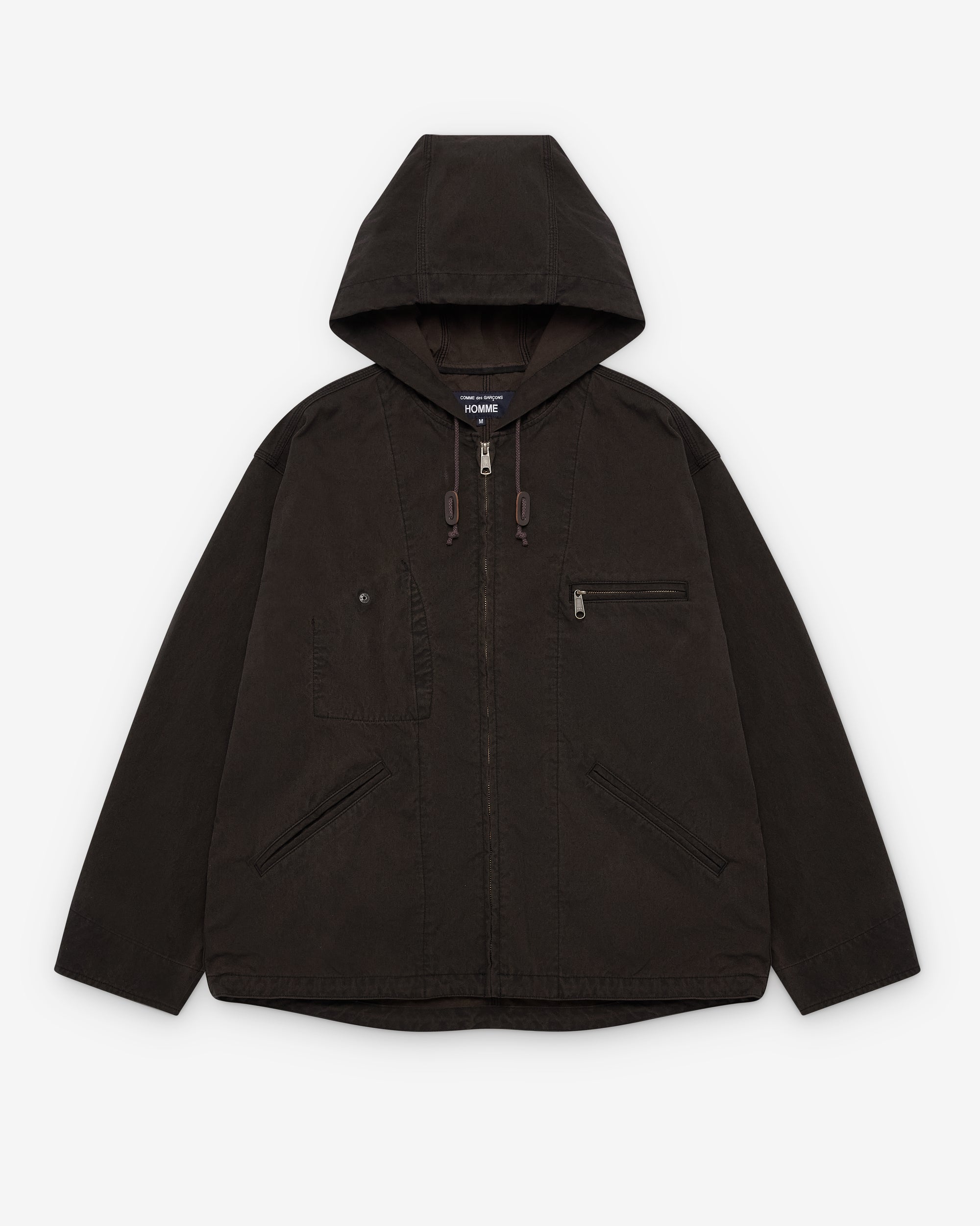 Toggle drawstring hoodZip front closureFront pocketsGarment washed fabric Triple stitched Internal zip pockets