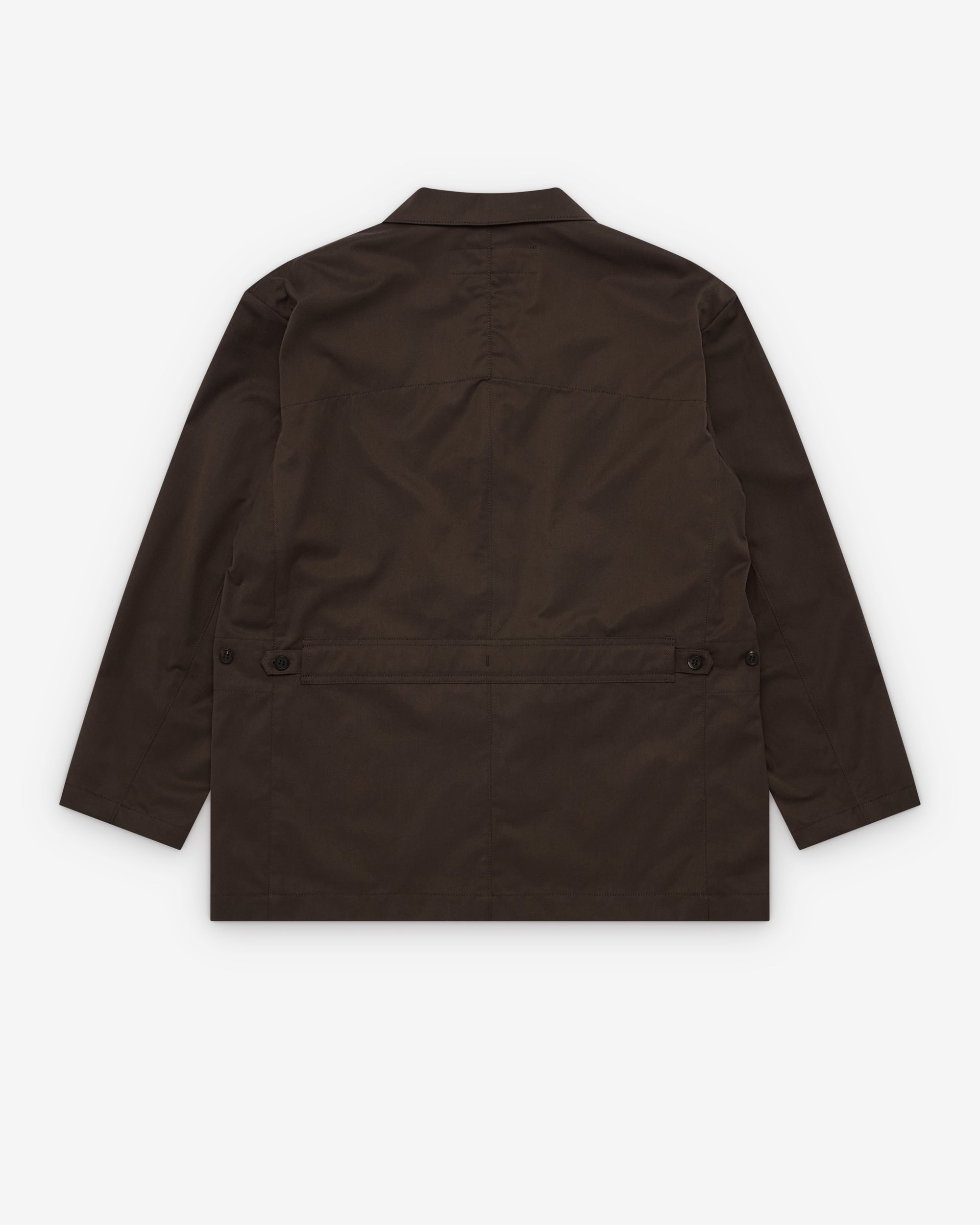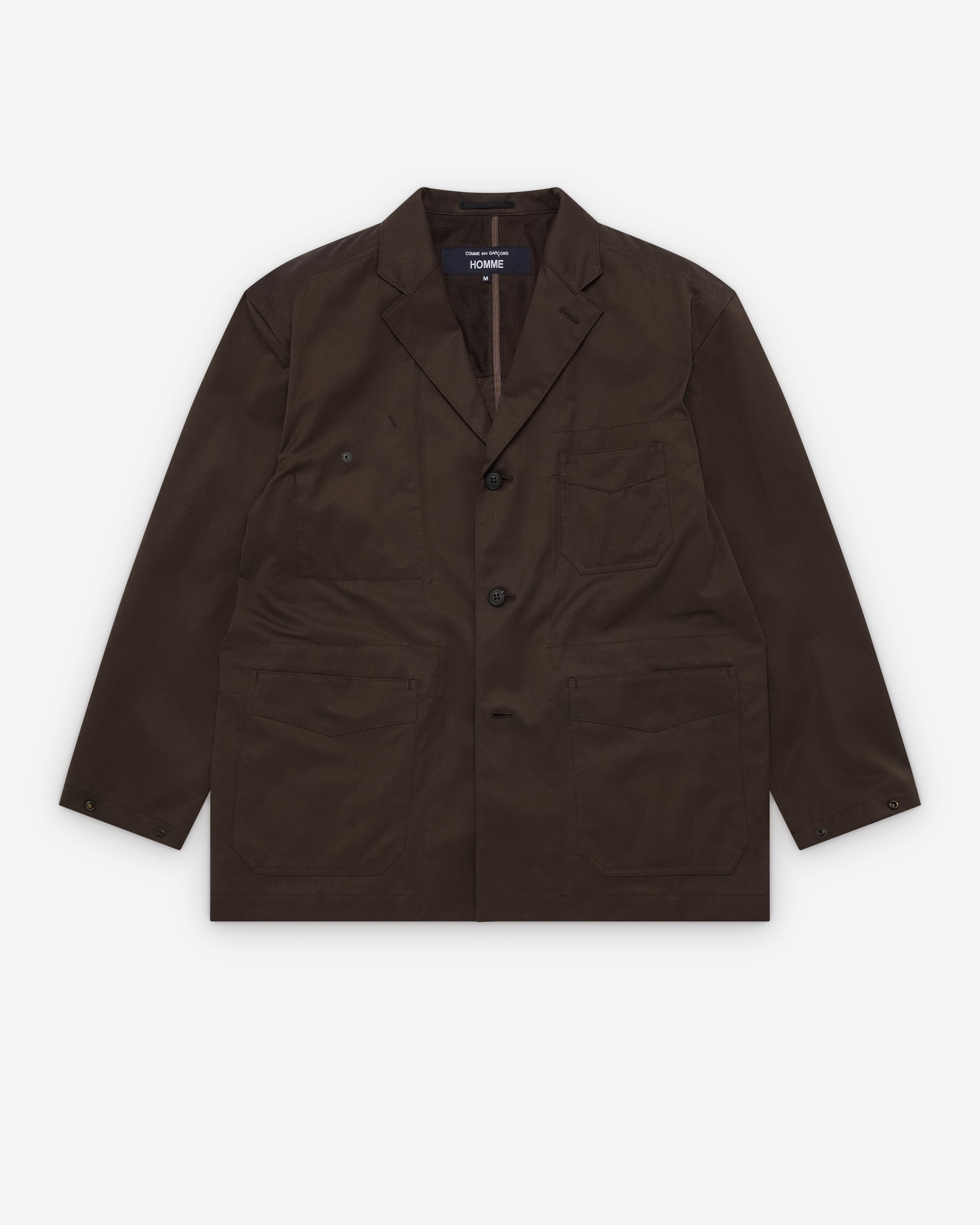 Open collarNotched lapelThree button closureChest pocketTwo front pocketsInternal zip close pocketsPress stud adjustable cuffs