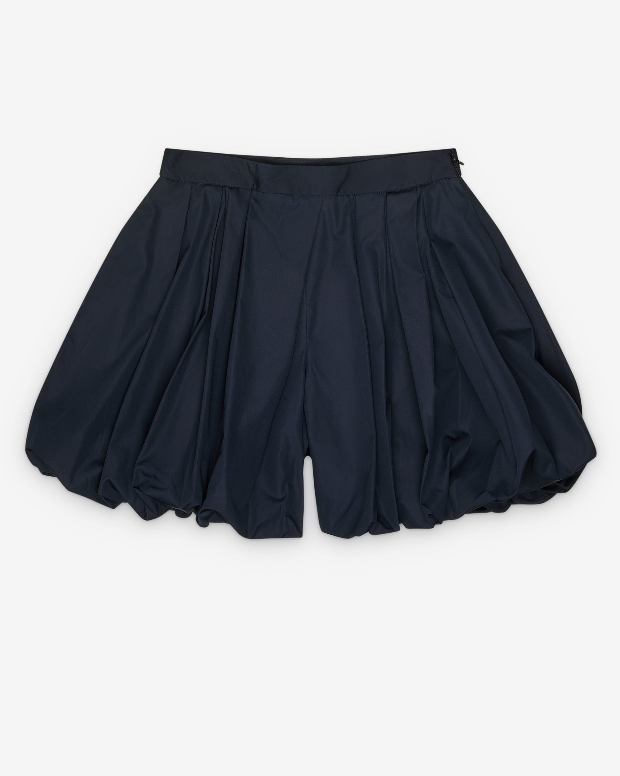 Voluminous legsSide zip closureMini length100% CottonMade in Italy