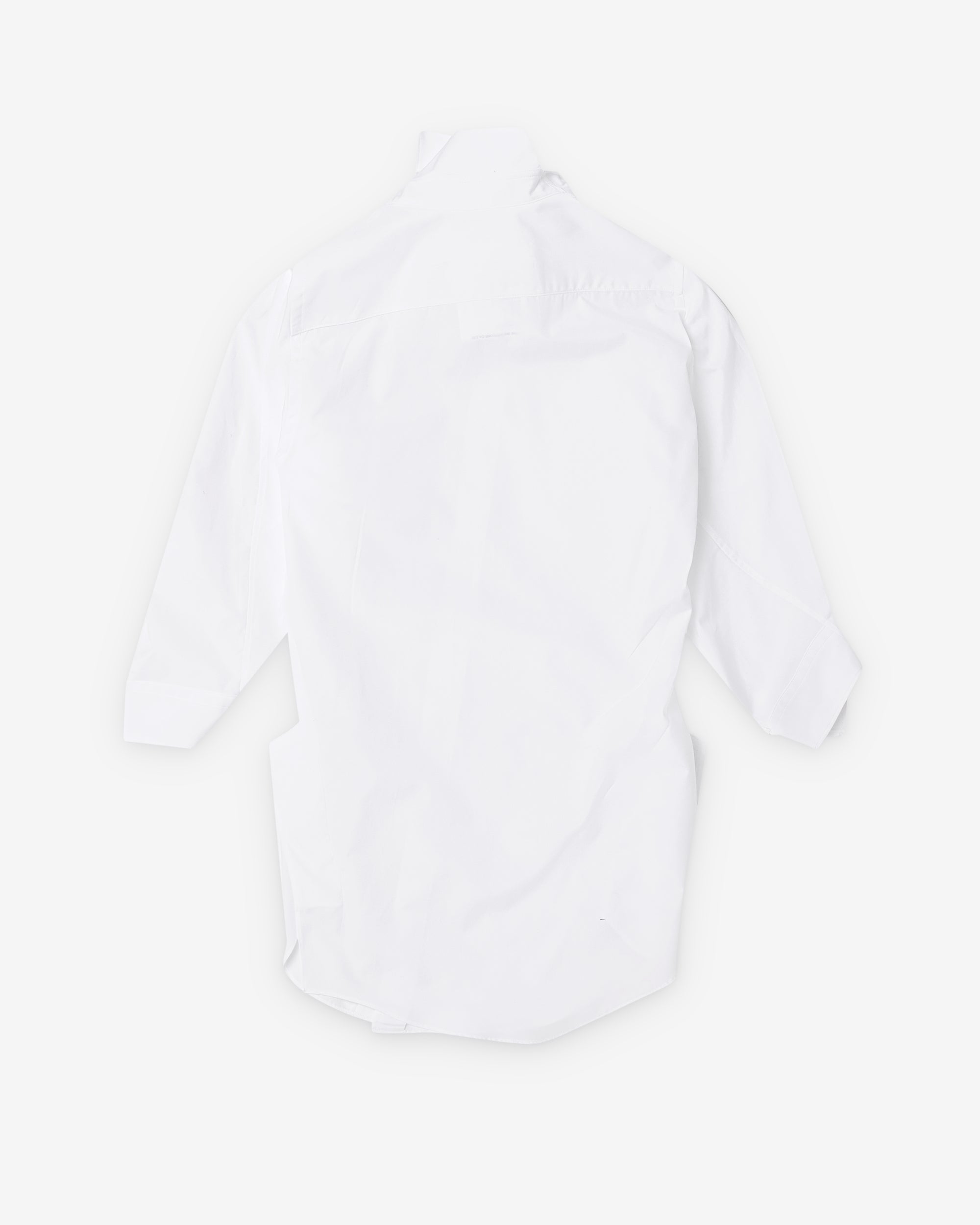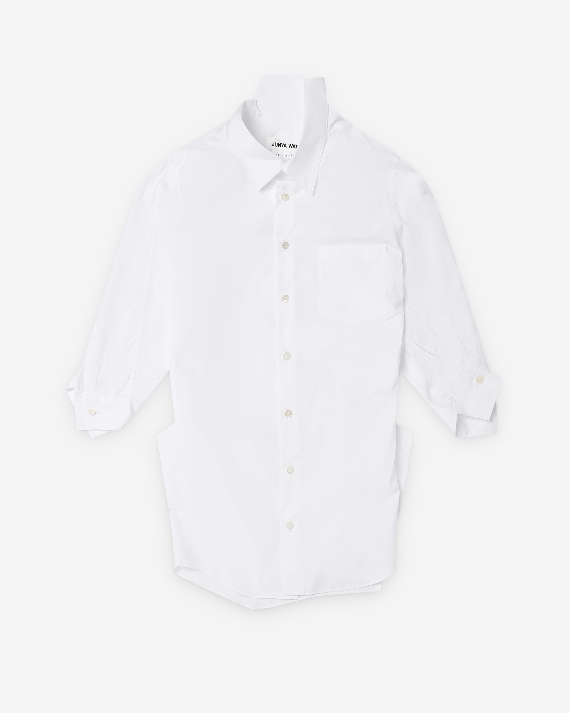 Cotton broadcloth fabric3/4 length sleevesAsymmetric button closureSingle chest pocketClassic point collar