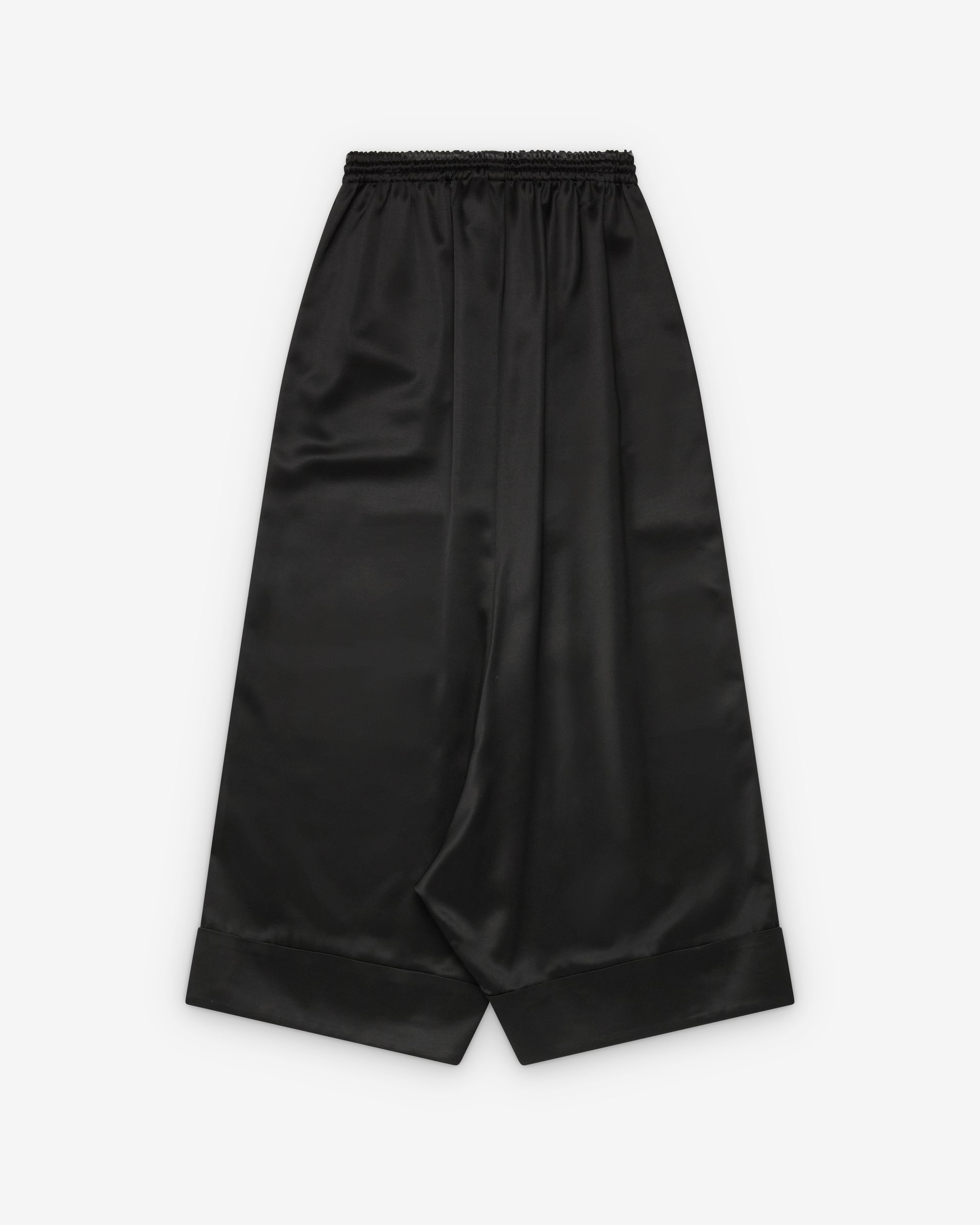 Elasticated waist bandSide seam pocketsWide legExaggerated crotchPre cuffed ankles